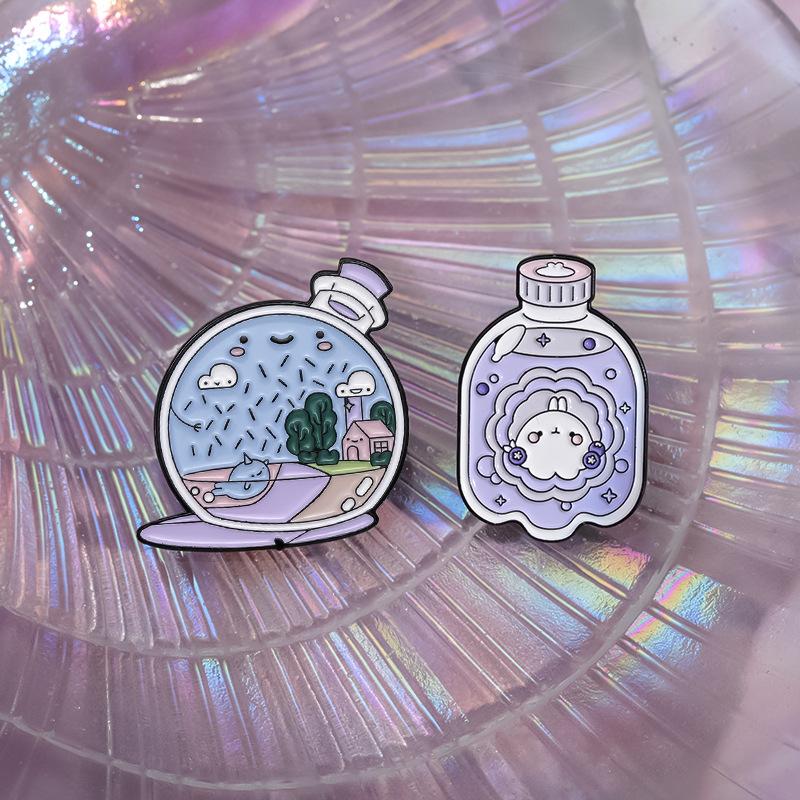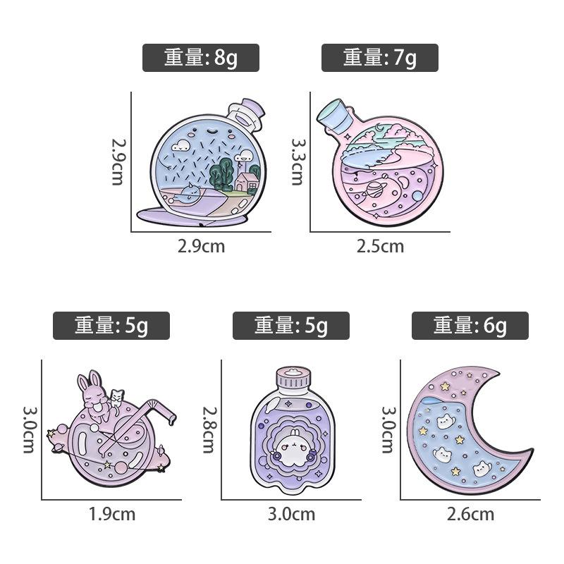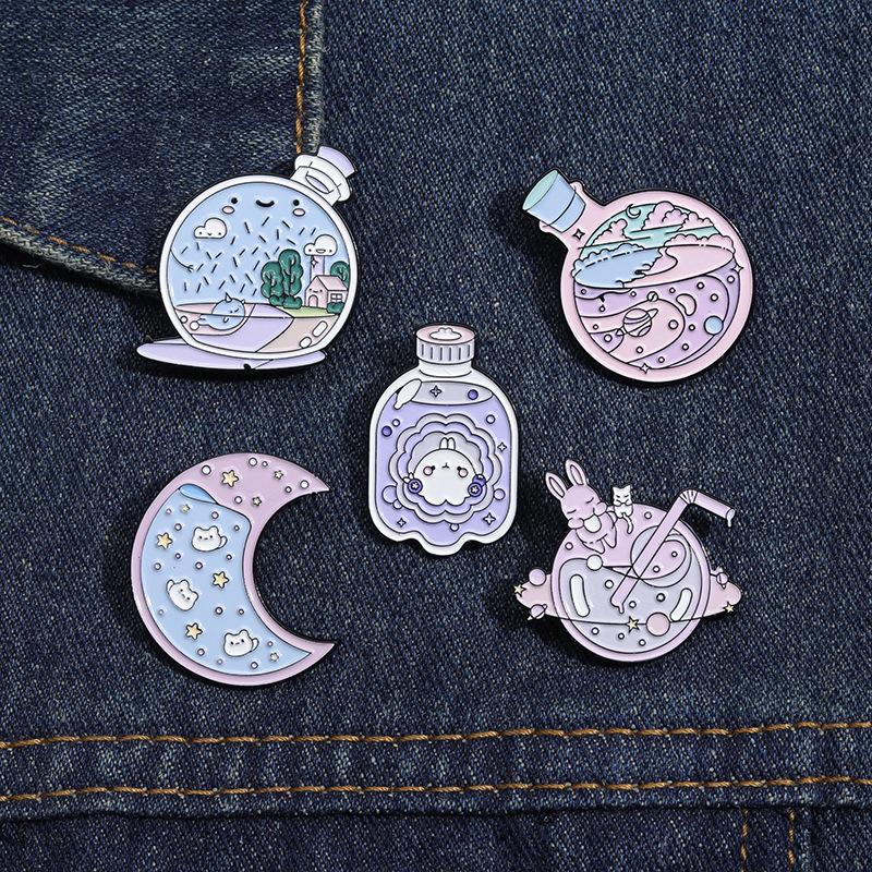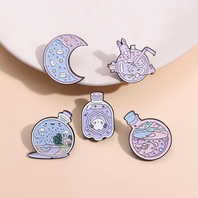 Insignia de dibujos animados creativa nueva fantasía botella a la deriva serie Espacio Galaxia Cielo Estrellado broche de aleación Luna Rosa