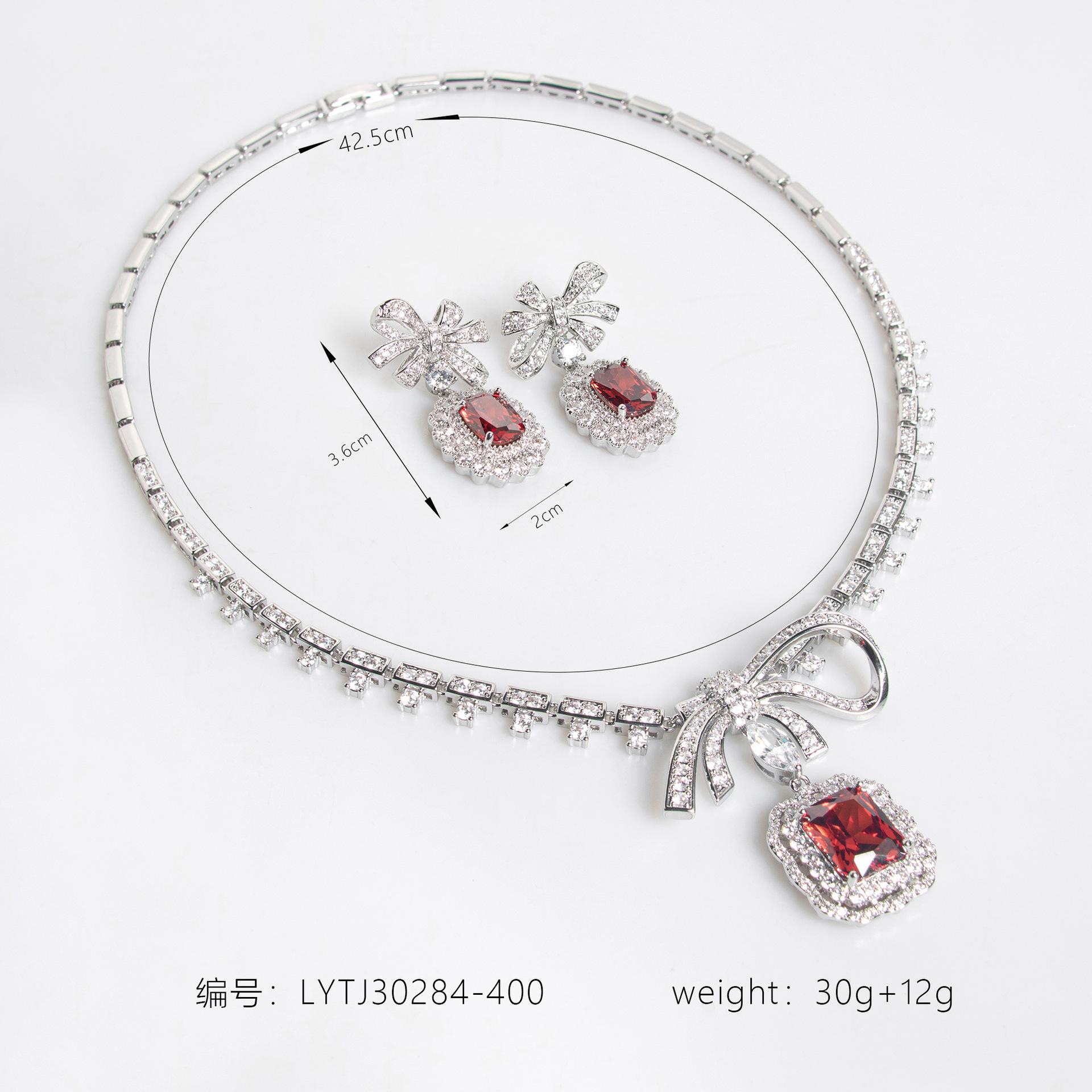 Nueva joyería nupcial transfronteriza coreana, colgante de lazo informal para mujer, pendientes de circonita, collar, vestido, joyería, traje