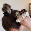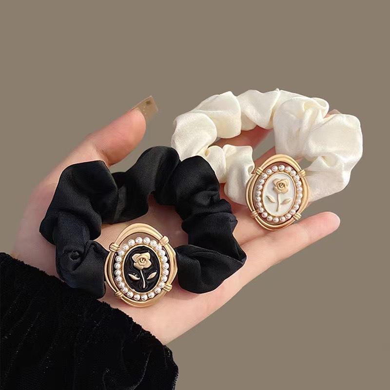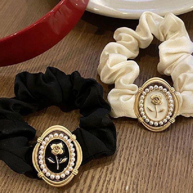 Nuevo anillo para el cabello estilo francés con forma de rosa para el intestino delgado, bola de pelo elástica alta para mujer, banda de goma, red, cuerda para el cabello roja, tocado