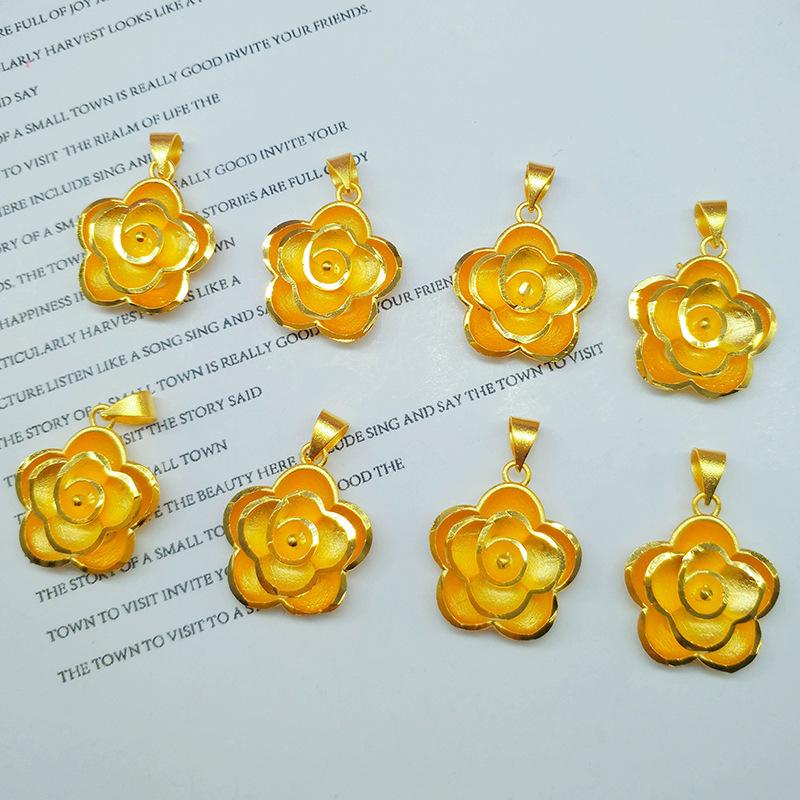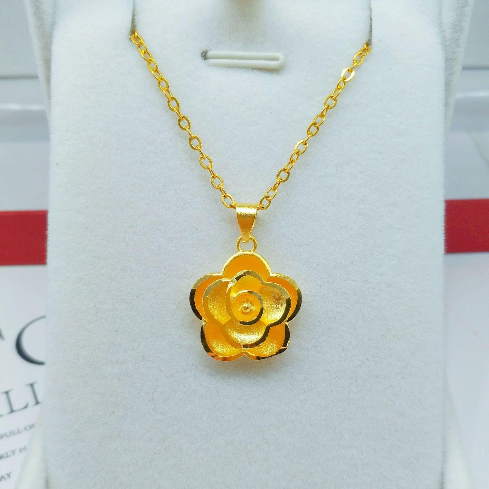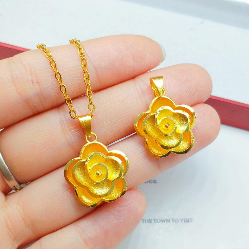Colgante de rosa de oro y arena de Vietnam, collar de flores chapado en oro y latón, regalo de San Valentín, joyería al por mayor