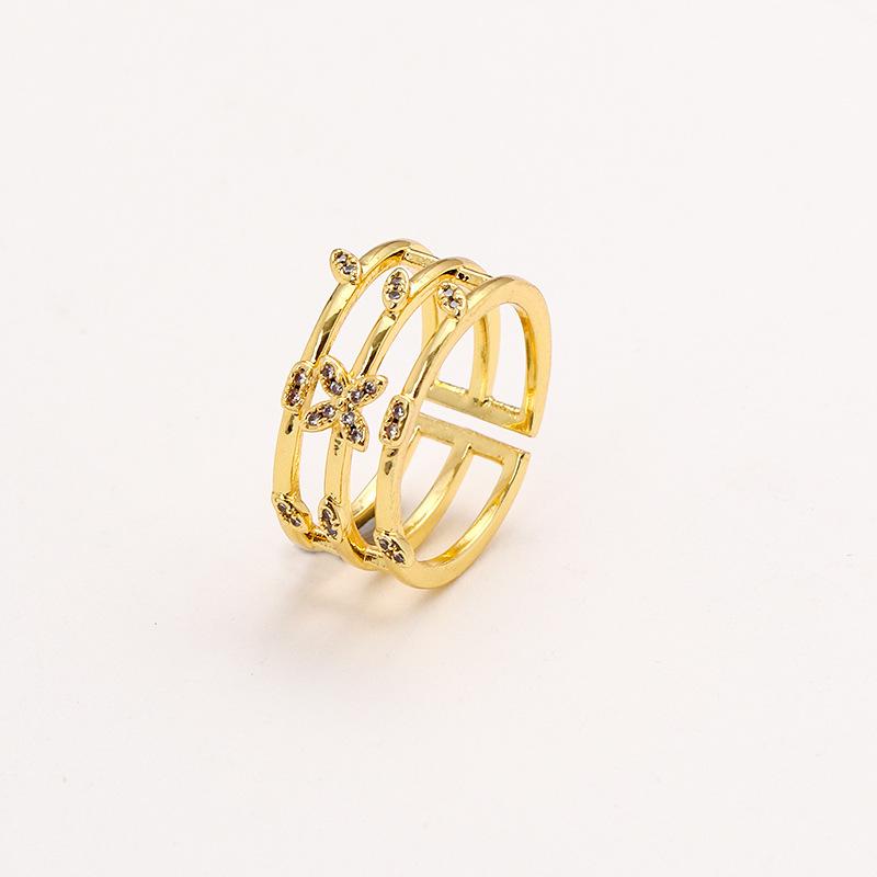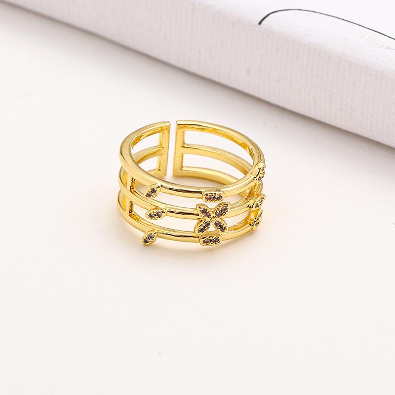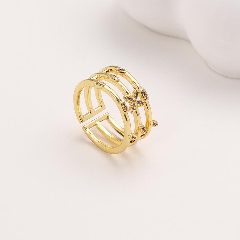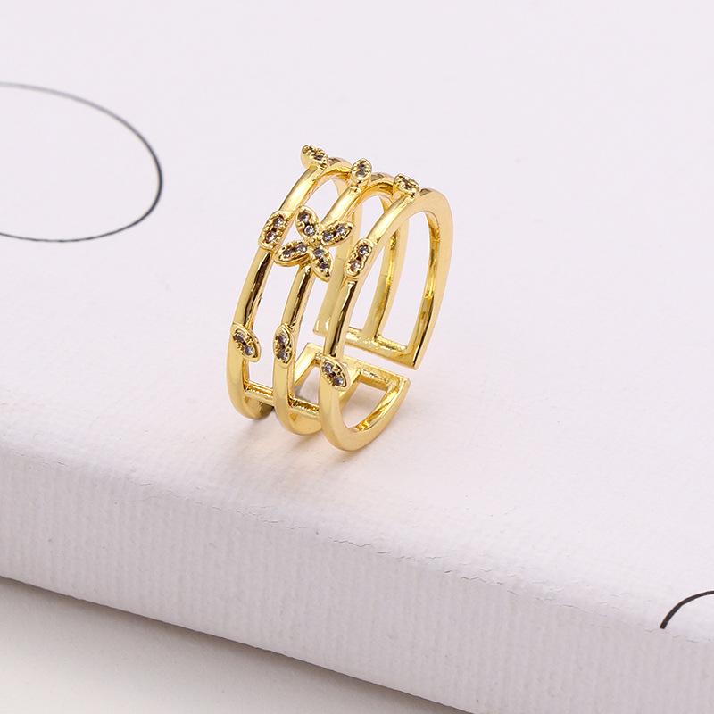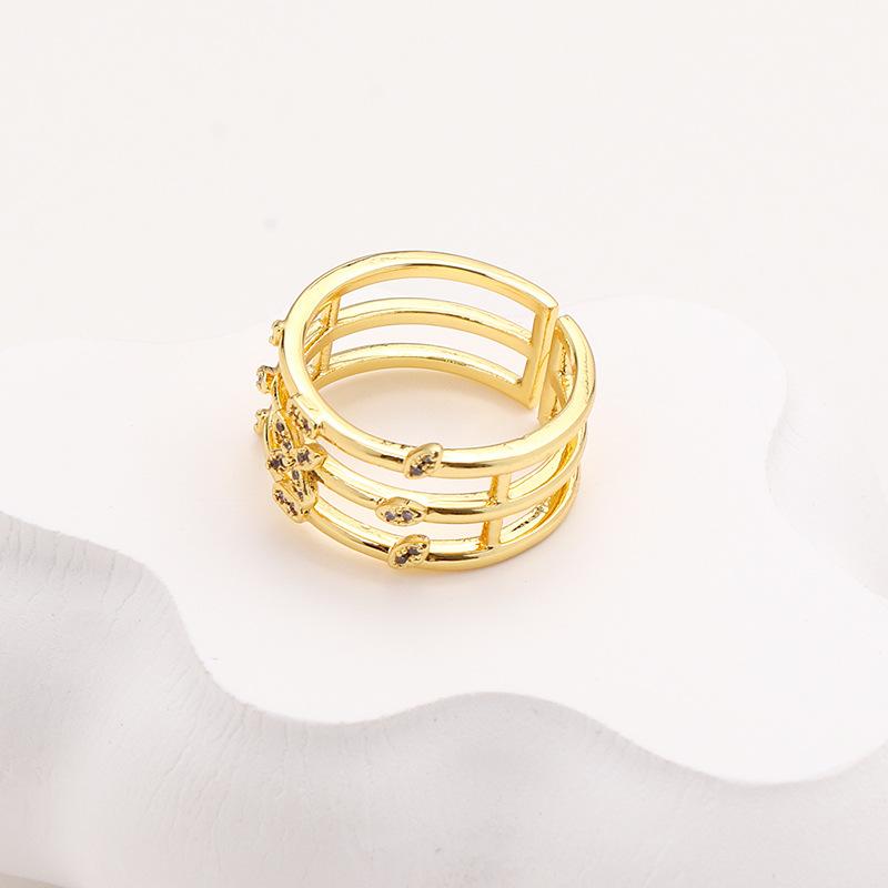 Moda Europea y Americana Simple Creativo Tres Capas Micro-incrustado Anillo Abierto Cobre con Baño de Oro para Retención de Color Anillo Distintivo Exagerado para Mujer
