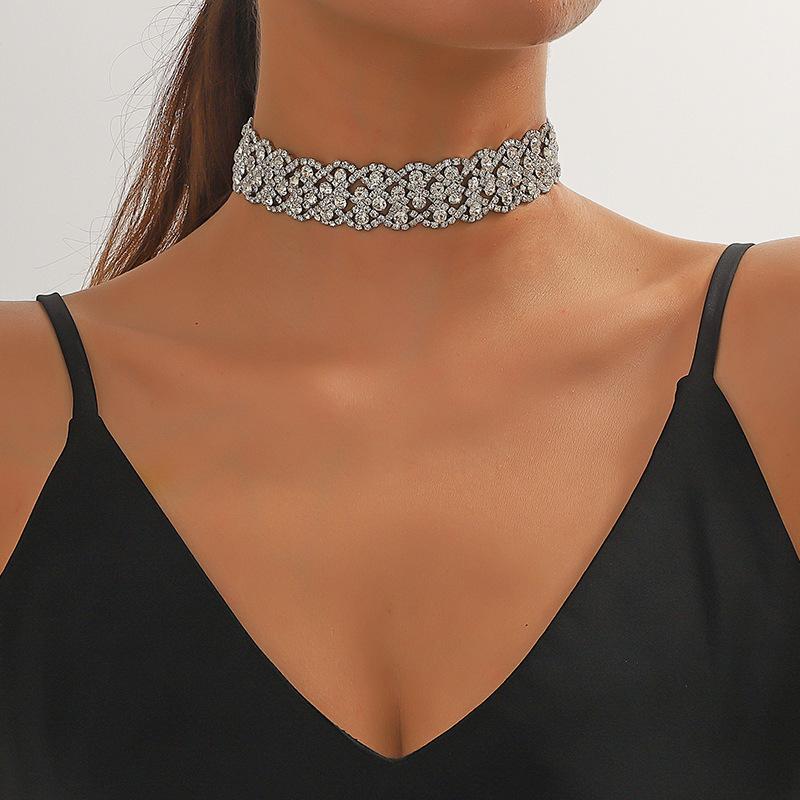 Fuente transfronteriza Vestido de noche de moda europea y americana con incrustaciones de diamantes Colgante gargantilla de pedrería versátil Cadena de cuello