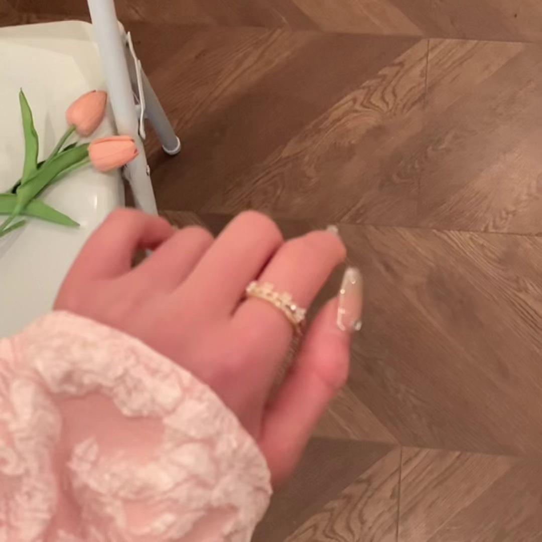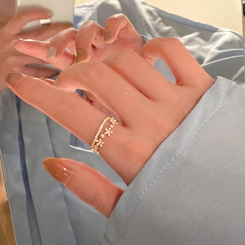 Anillo de Dedo Índice Abierto de Doble Capa Estilo Coreano para Mujer Estilo Ins Floral Lujo Accesible Diseño Nicho Moda de Alta Gama Modelo Elegante