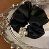 Diadema de satén con diamantes de imitación y perlas coreanas de alta calidad para el intestino grueso, accesorio para el cabello con lazo de alta elasticidad, cuerda para el cabello enrollada en la parte posterior.