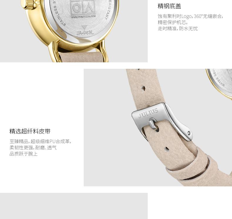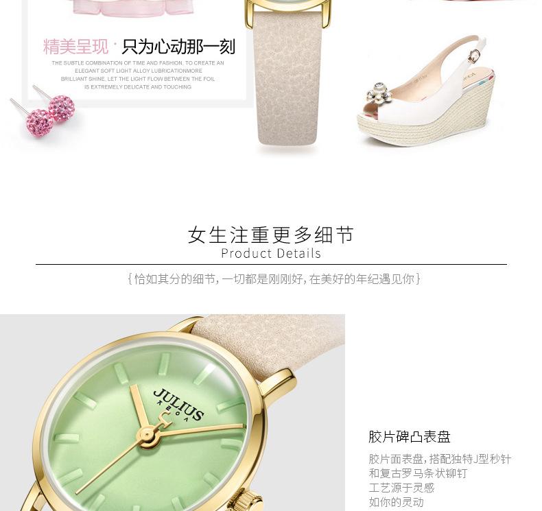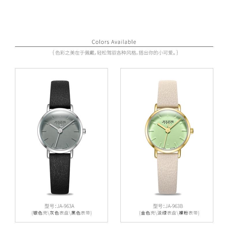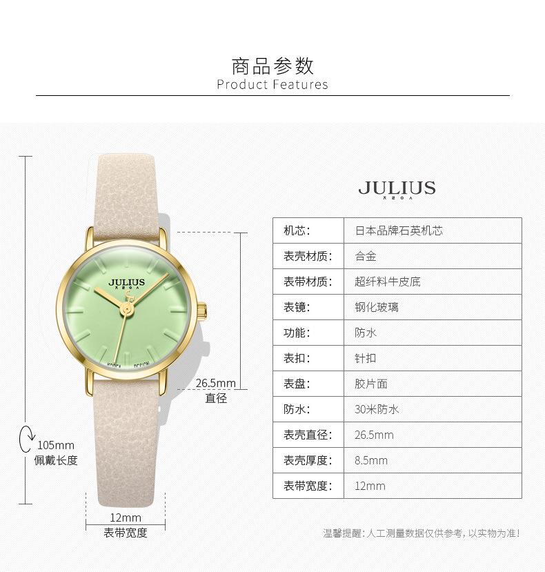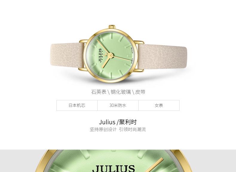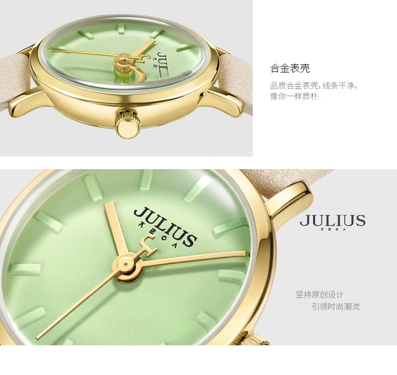 El significado de la marca JULIUS es alegre, único, amoroso, ideal, inusual y brillante. Es un reloj único que te enamorará a primera vista (Just You Will Love, un reloj único y especial). JULIUS toma este nombre y cuenta con siete series principales: Serie Clásica, Serie Emocionante, Serie Brazalete, Serie Exploración, Serie Pareja, Serie Hombre y Serie Edición Limitada.