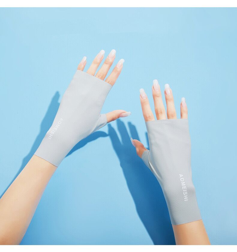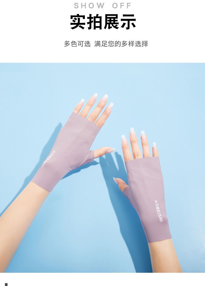 Guantes de verano para mujer, de seda fina, anti-UV, de medio dedo, para montar a caballo y deportes al aire libre.
