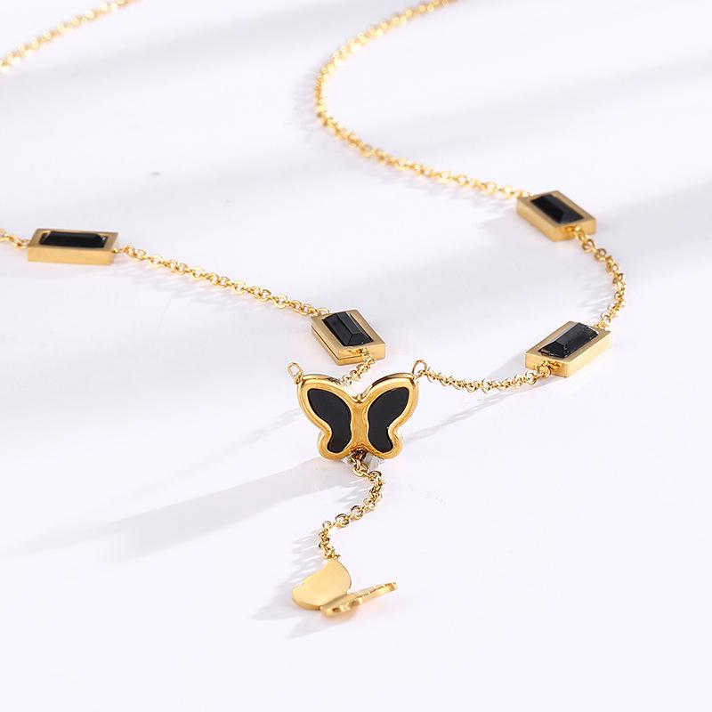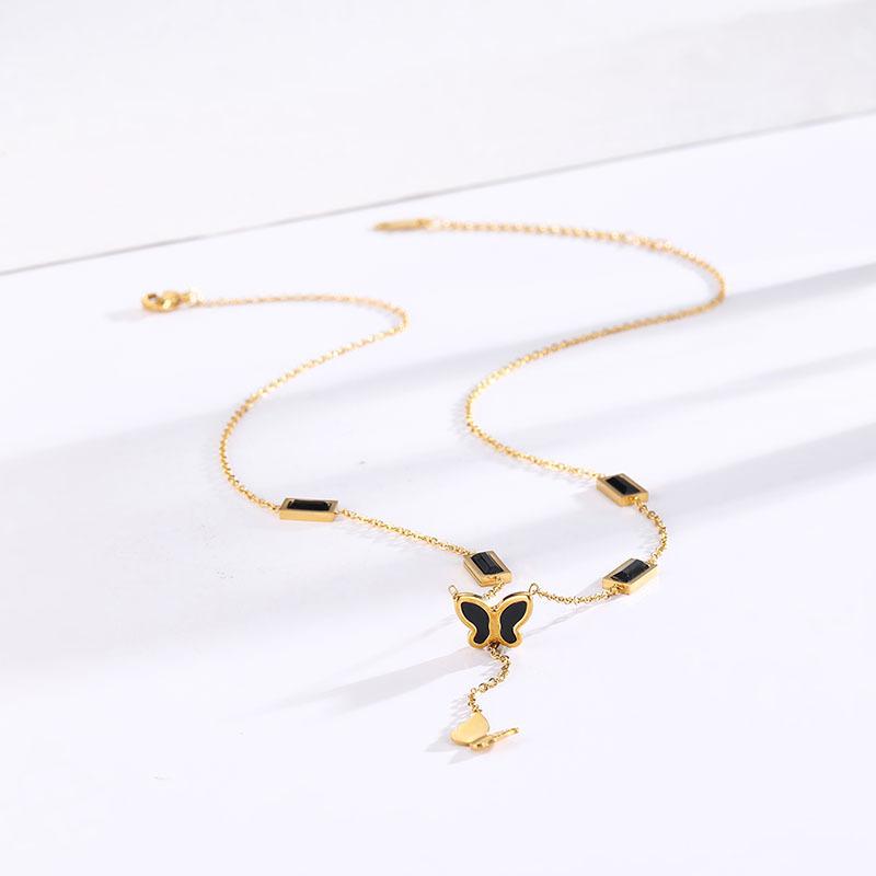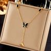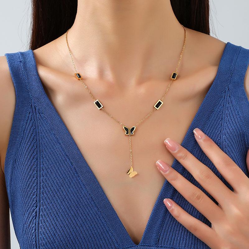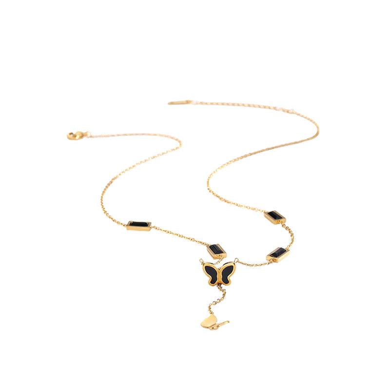 Collar Simple de Acero de Titanio con Borla de Mariposa de Zirconia Negra para Mujer, Nicho de Lujo Ligero, Versátil, Celebridad de Internet, Ins, Accesorios Más Vendidos
