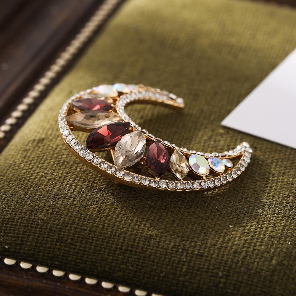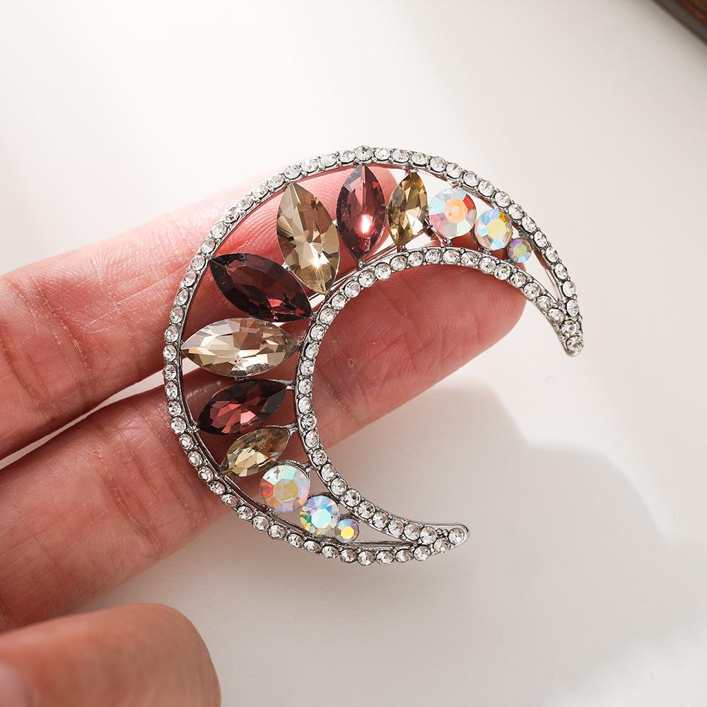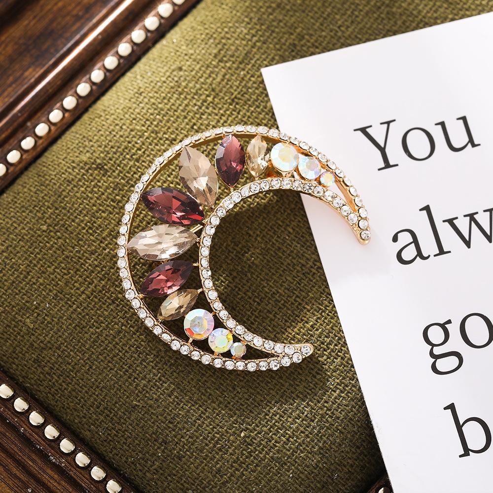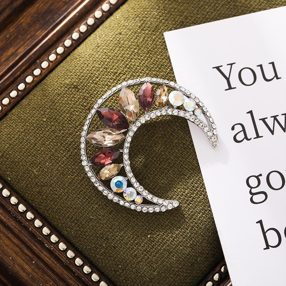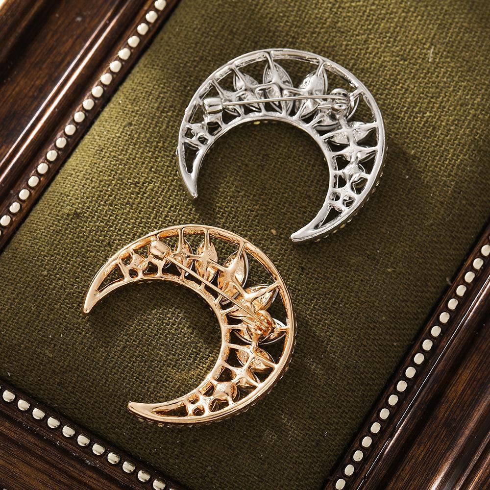 Nuevo Elegante Elegante Zircón Brillante para Mujer Corsage Sencillo Ropa Exterior Accesorios Ropa Exterior Pin Broche de Luna Transfronterizo