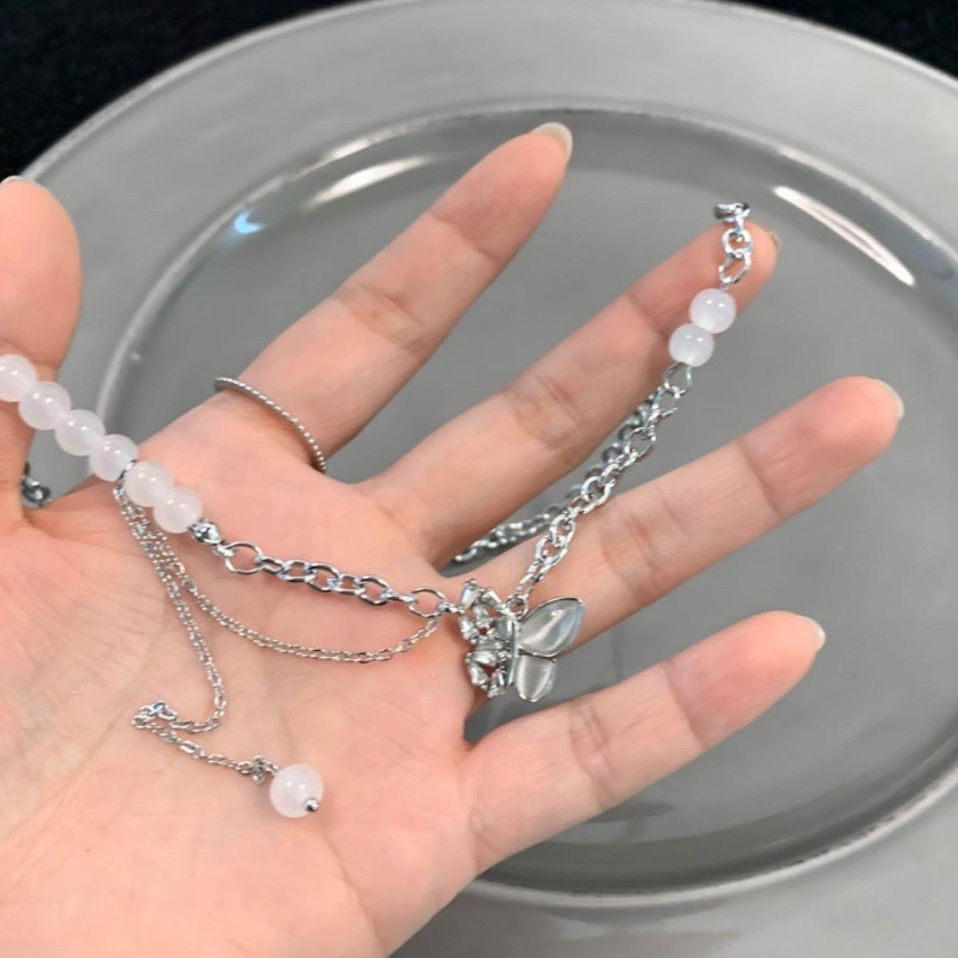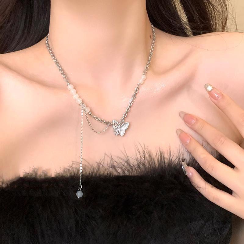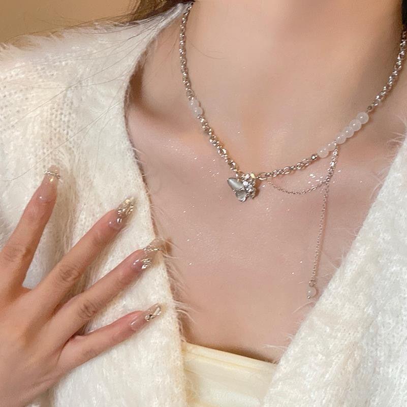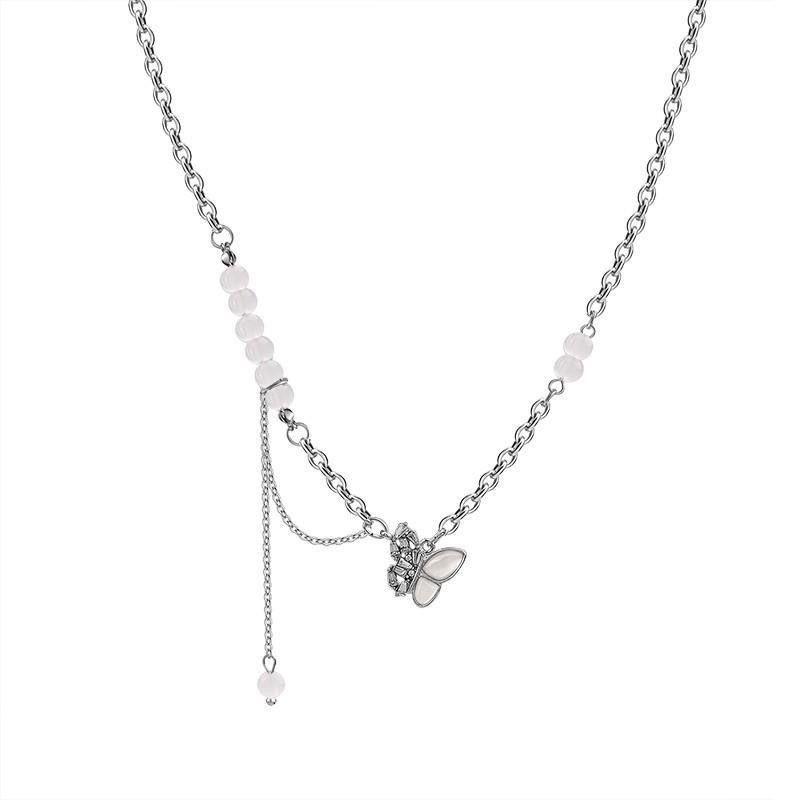 Collar de mariposa con borlas y costuras para mujer, elegante, ligero, lujoso, de alto nivel, con cadena de clavícula y mariposa de luz de luna.