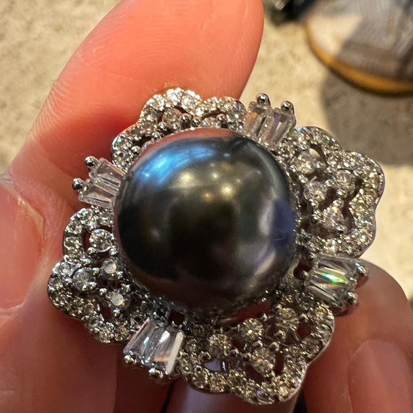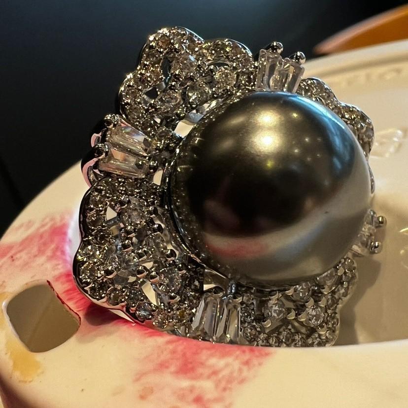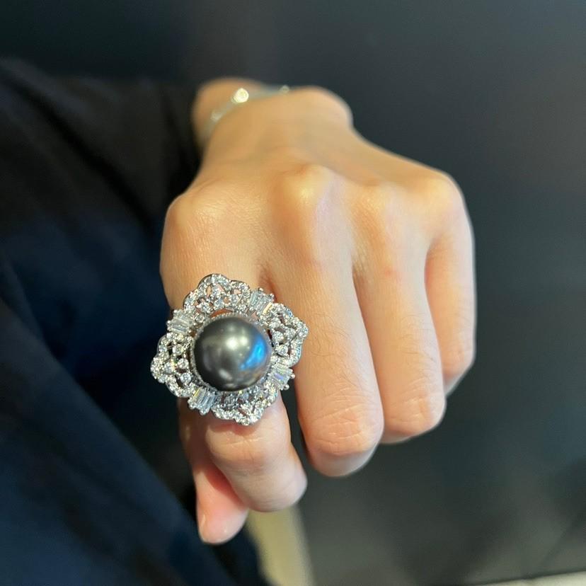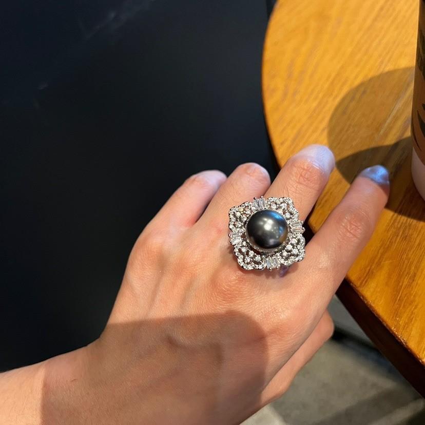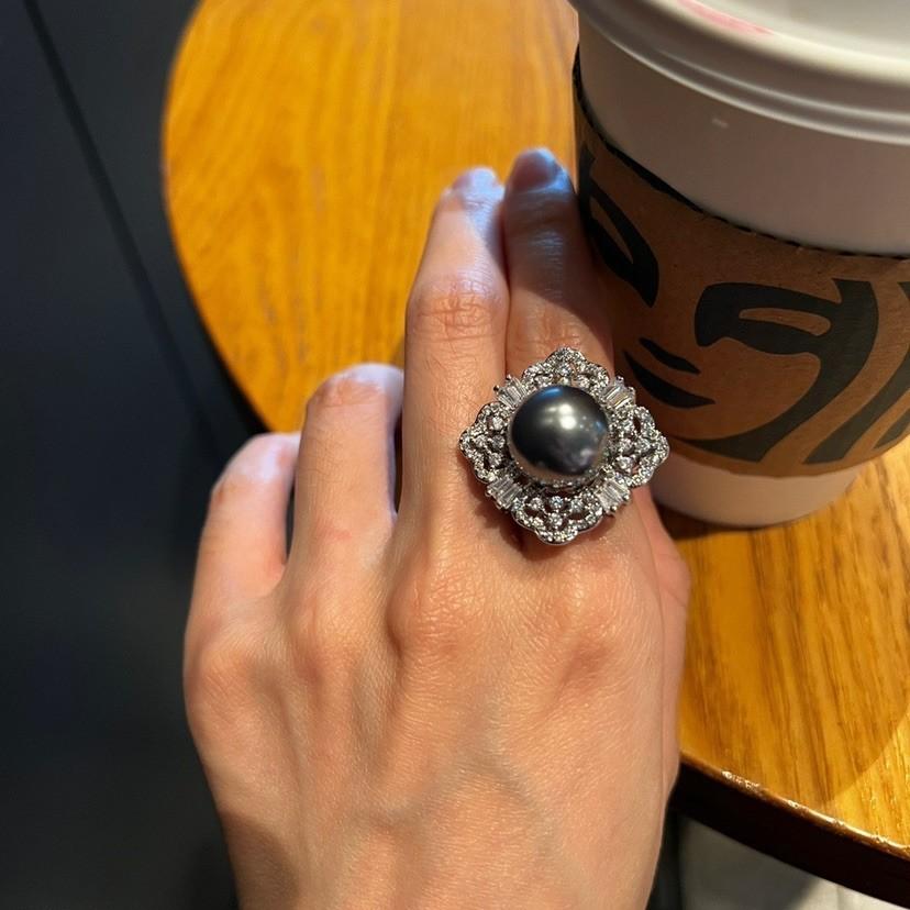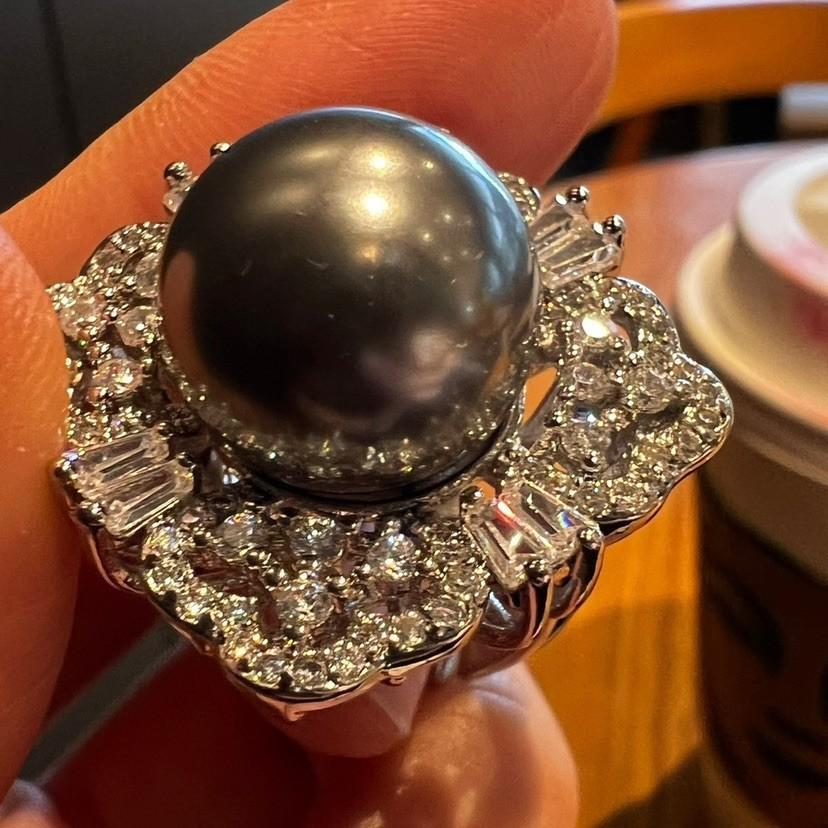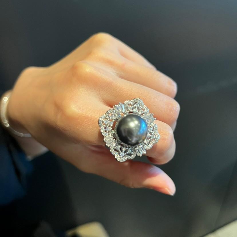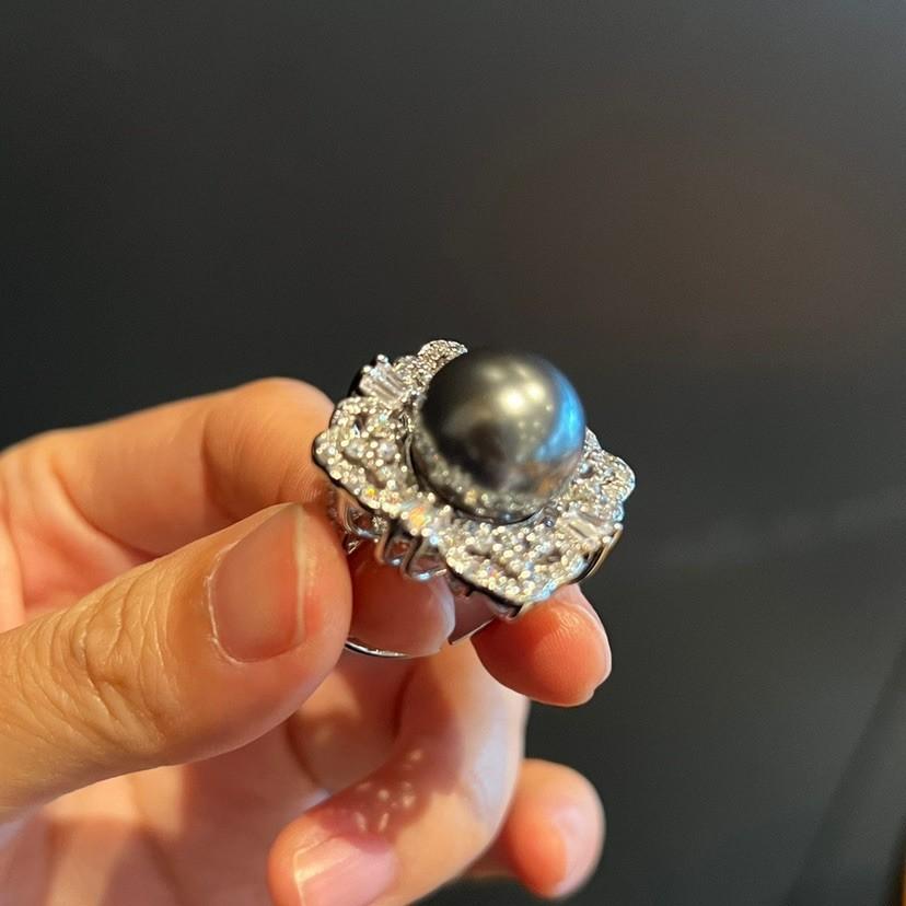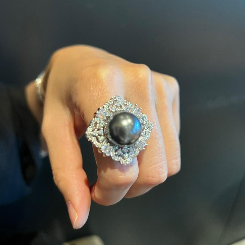 Anillo de Concha con Cuentas Diseño Nicho Lujo Diamante Completo Moda Anillo Versátil para Mujer