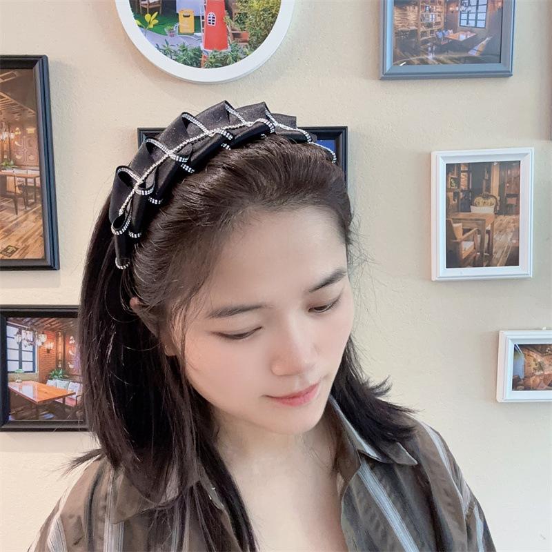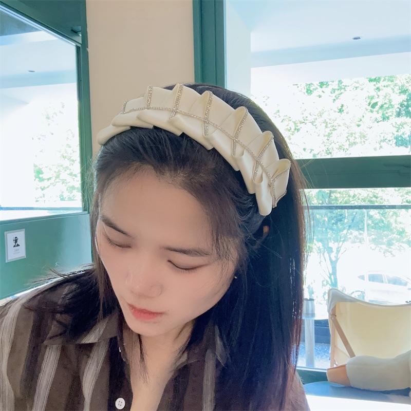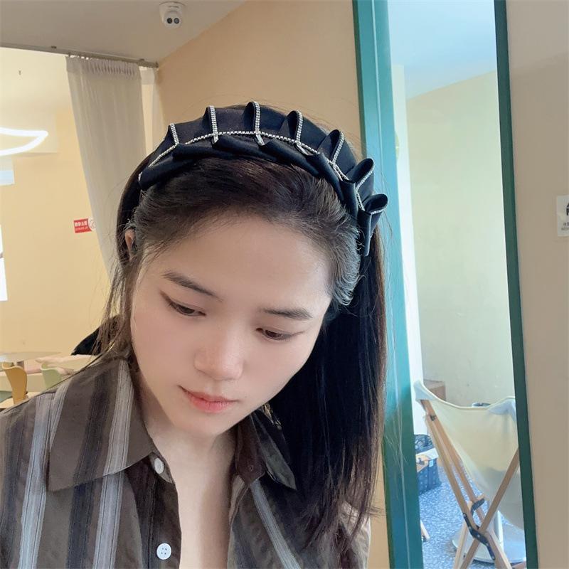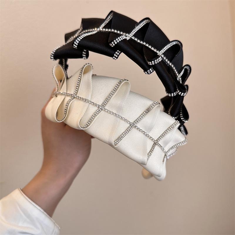 Diadema de diamantes de imitación plisada estilo coreano, nueva, estilo francés, irregular, nicho ligero, lujo, horquilla de celebridad de Internet, accesorios para el cabello de gran sentido