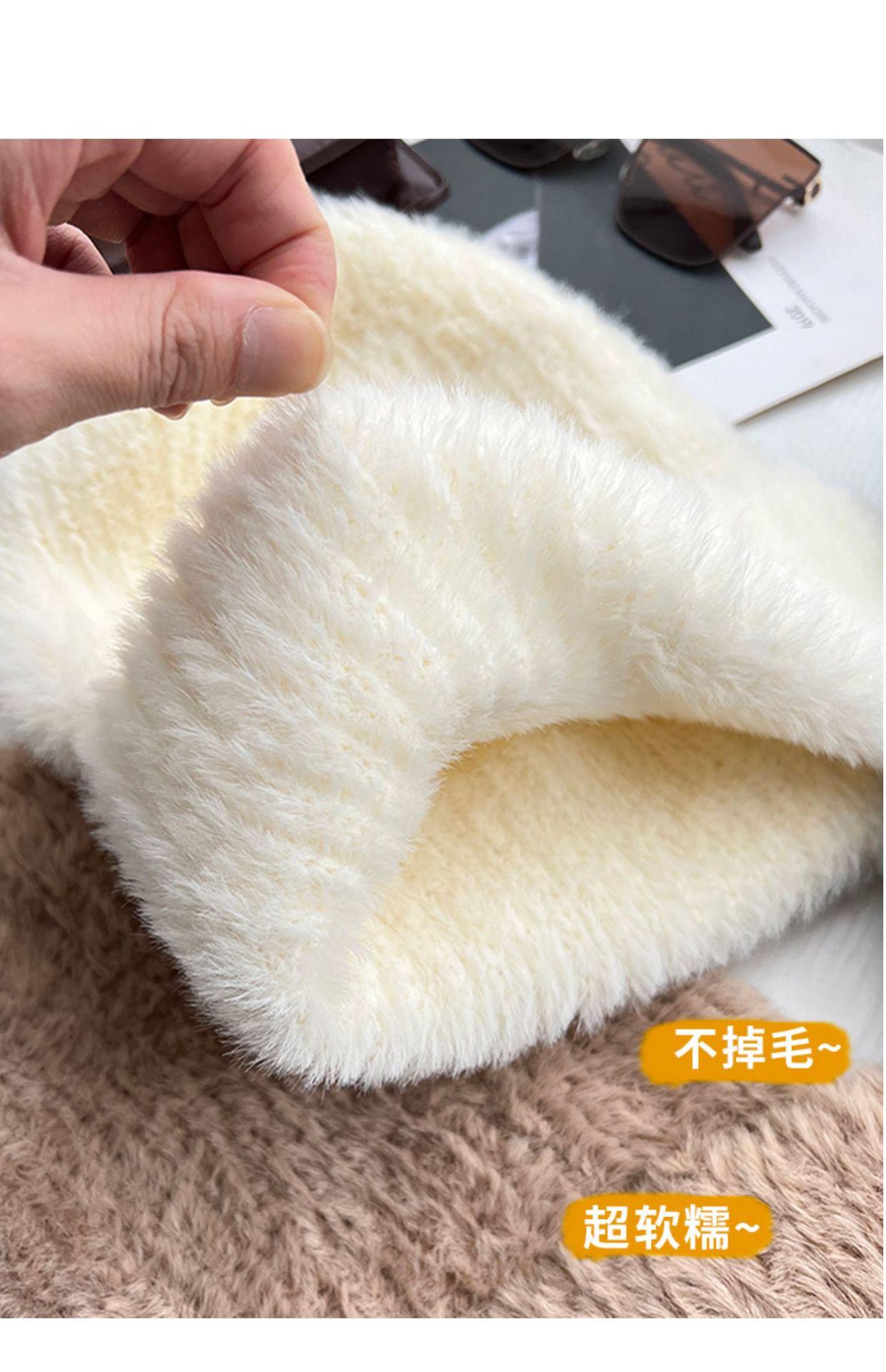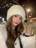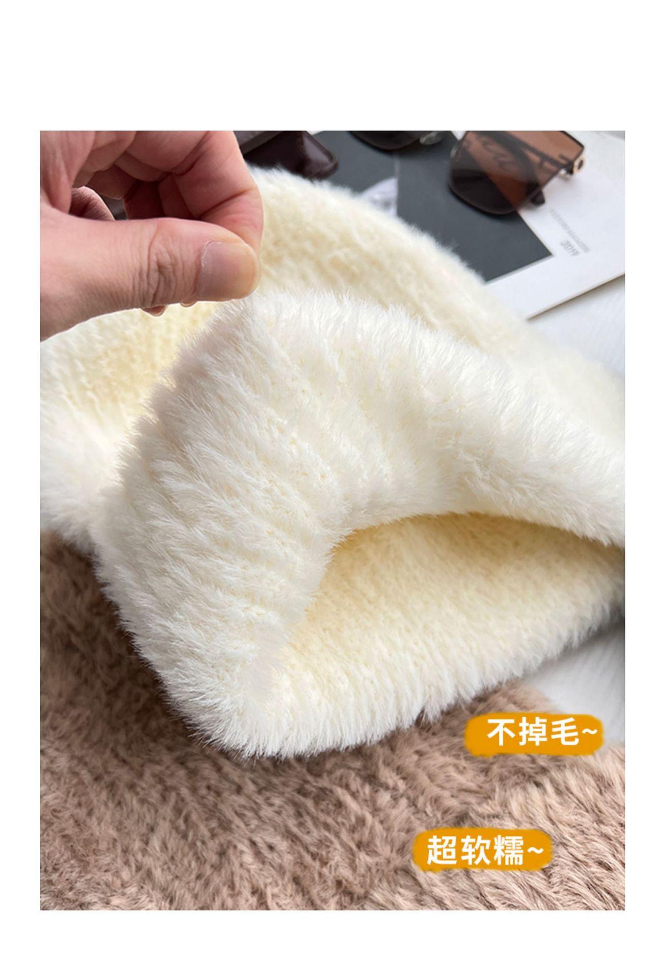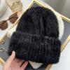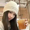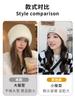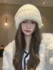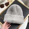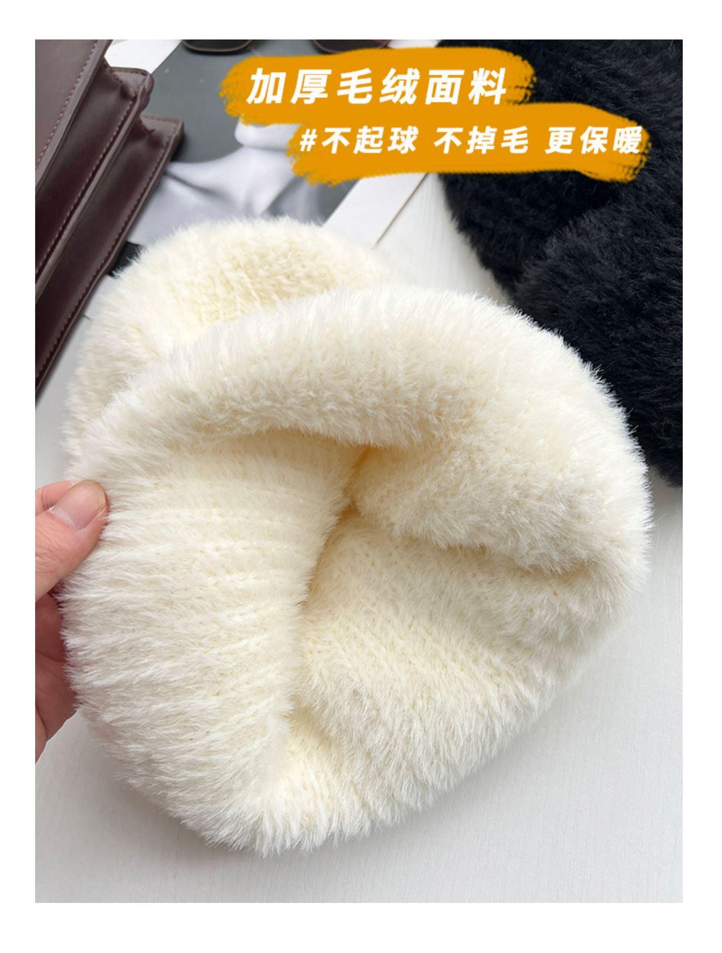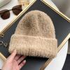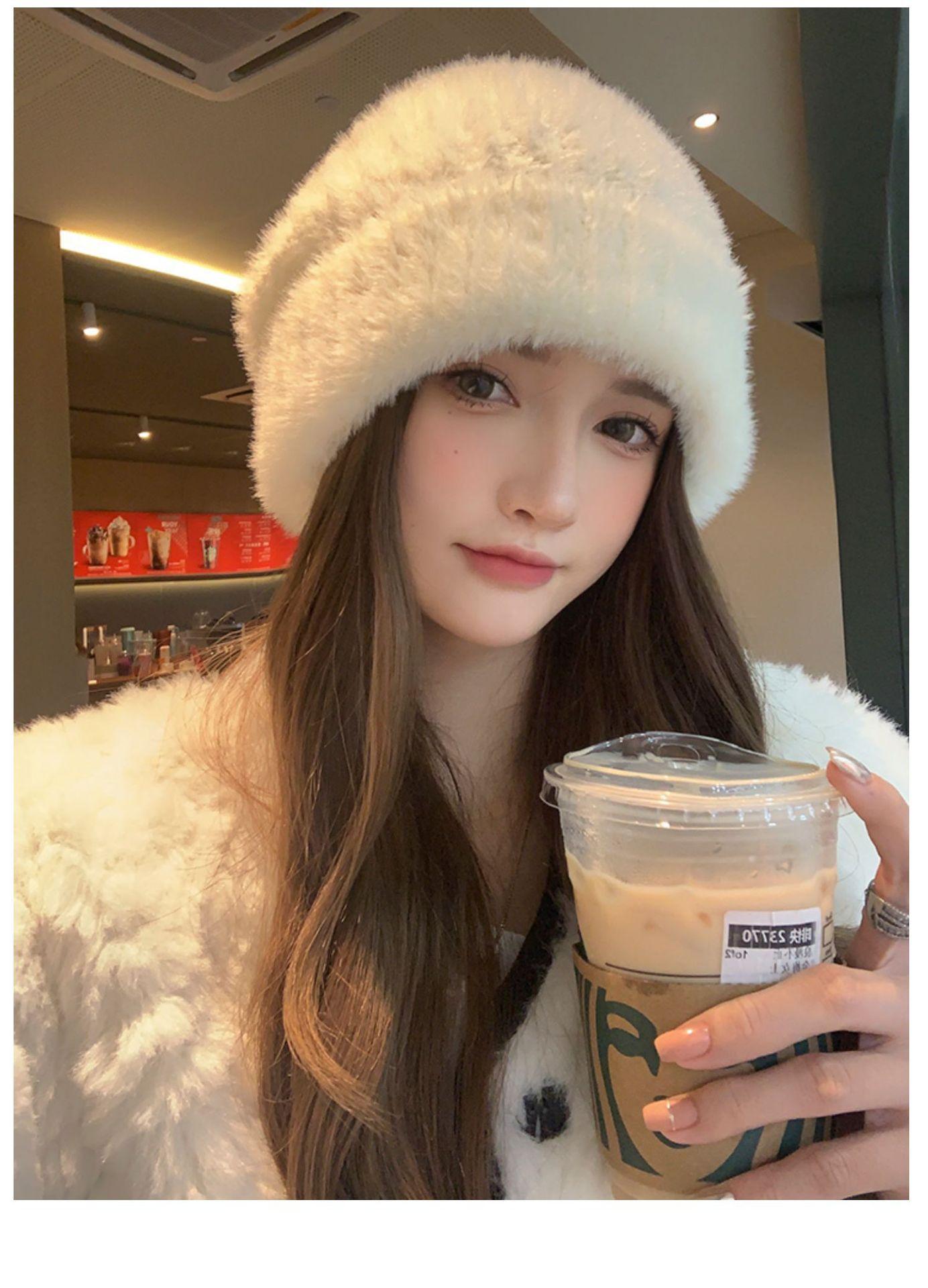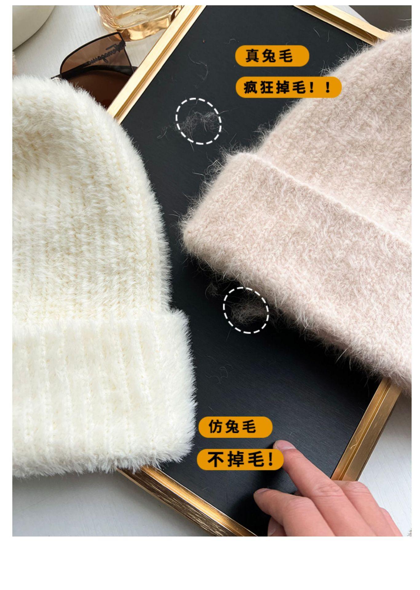 Gorro de punto con pelo de conejo pequeño y cara grande para mujer, nuevo gorro de lana japonés cálido y holgado para invierno, con protección para las orejas y para la cabeza grande.