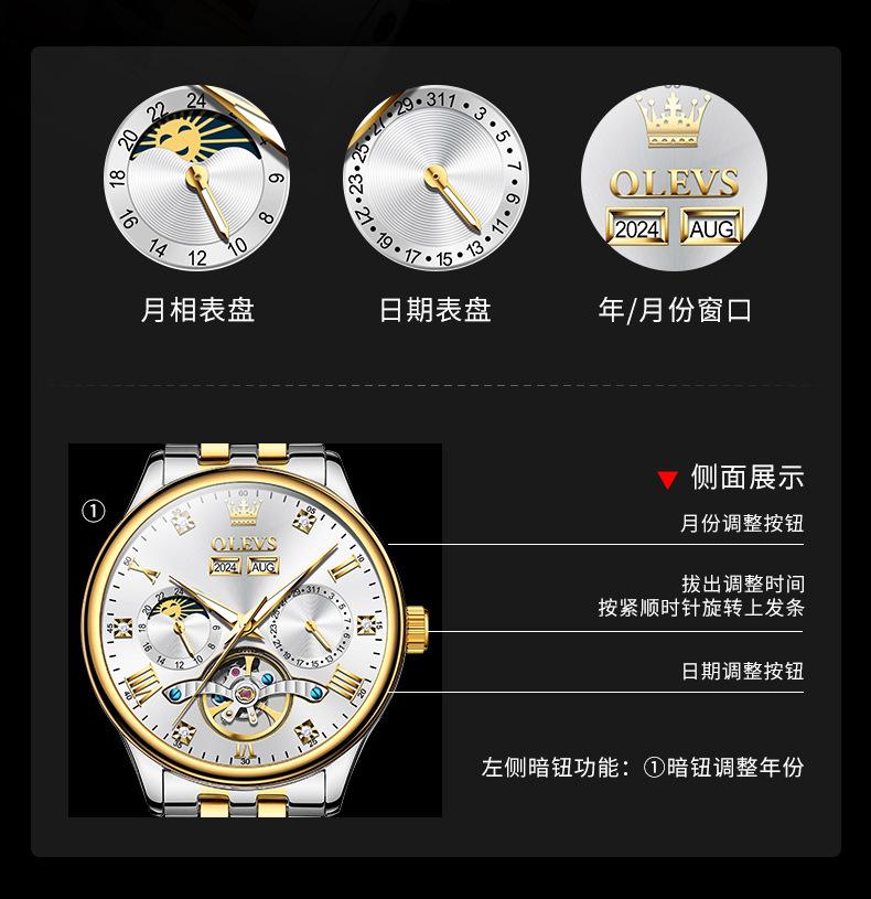 [Movimiento]: Movimiento mecánico completamente automático original, mejor calidad, cronometraje estable y preciso.