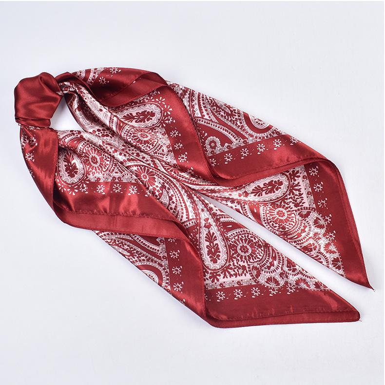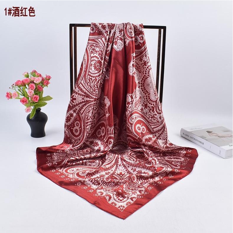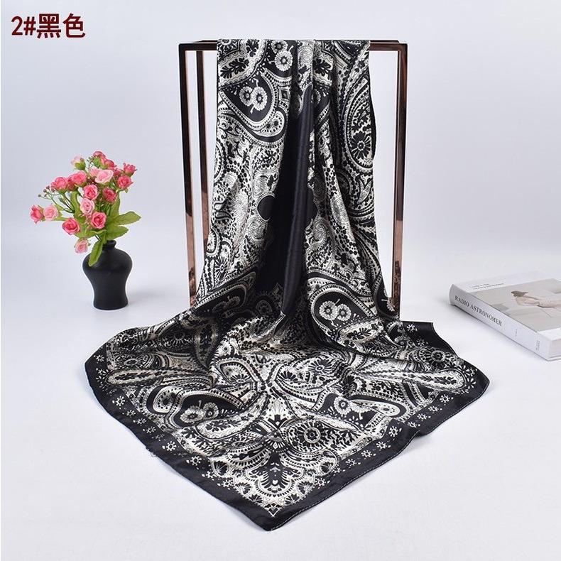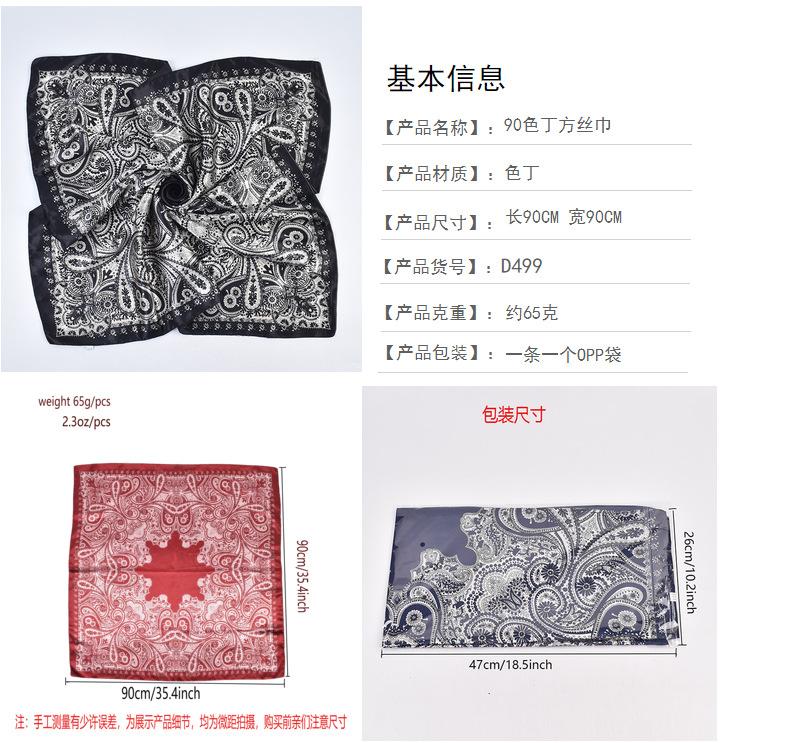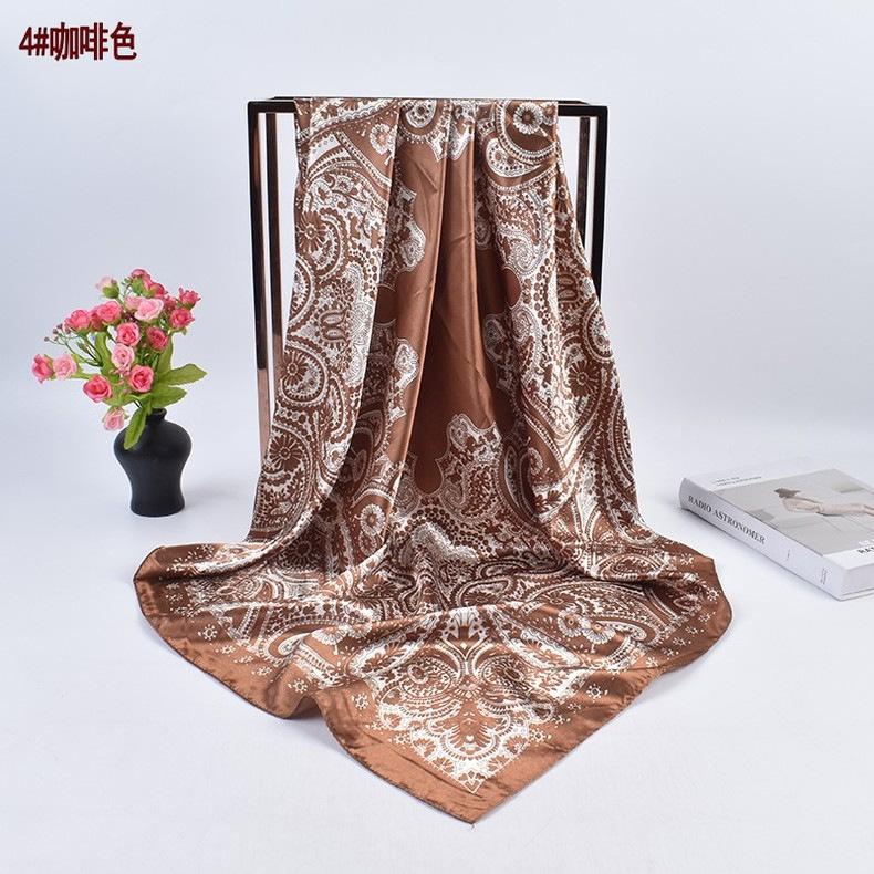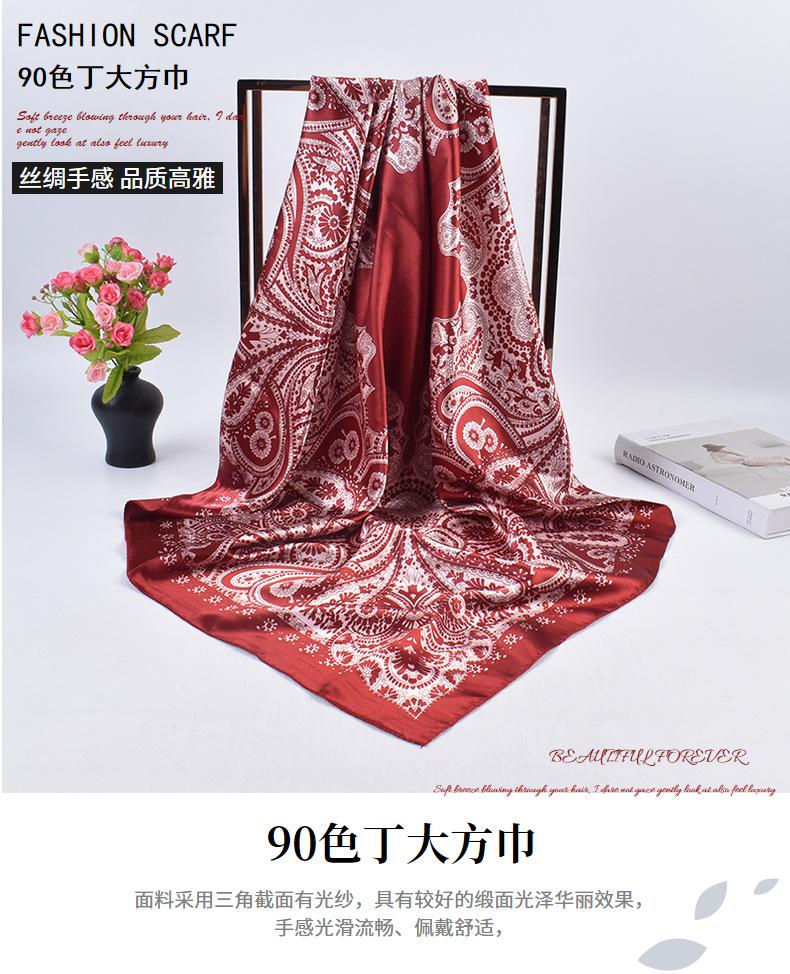 Nueva bufanda cuadrada grande de satén con estampado de flores de anacardo retro de moda de 90 cm para mujer, disponible al por mayor