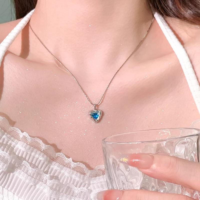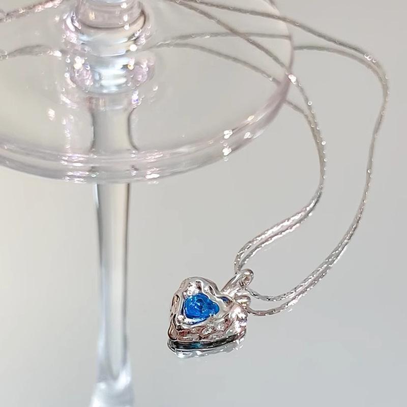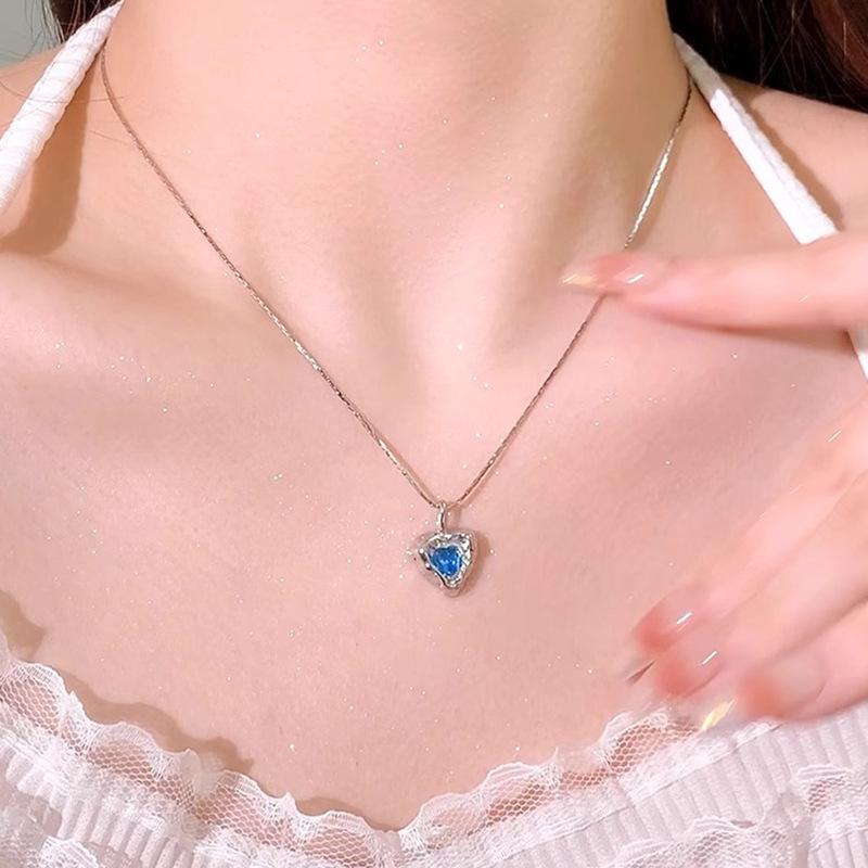 Collar con textura de amor azul para niñas, diseño de nicho que combina con todo, cadena de clavícula de alta calidad, accesorios de temperamento, nueva moda