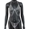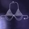 Nueva cadena corporal de diamantes de imitación sexy transfronteriza, cadena de pecho de bikini de pasarela de rejilla de discoteca europea y americana, cadena corporal femenina