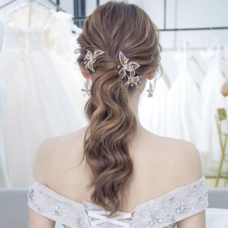 Conjunto de tocado de novia pequeño con forma de hada, hecho a mano, con hojas doradas y aire, accesorios para vestido de novia, horquilla