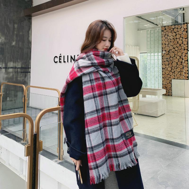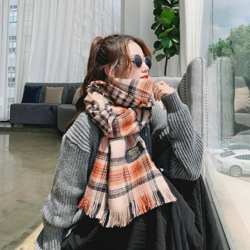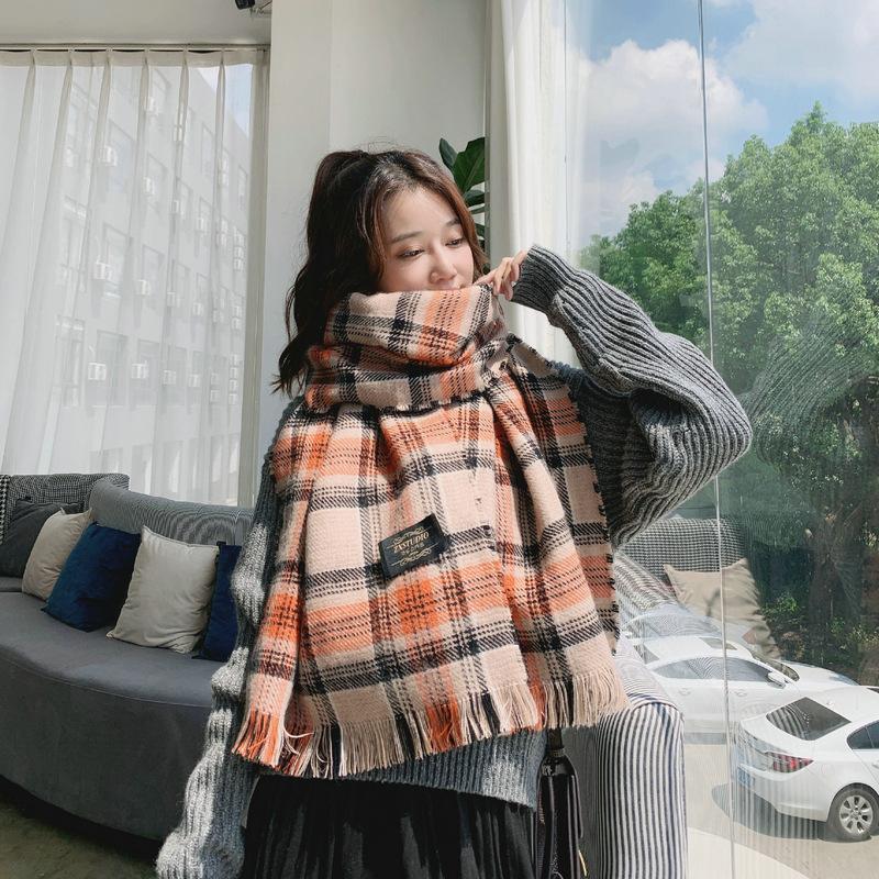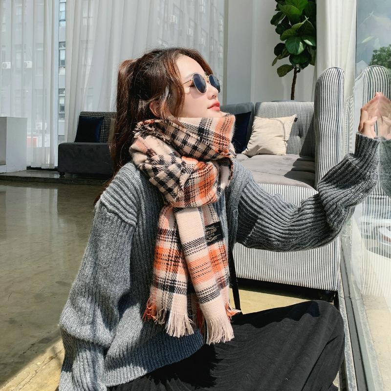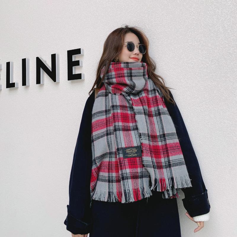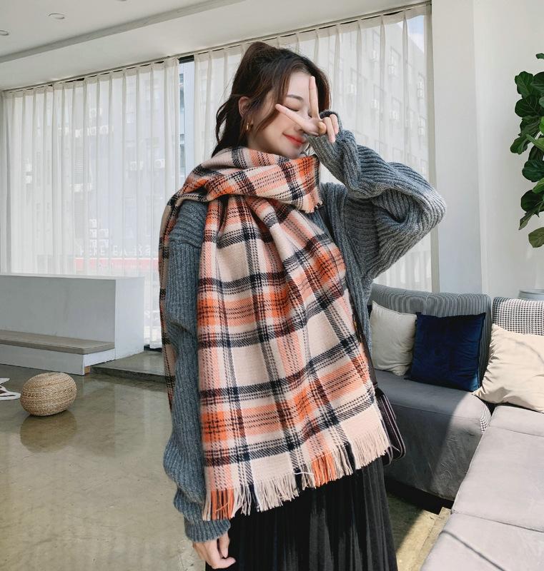 Bufanda de Cuadros Dongdaemun Coreana Estudiantes Otoño e Invierno Nueva Moda Joker Imitación Cachemira Chal con Borlas Venta al por Mayor