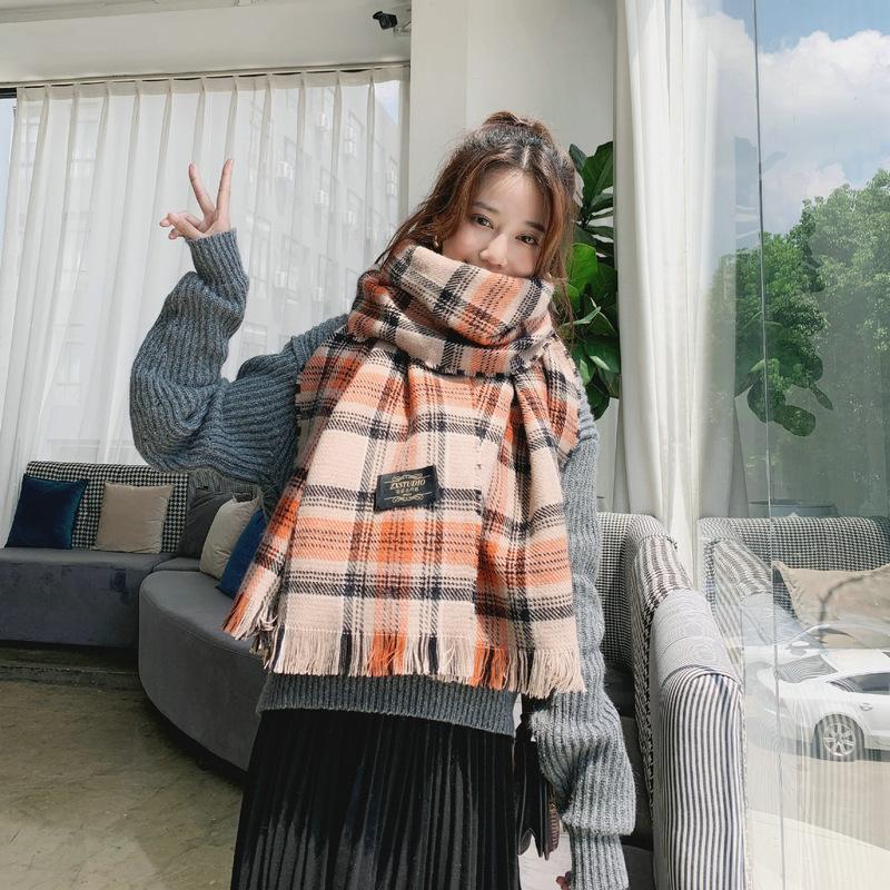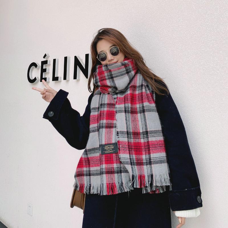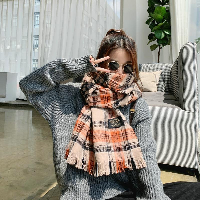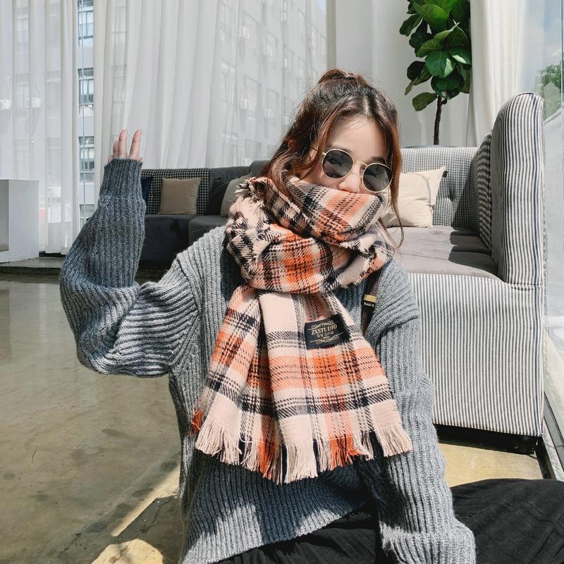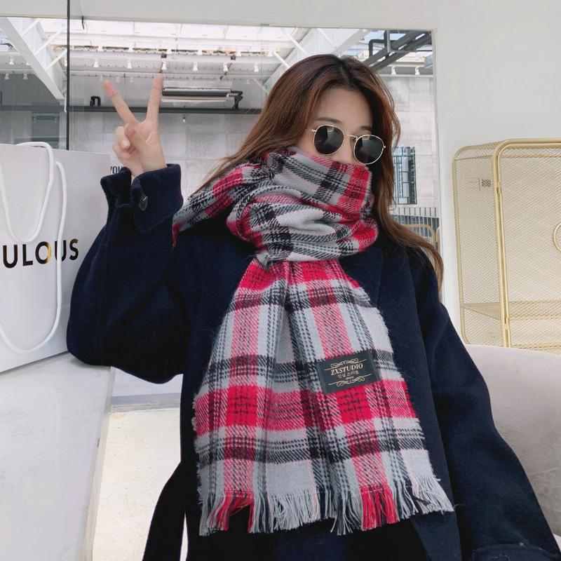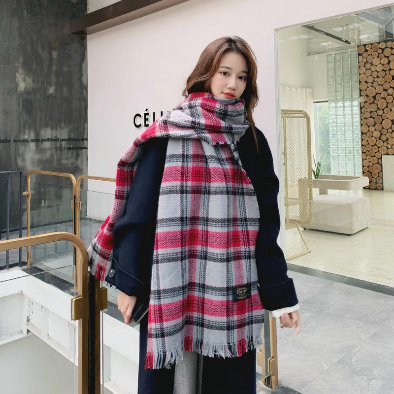 Bufanda de Cuadros Dongdaemun Coreana Estudiantes Otoño e Invierno Nueva Moda Joker Imitación Cachemira Chal con Borlas Venta al por Mayor