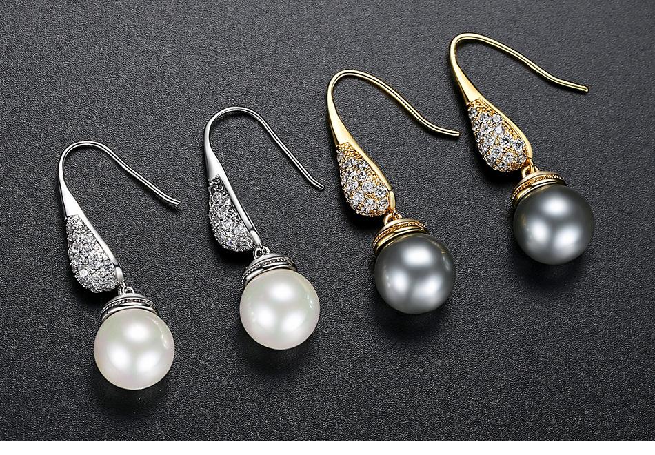 Pendientes de perlas con gancho para la oreja Jinse, conjunto de cobre, pendientes de gancho de circón, moda de estilo coreano, nuevos y elegantes pendientes de cuentas de concha.