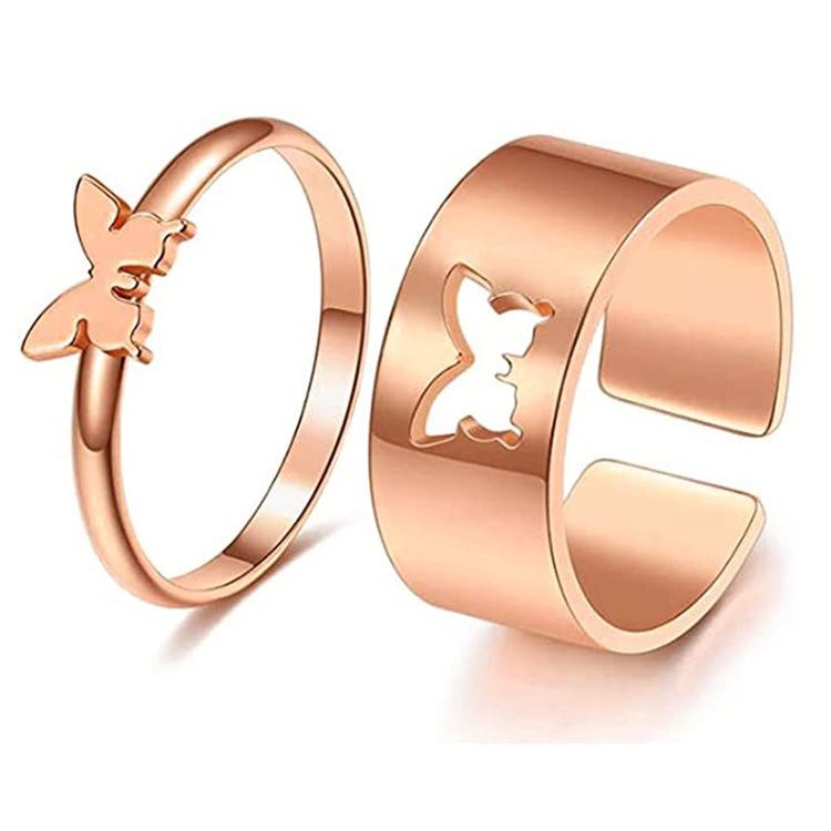 Anillos de Pareja Estilo Punk Transfronterizo de Comercio Exterior para Hombres y Mujeres, Anillos de Mariposa para el Dedo Índice Estilo Ins, Modelos de Pareja