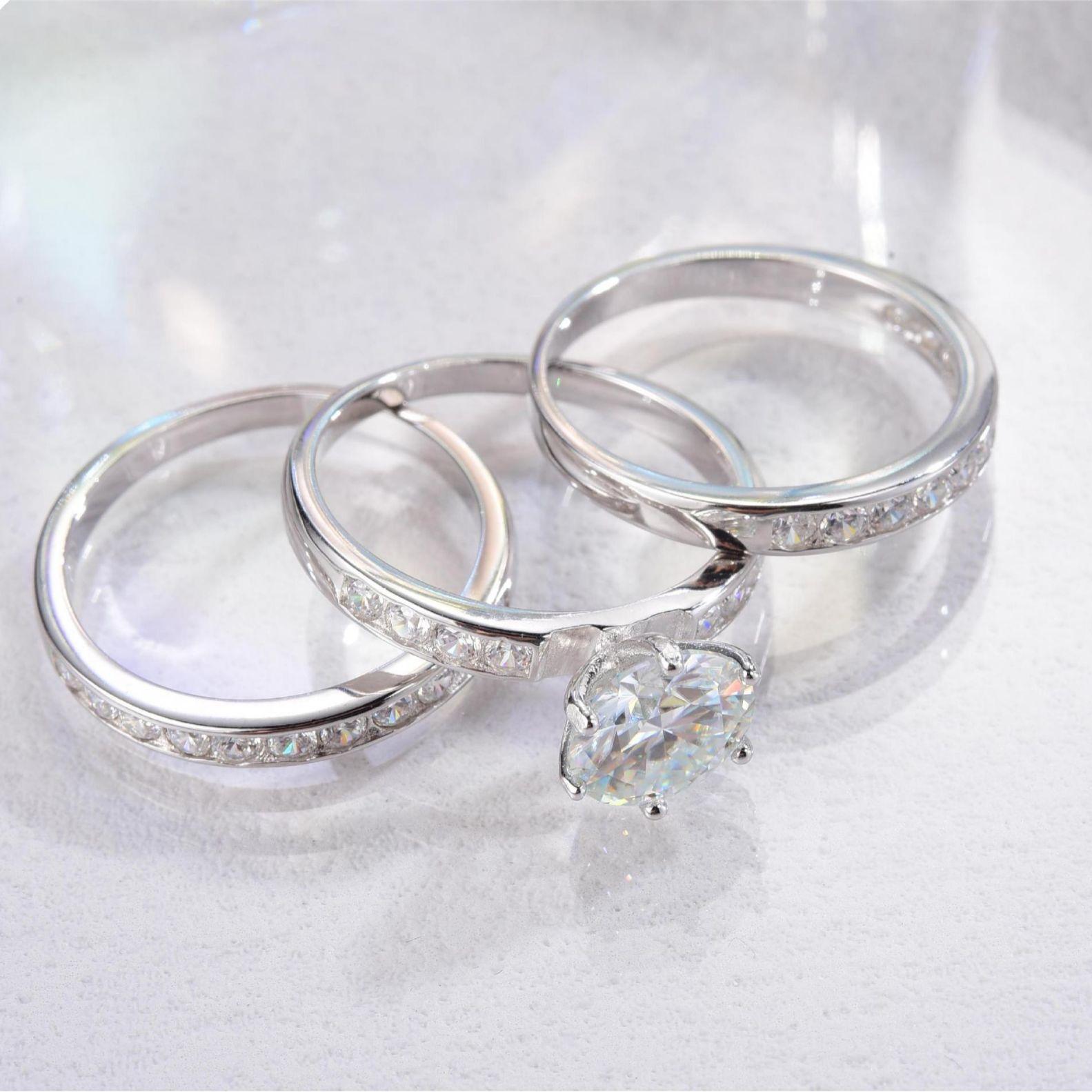 Anillo apilable tres en uno de plata S925 con moissanita de 2 quilates, diseño dividido cruzado, superventas transfronterizas, fabricantes europeos y americanos, superventas