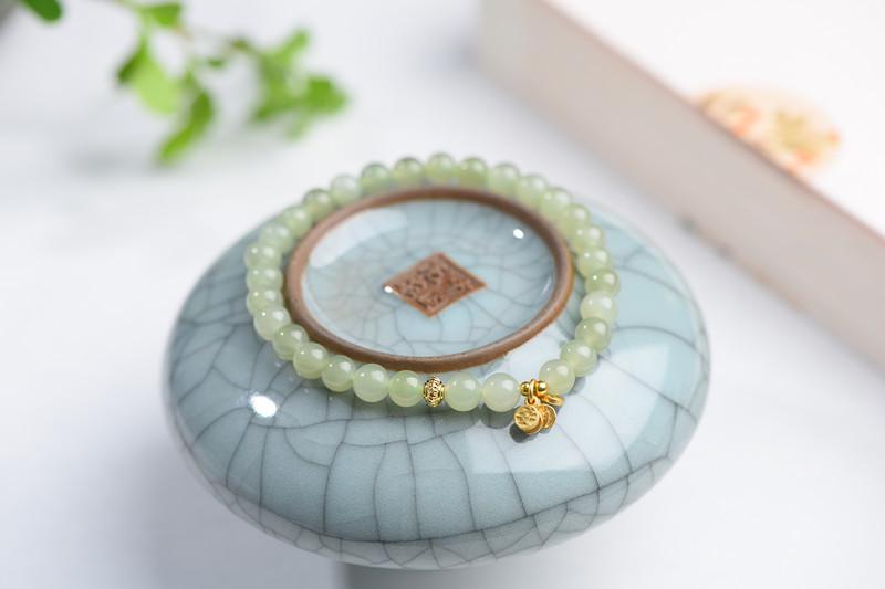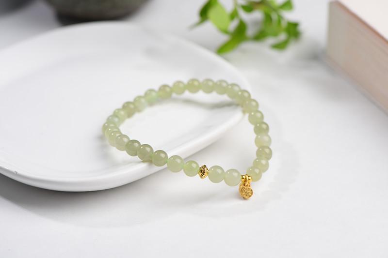 Pulsera de Jade Hetian Natural con Accesorios Ping An Joy Masculino y Femenino Primera Joyería Moda Simple Pulsera Versátil