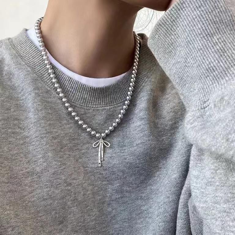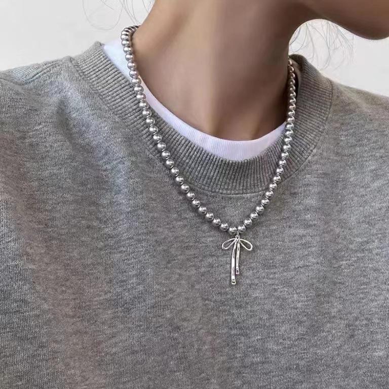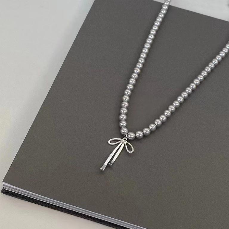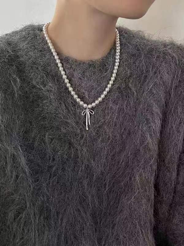 Collar de perlas con lazo para mujer, otoño e invierno 2024, nueva y popular cadena de clavícula, accesorios de collar de nicho de lujo ligeros de alta calidad