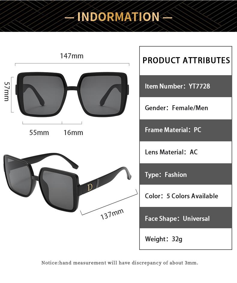 Versión coreana de gafas de sol de alta gama con montura grande y adelgazamiento, con forma de D, cuadradas, antiultravioleta, de tendencia pequeña, al por mayor