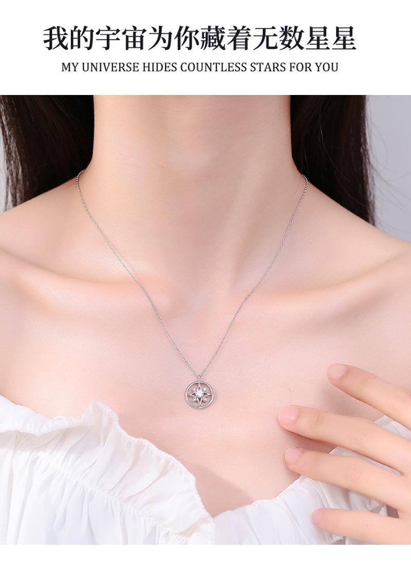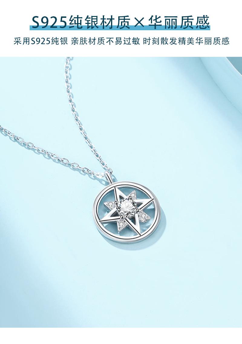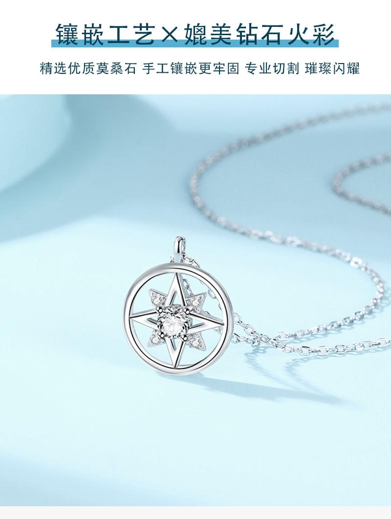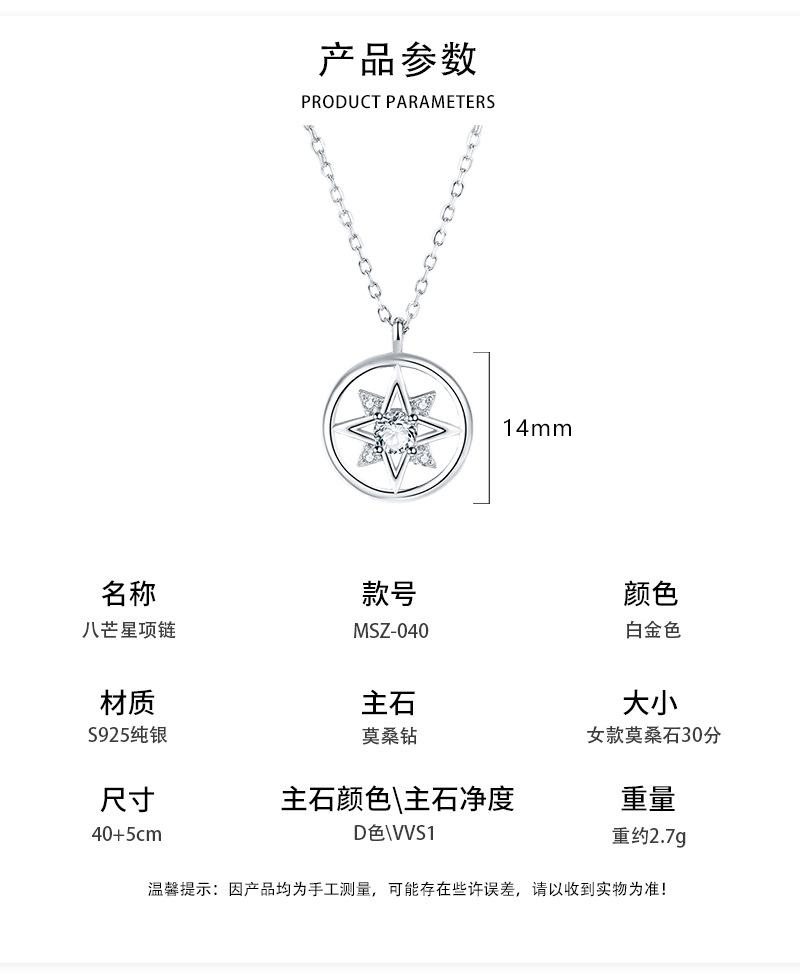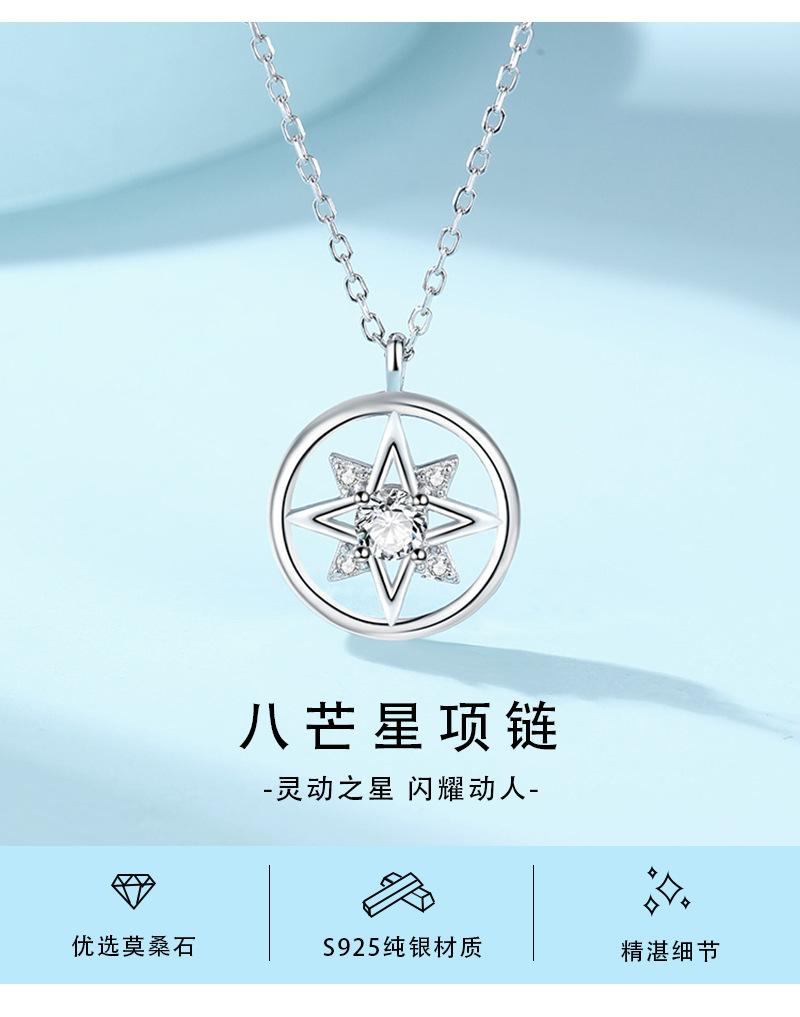 Collar de diamantes de moissanita con forma de estrella de ocho Mang en plata de ley S925, elegante y ligero colgante redondo de cadena de clavícula de lujo para celebridades de Internet, venta al por mayor
