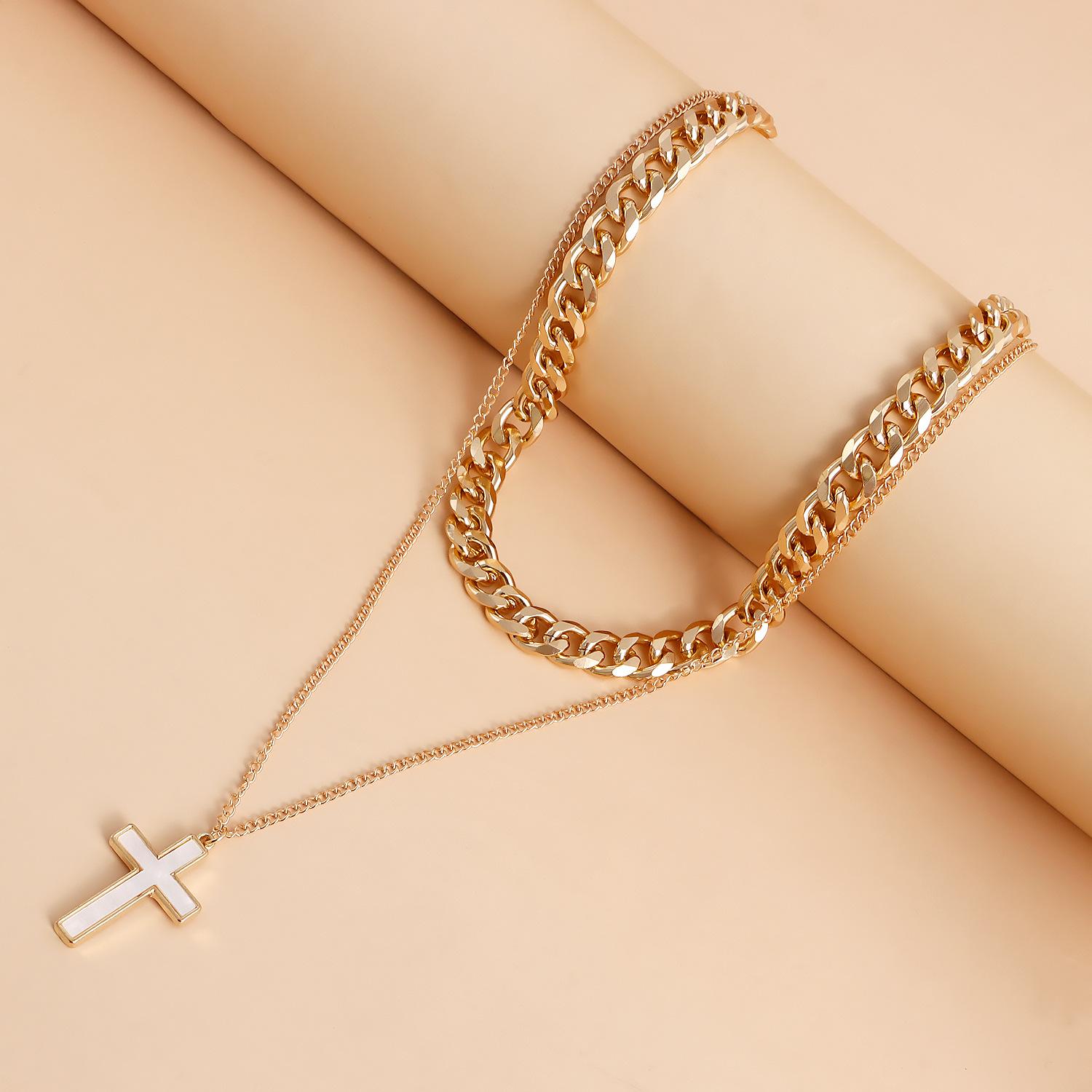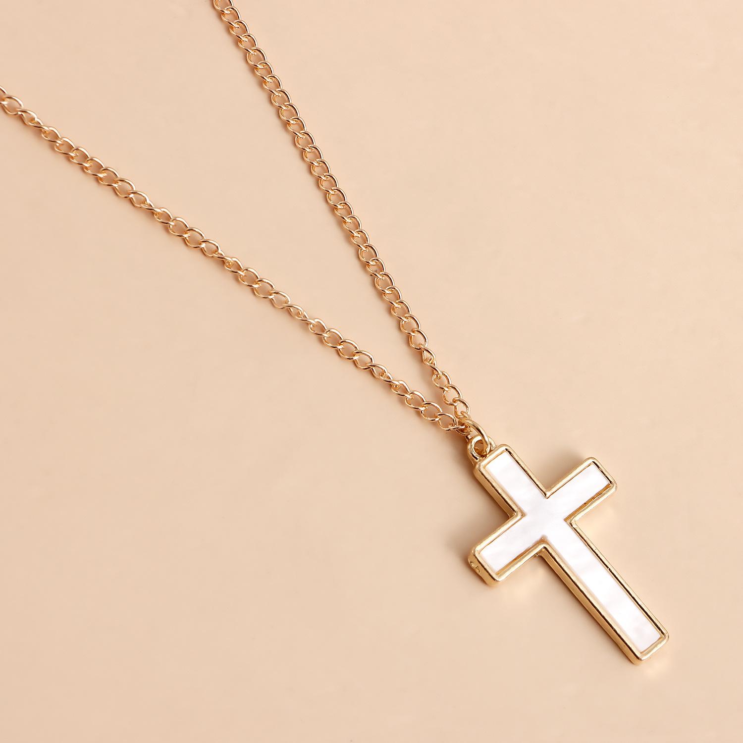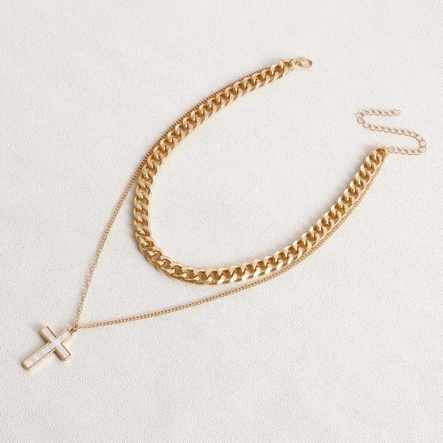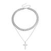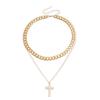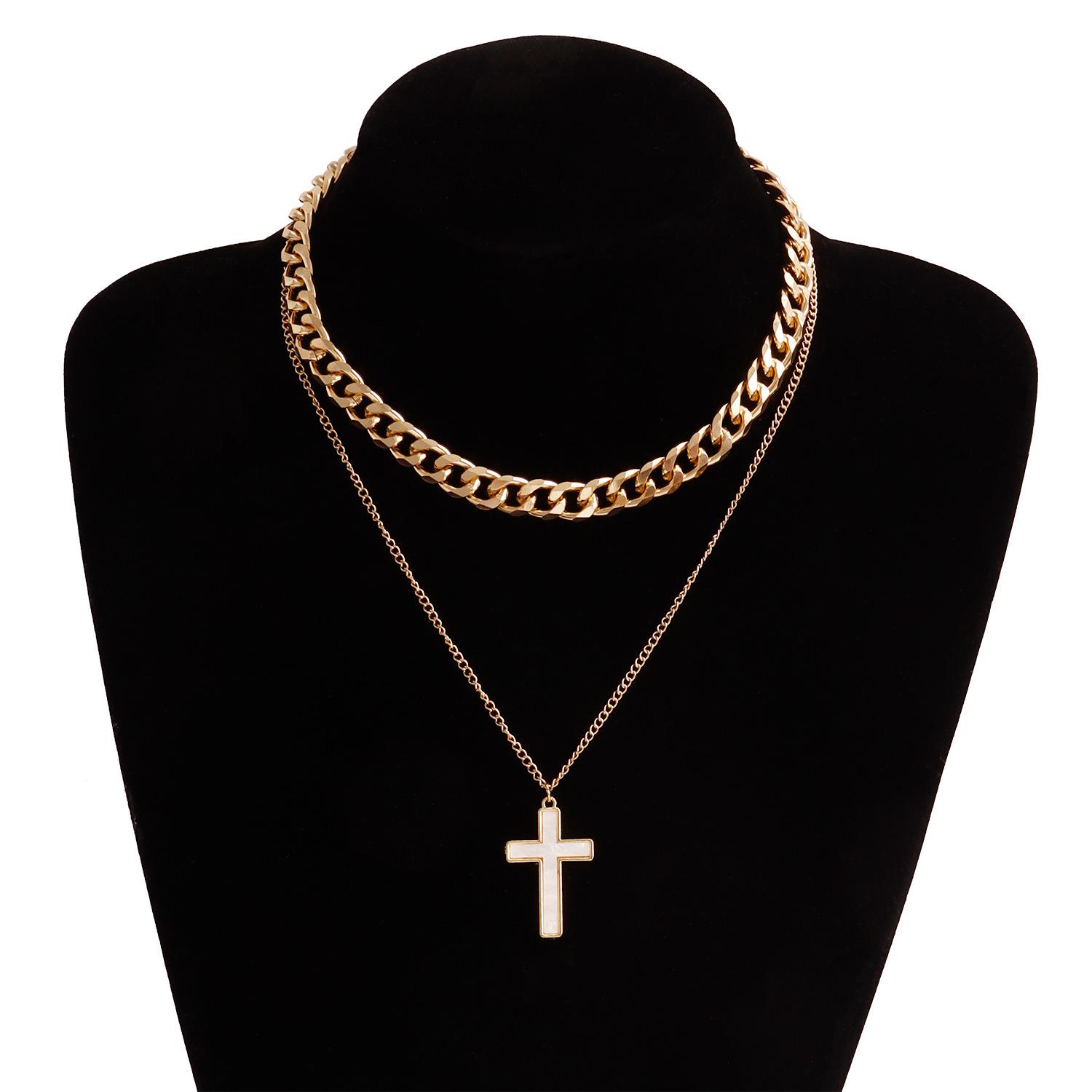 Joyería transfronteriza europea y americana punk doble cruz colgante nácar collar gargantilla de lujo ligero para mujer al por mayor