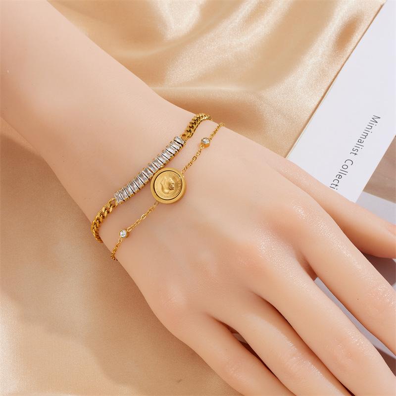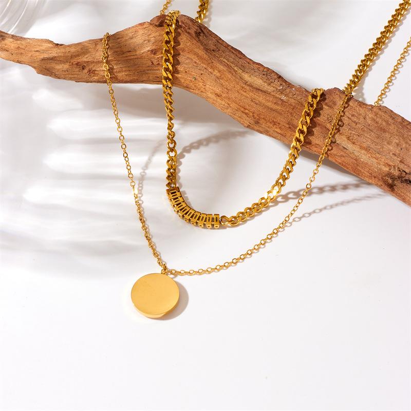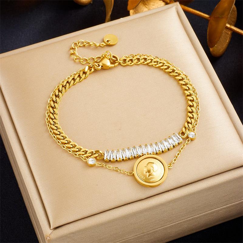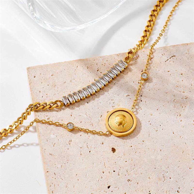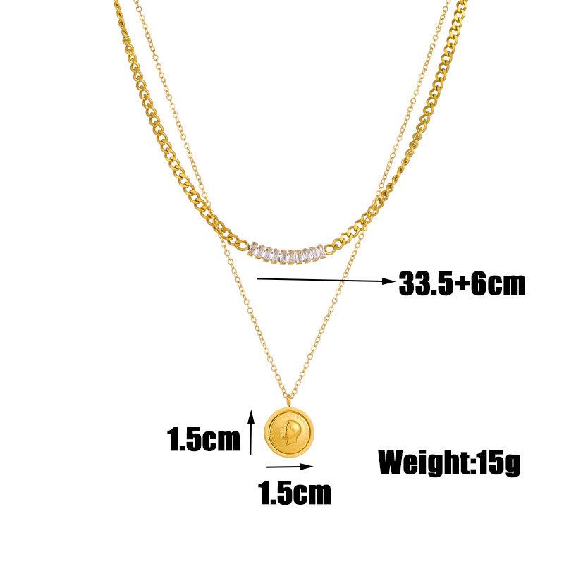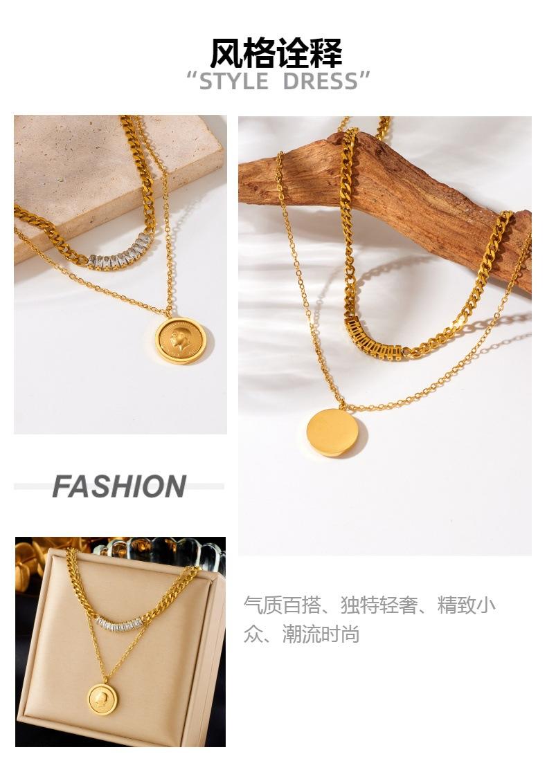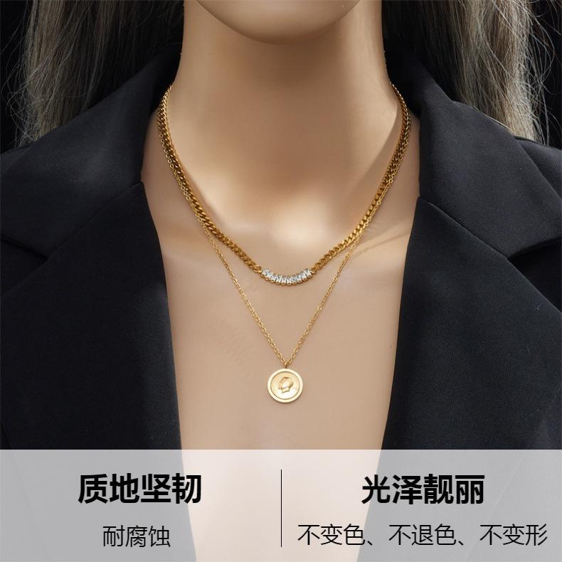 Moda Europea y Americana Personalidad Tendencia Doble Capa Apilada Retrato Redondo Marca Moneda Colgante Cadena de Acero Titanio Pulsera Collar