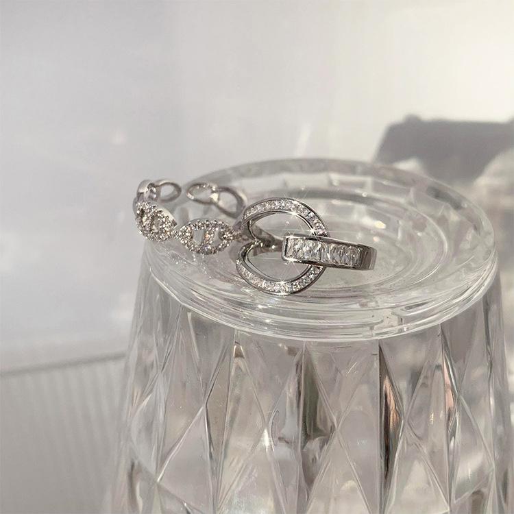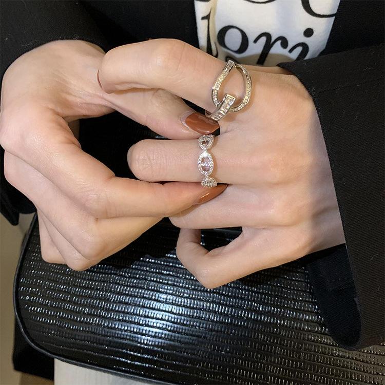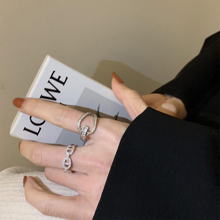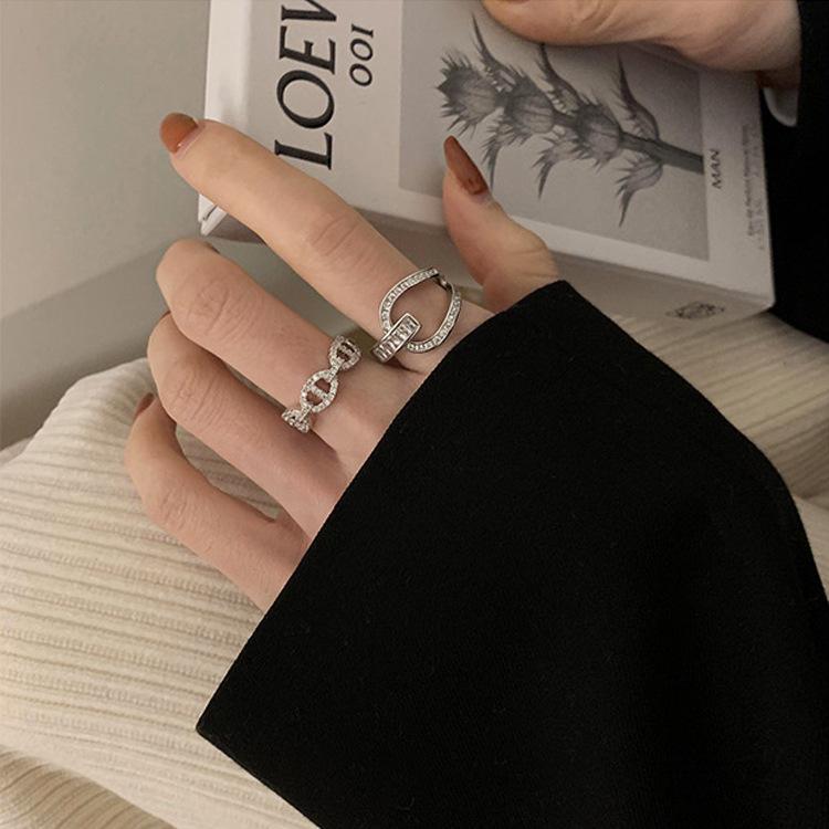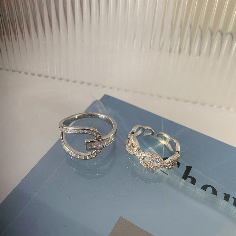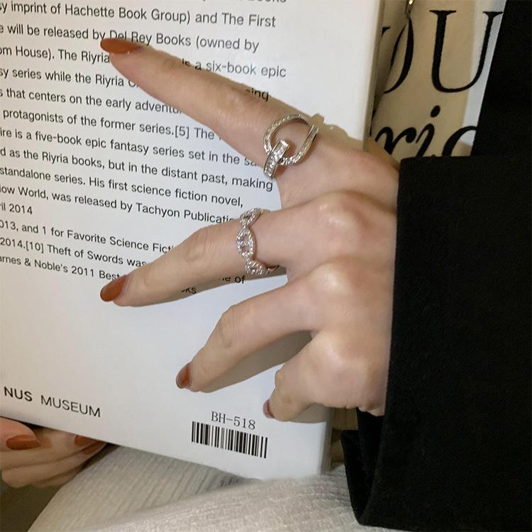 Diseño Nicho Conjunto de Anillos Abiertos de Metal con Zircón Escalado para Mujer Estilo Coreano Simple Combinable Elegante