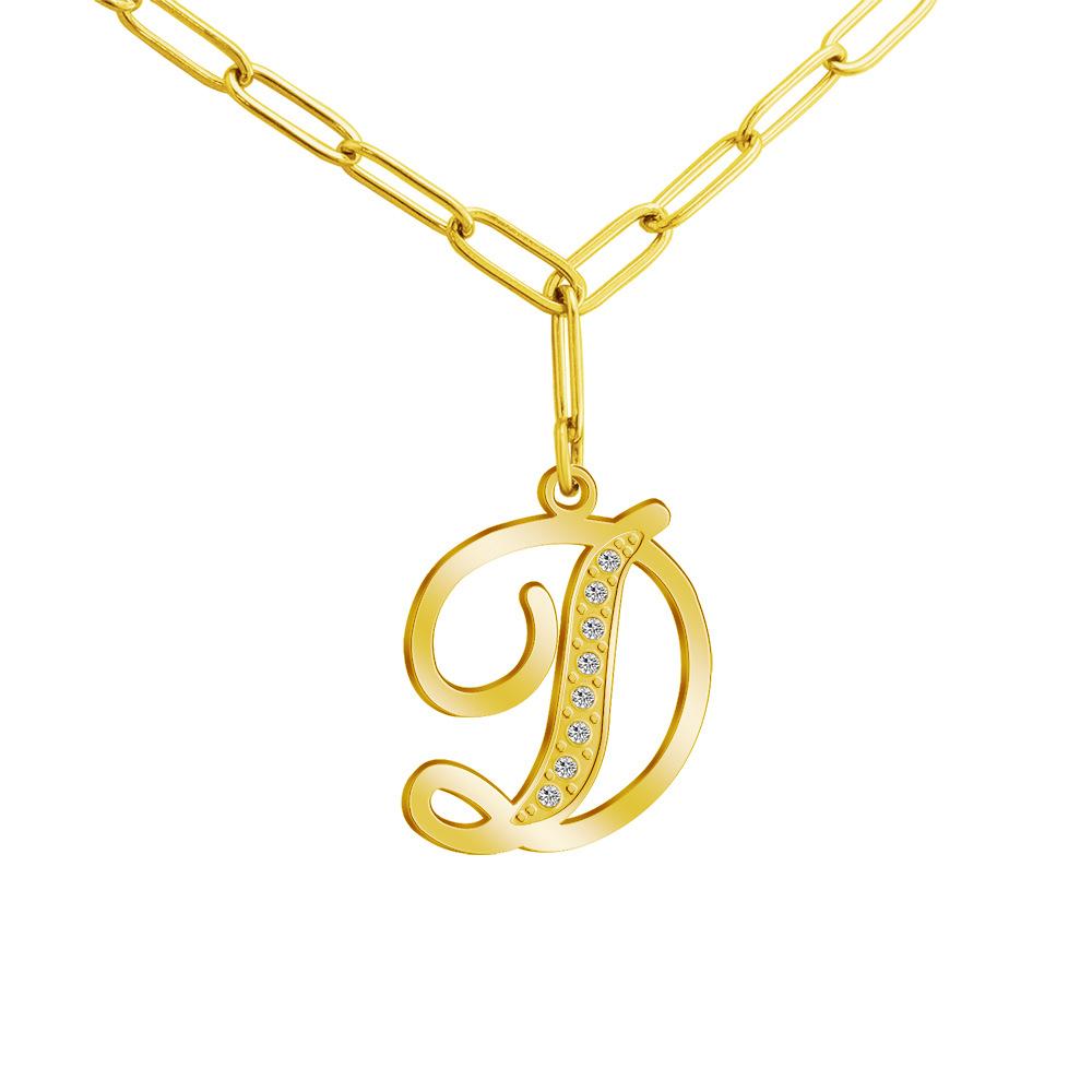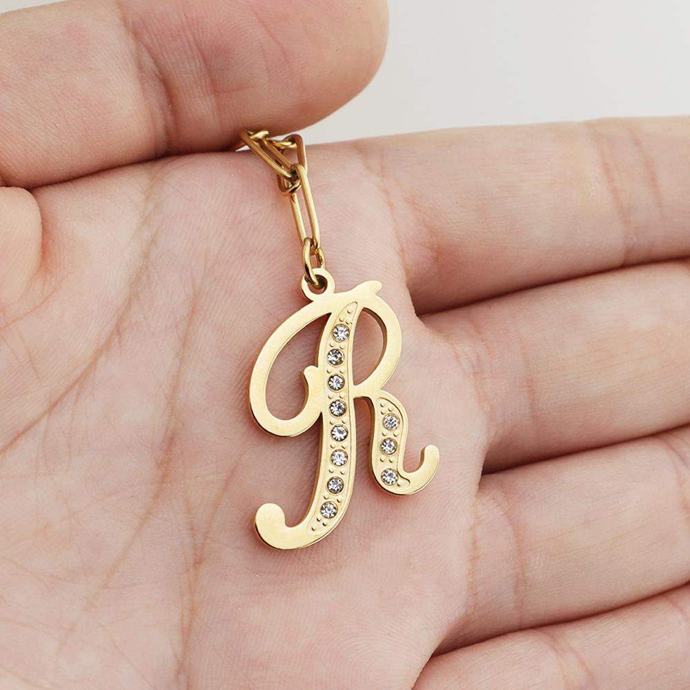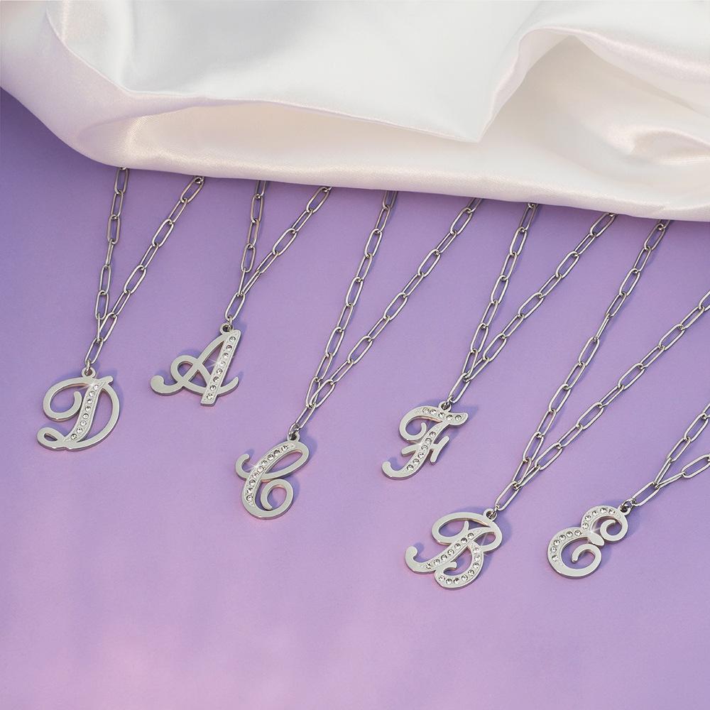 Collar con 26 letras mayúsculas estilo europeo y americano 2025 para mujer, moda, cadena simple para clavícula, colgante de acero inoxidable con diamantes