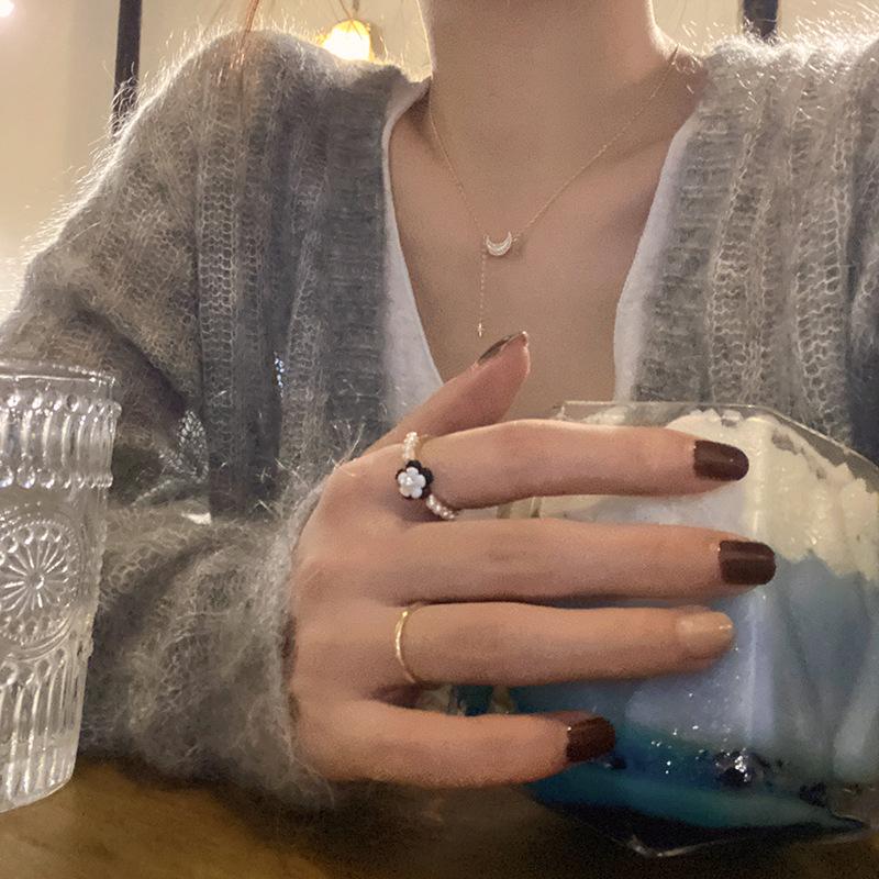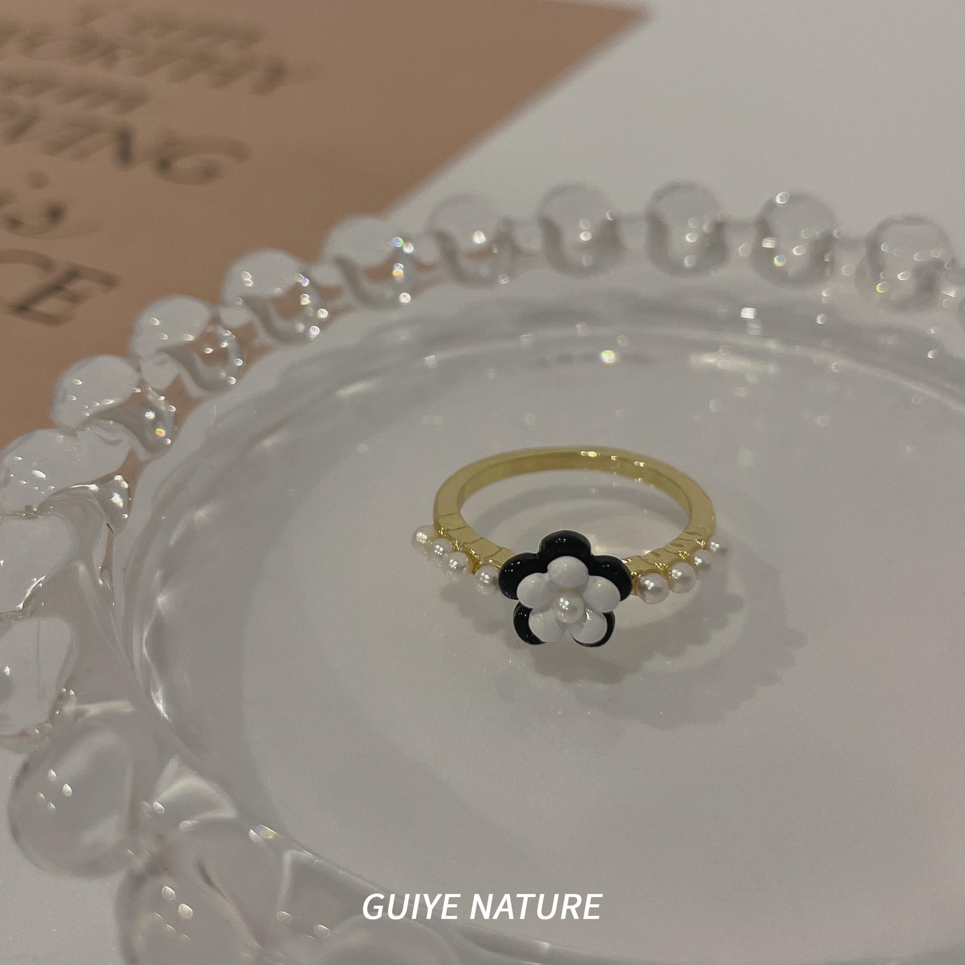 Anillo de Flor de Perlas estilo Chanel para Mujer, Diseño Nicho, Moderno y Único, Nuevo Anillo de Dedo Índice de Moda 2022