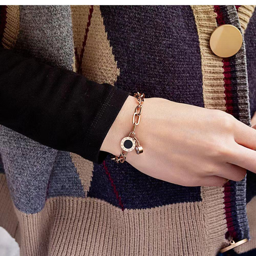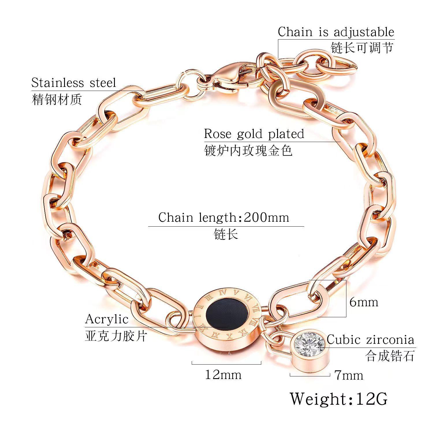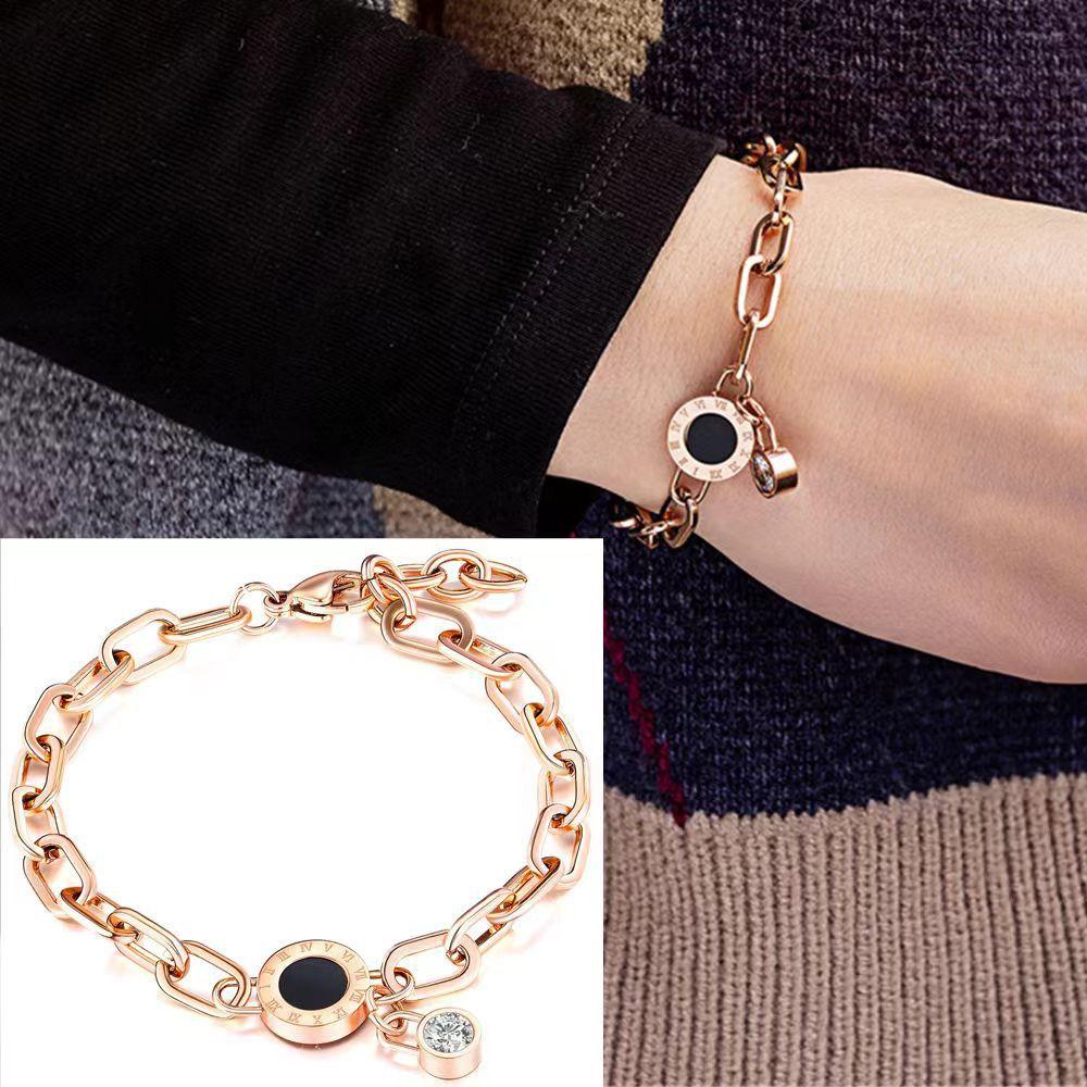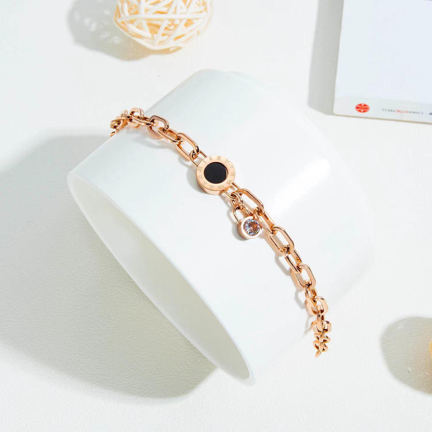 Pulsera Europea y Americana de Acero Inoxidable con Números Romanos y Diamantes para Mano, Joyería Fina, Acero de Titanio Chapado en Oro Rosa para Mujer, Nuevo Estilo 2022