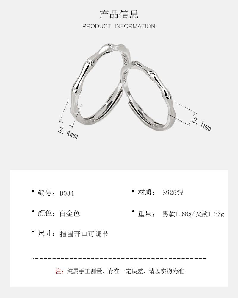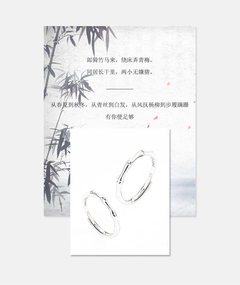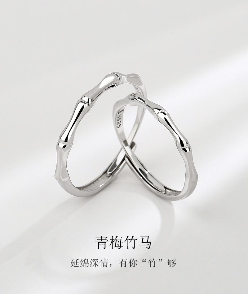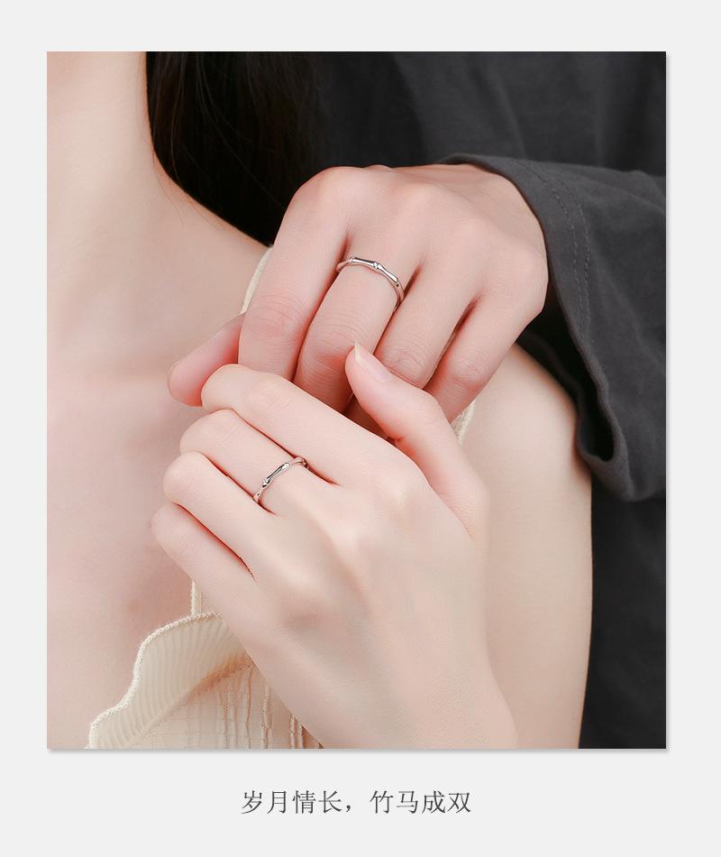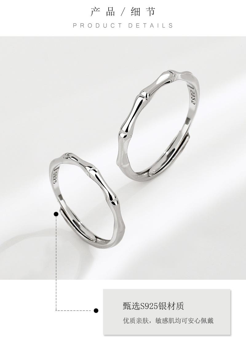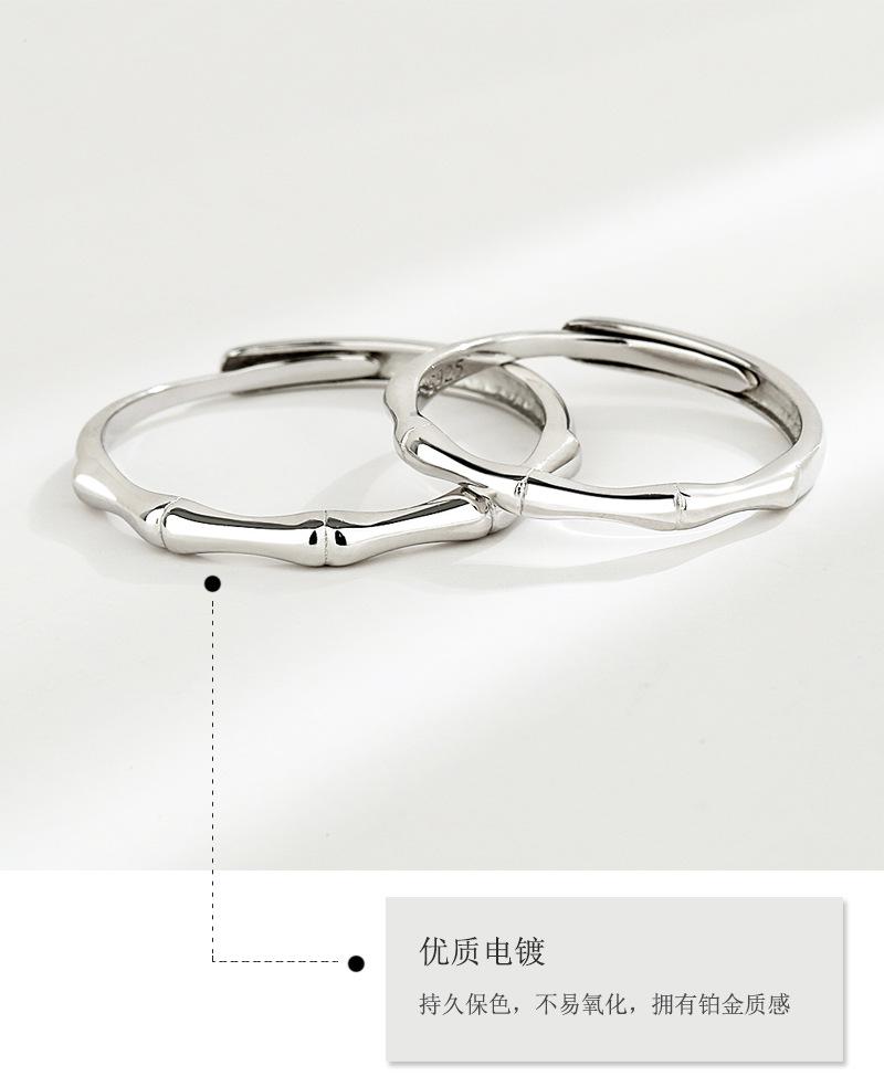Anillo de Pareja de Bambú Antiguo de Plata Esterlina S925 Anillo Liso Simple para Hombre y Mujer Nicho de Gama Alta Regalo de San Valentín