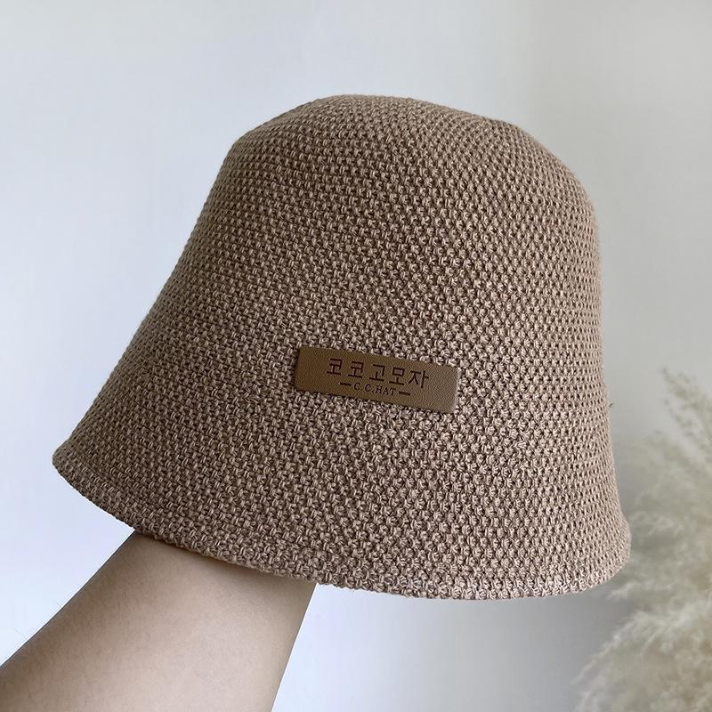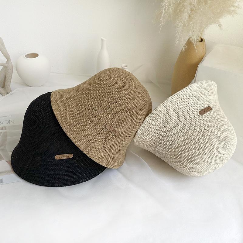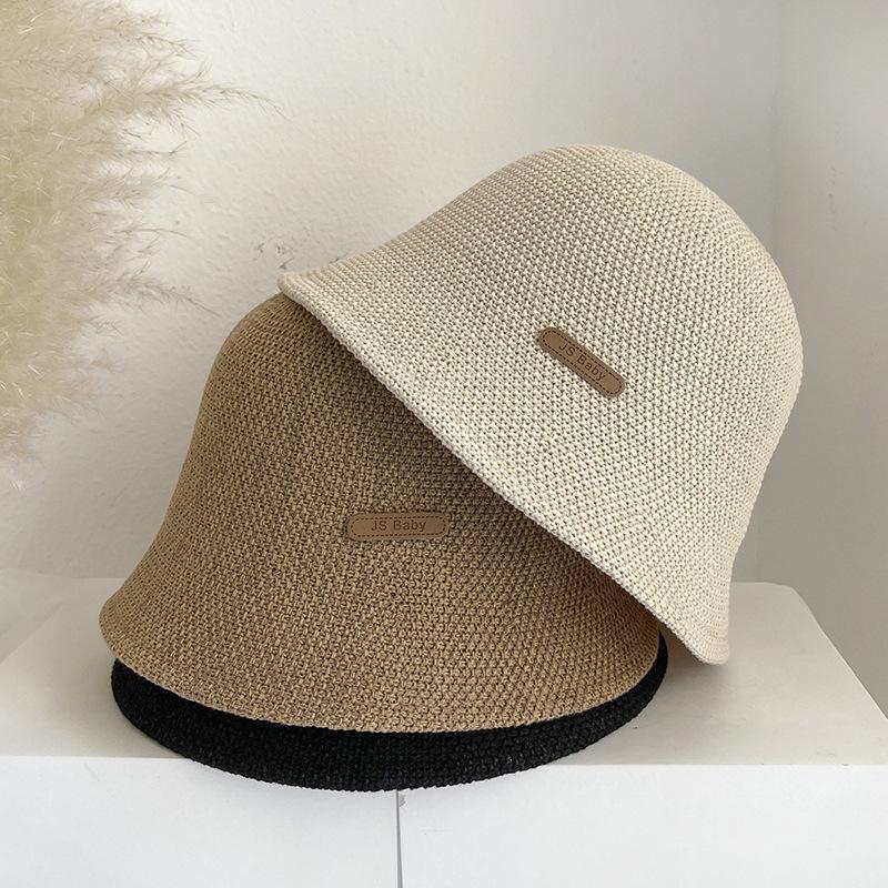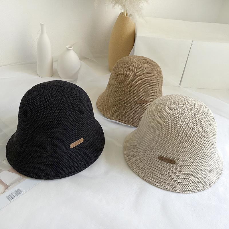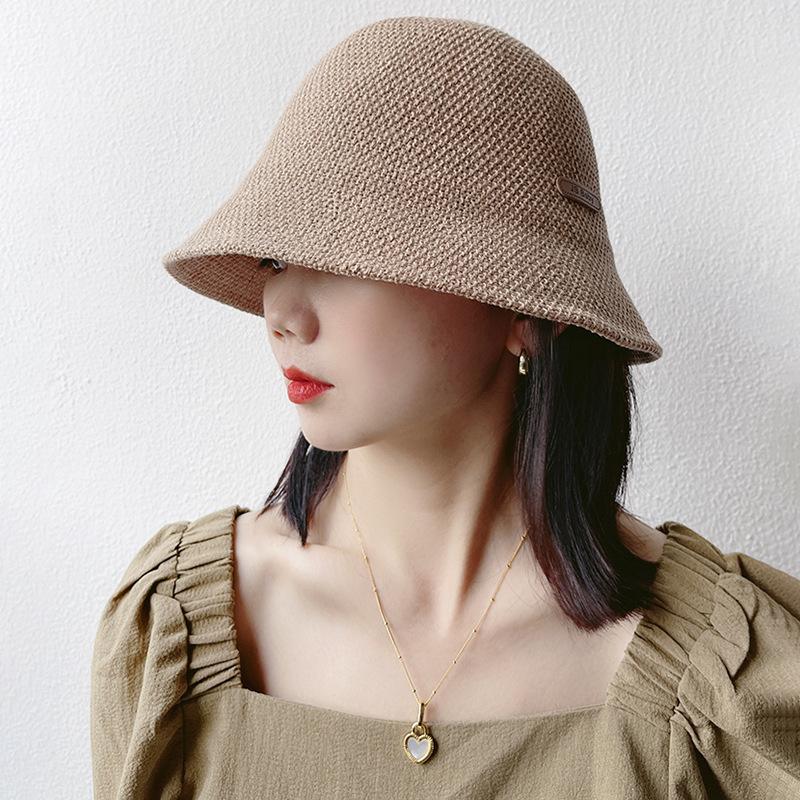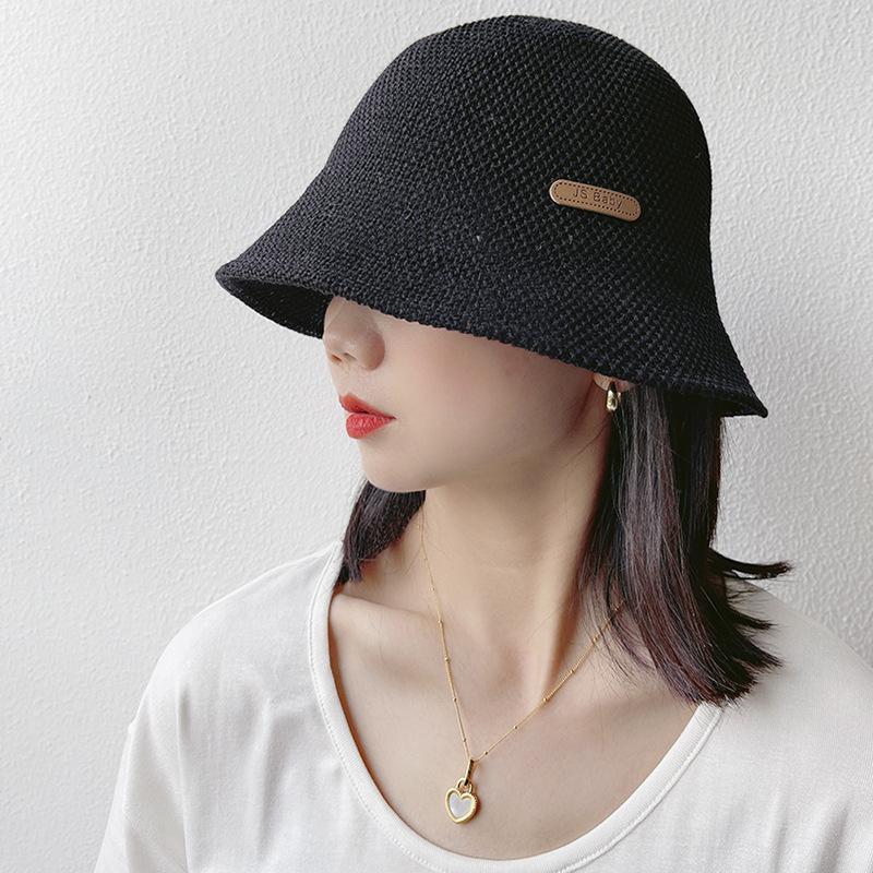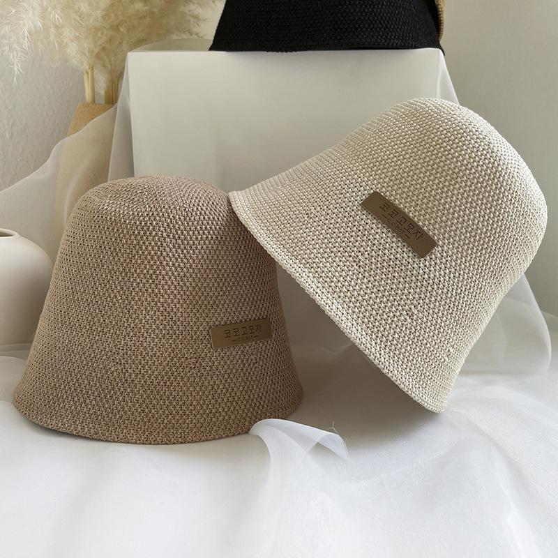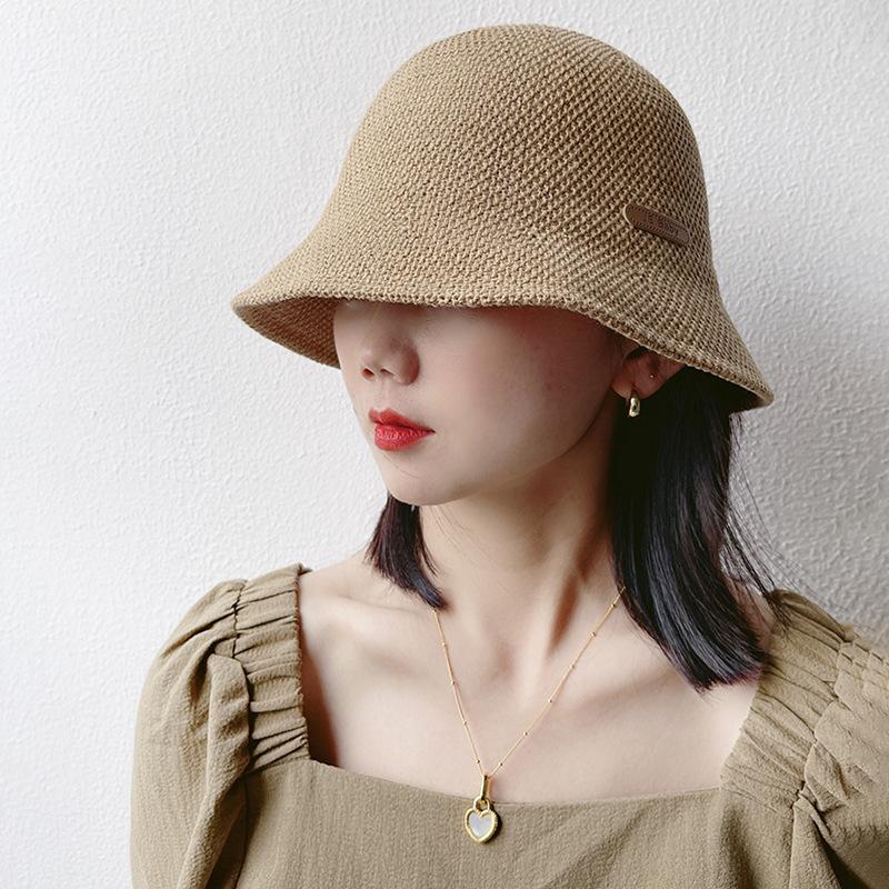 Sombrero de pescador de lino y algodón ligero, transpirable y de diseñador para mujer, con etiqueta de cuero rojo, ideal para el verano y el aire libre, con protección solar.