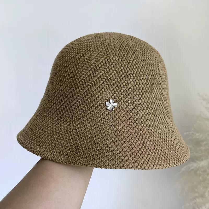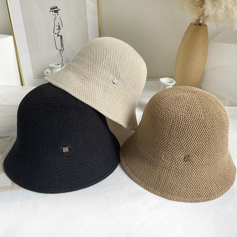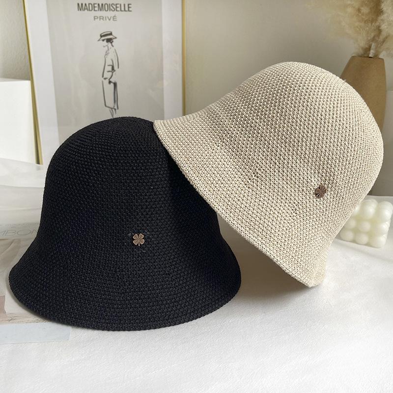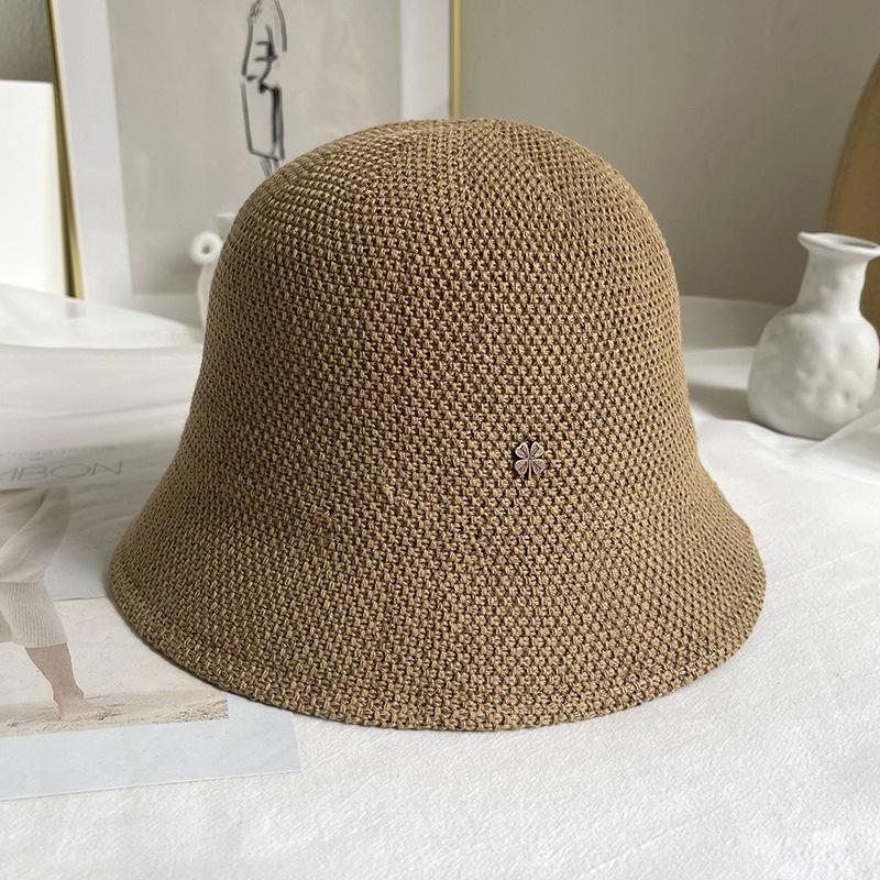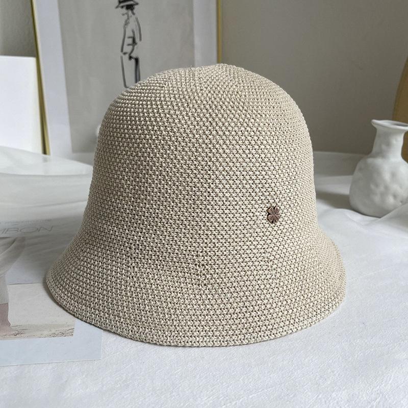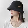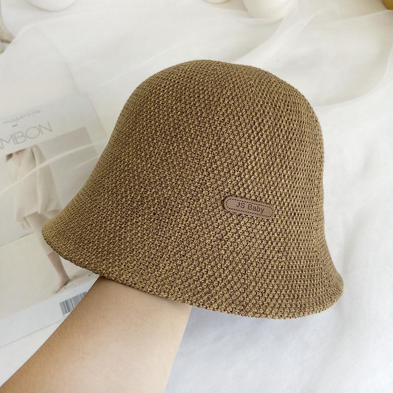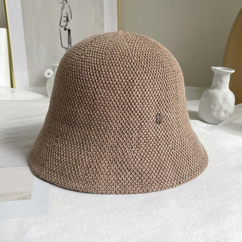 Sombrero de pescador de lino y algodón ligero, transpirable y de diseñador para mujer, con etiqueta de cuero rojo, ideal para el verano y el aire libre, con protección solar.