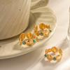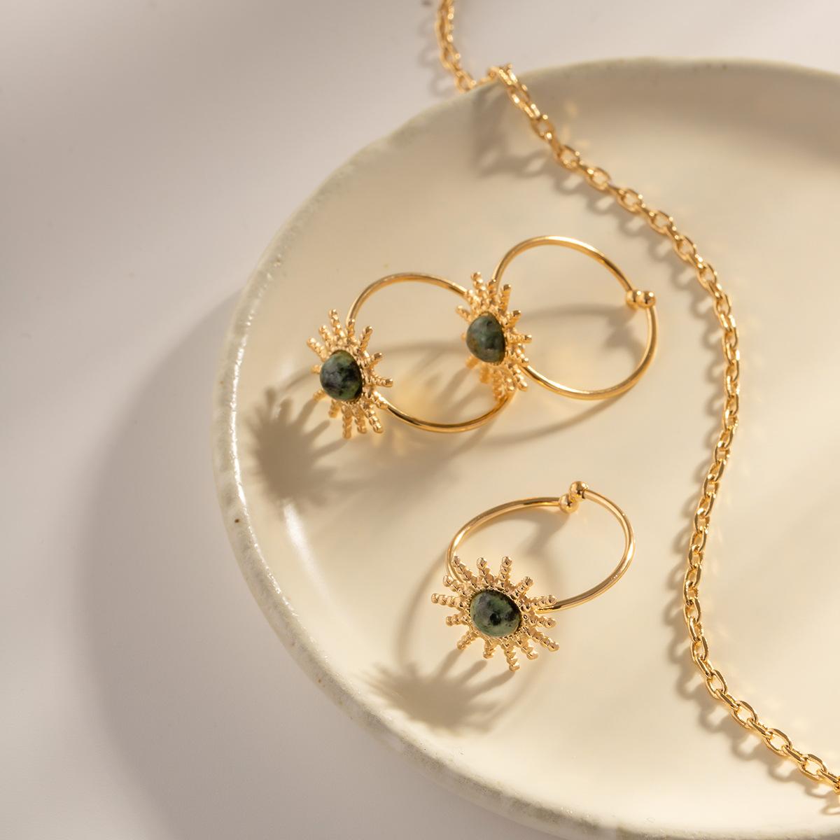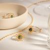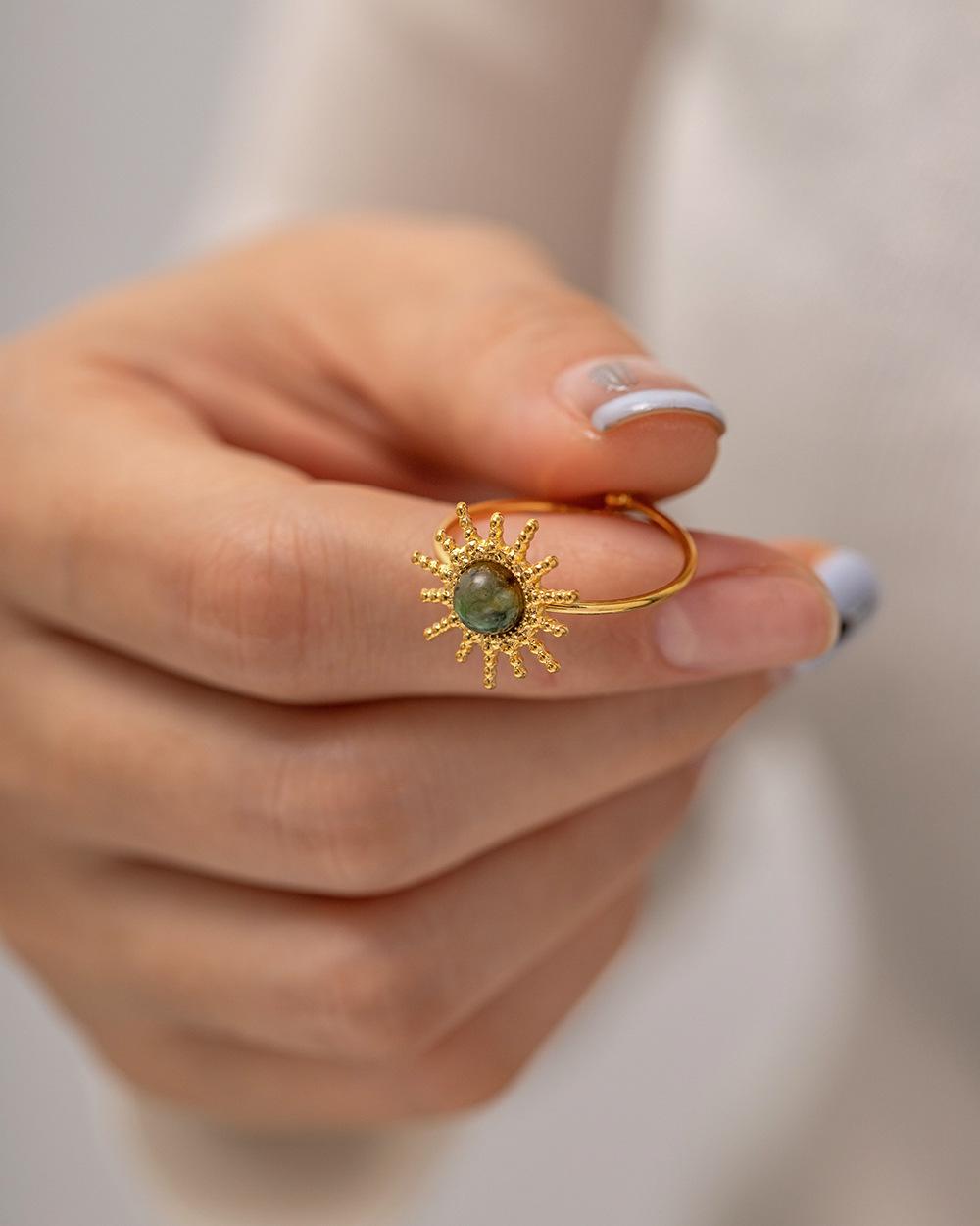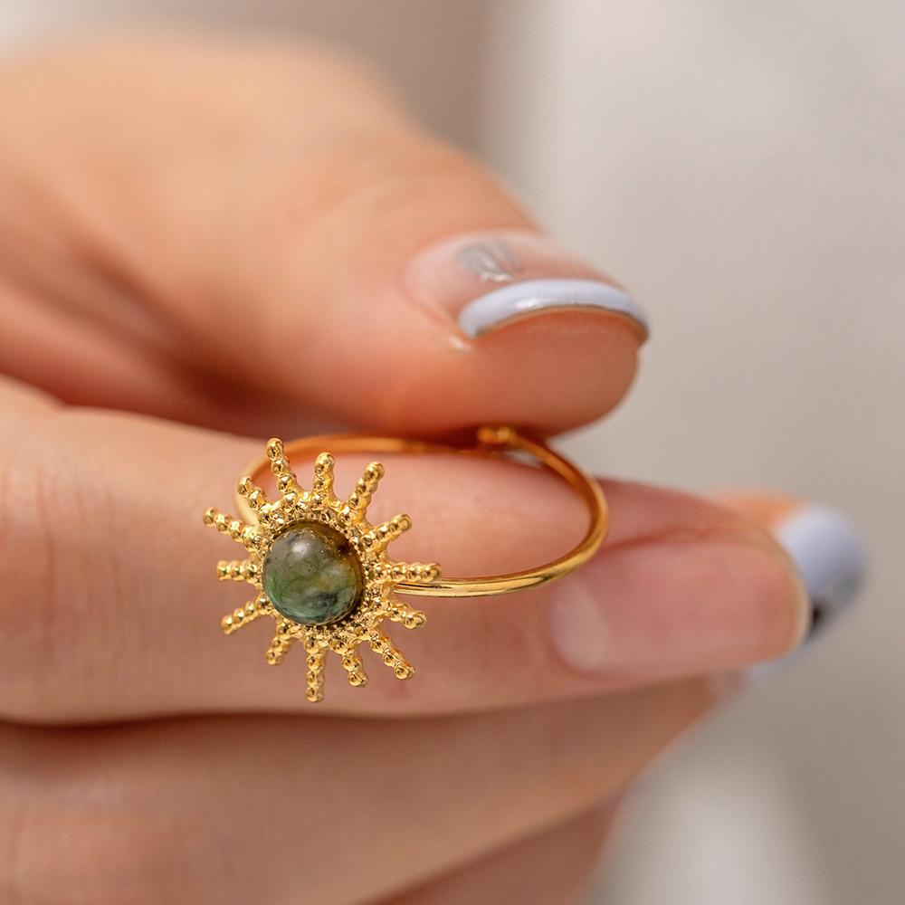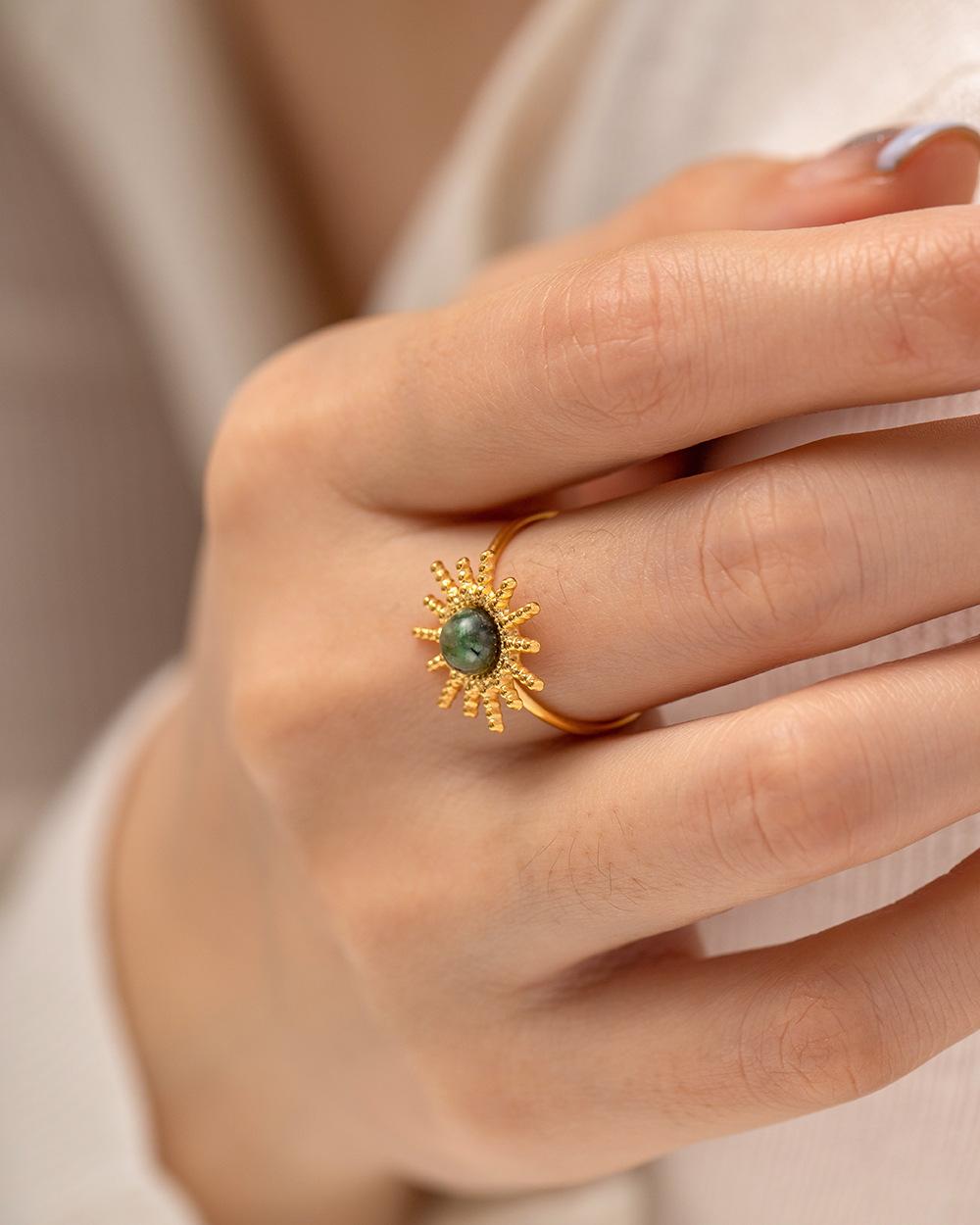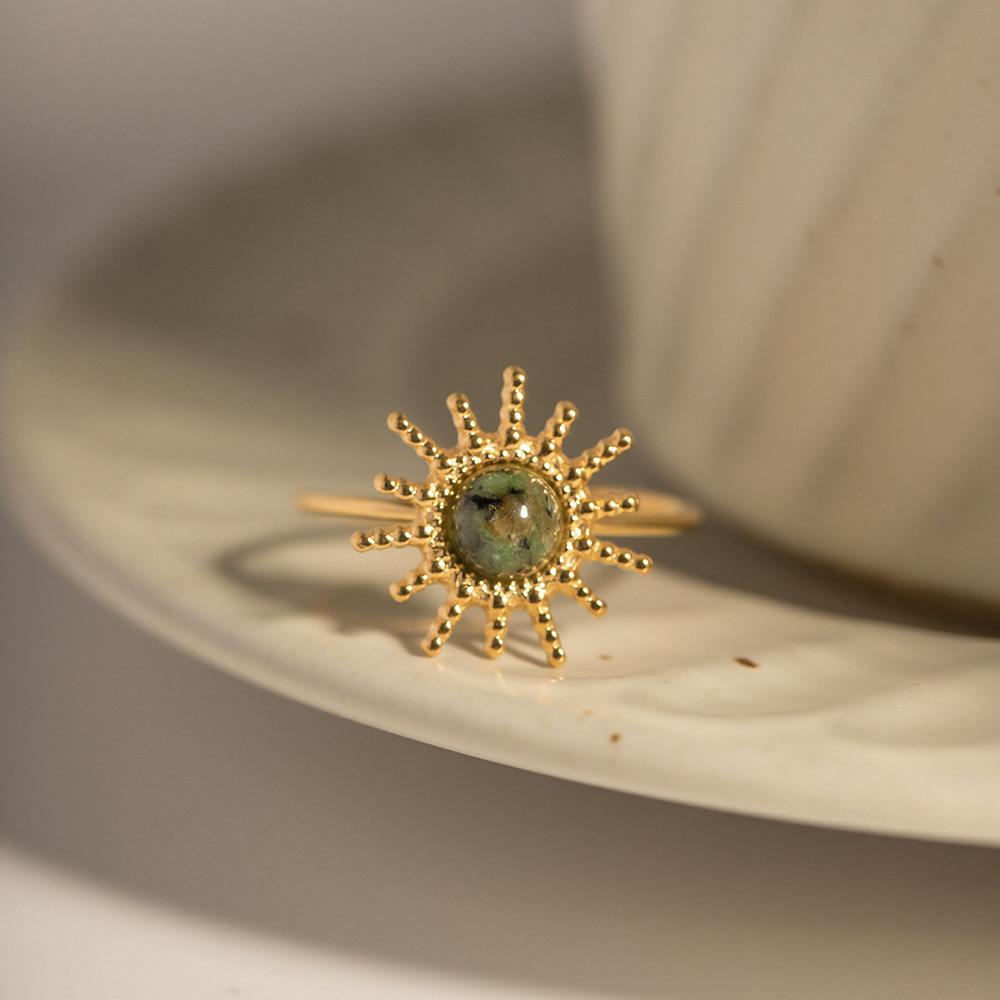 Anillo estilo europeo y americano con forma de sol, turquesa africana, abierto, de acero de titanio, resistente a la decoloración y con bordes cruzados.