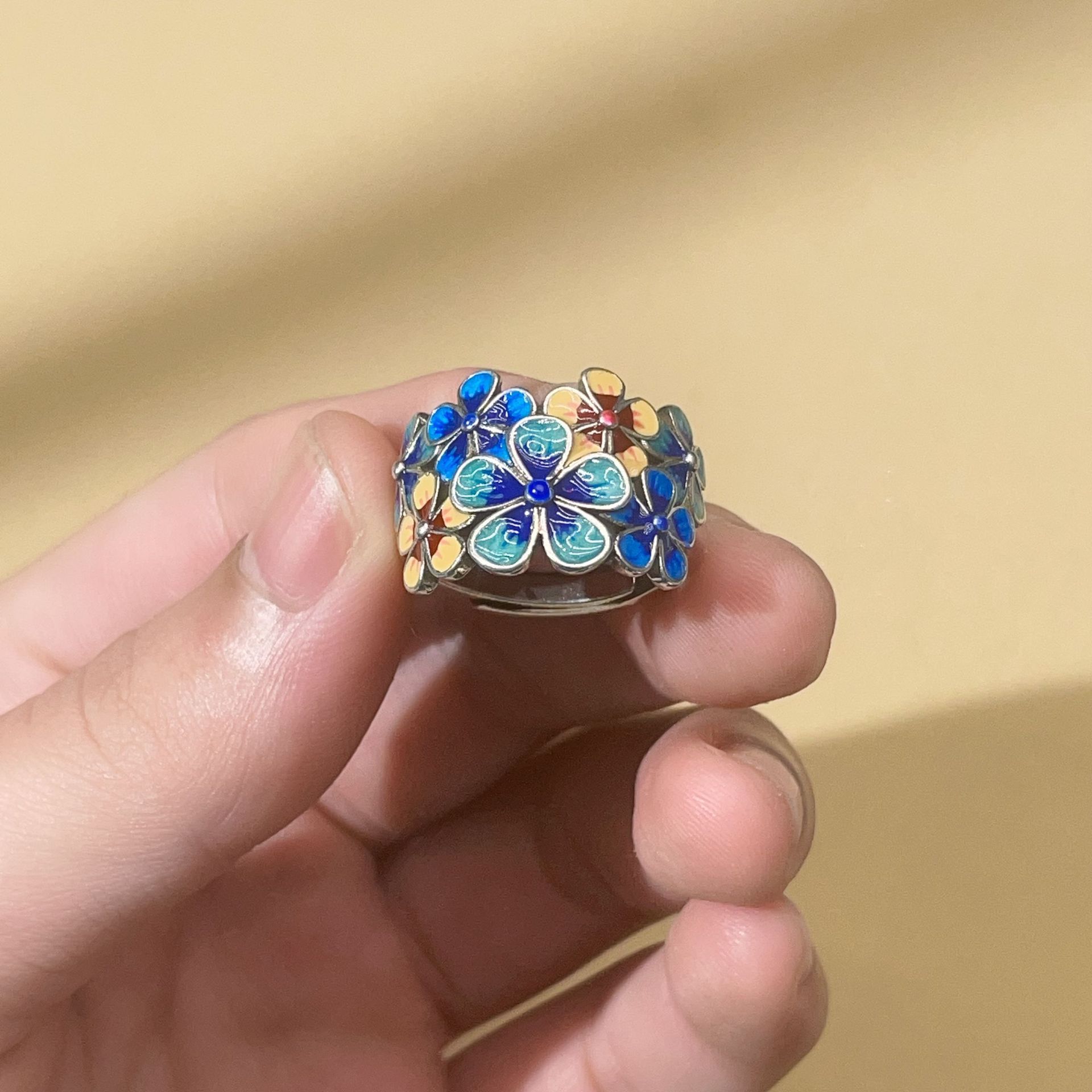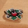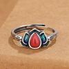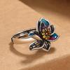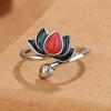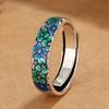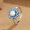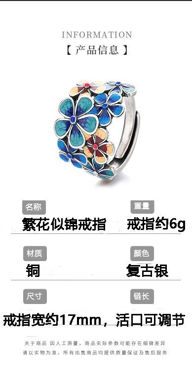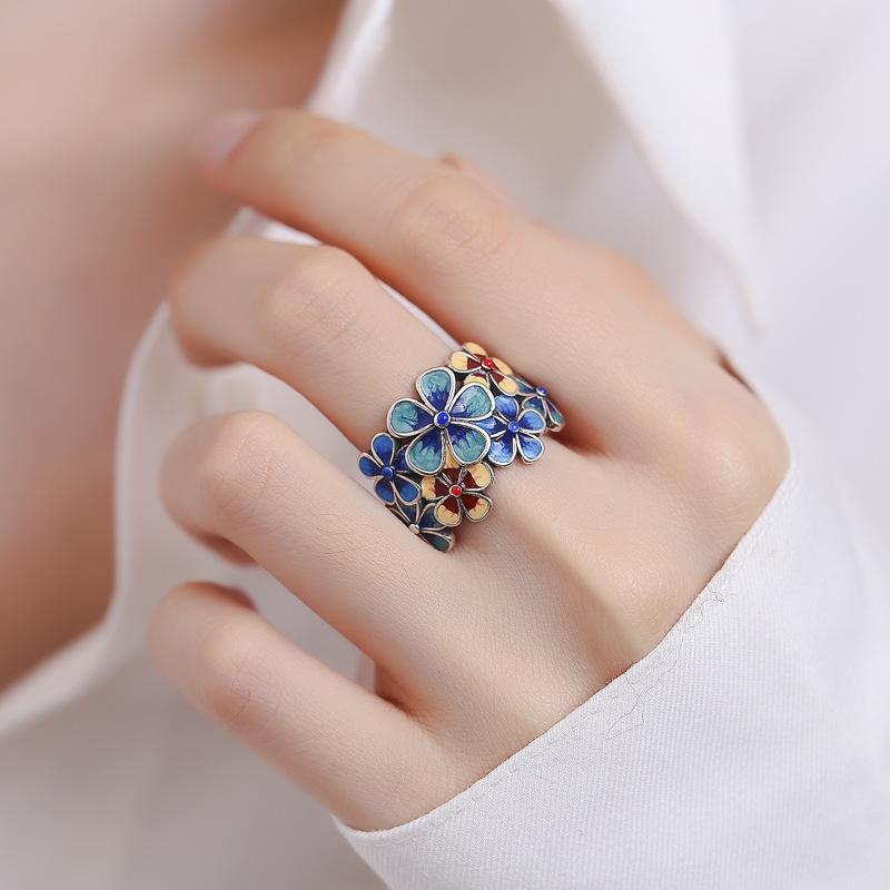 Anillo de Flor de Esmalte Cloisonné para Mujer, Elegante Abertura de Estilo Étnico Retro, Anillo Creativo Ajustable para el Dedo Índice