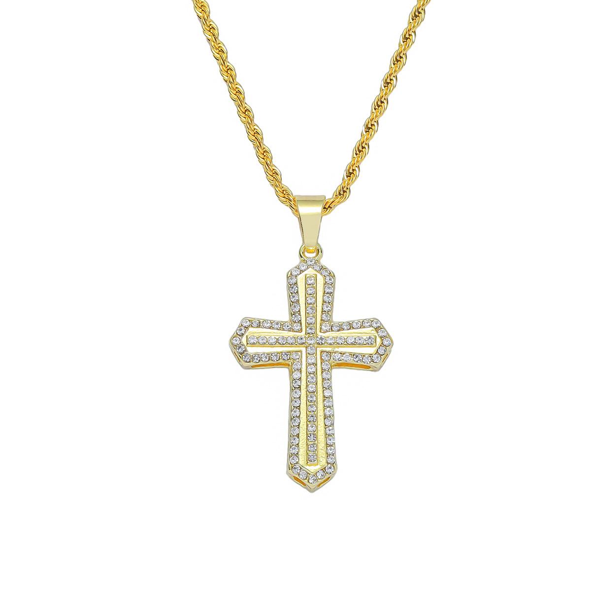 Collar con colgante de cruz tridimensional de diamantes dominantes para hombre, colgante de joyería de hip-hop europea y americana |