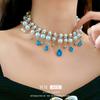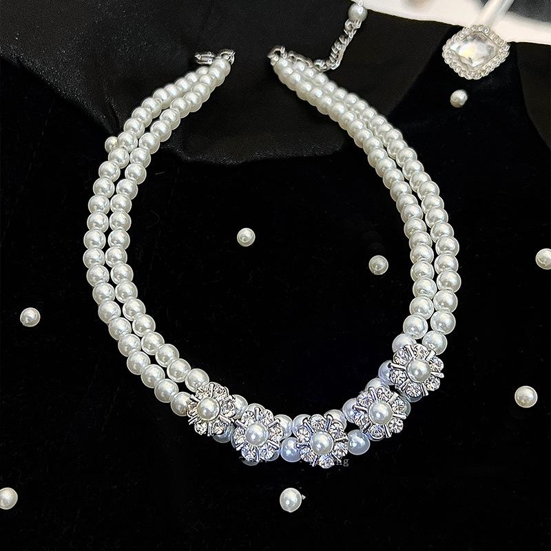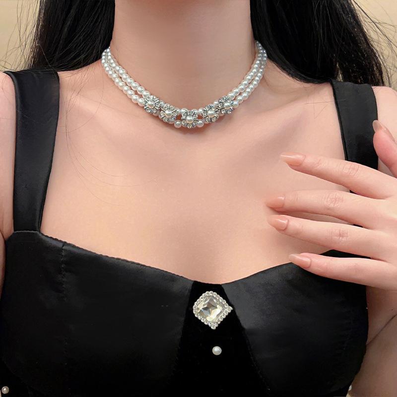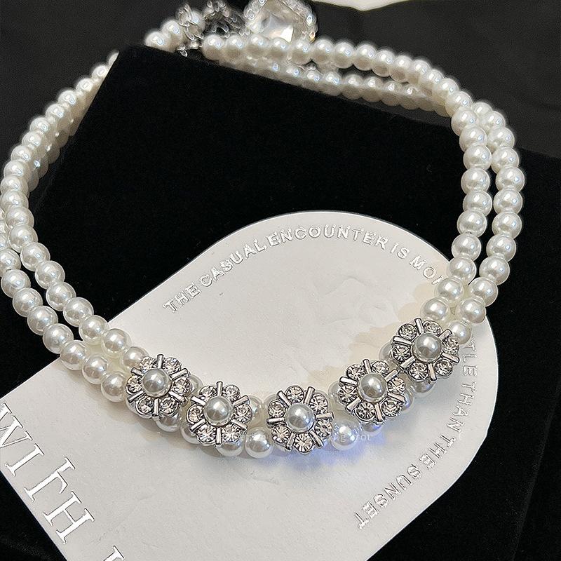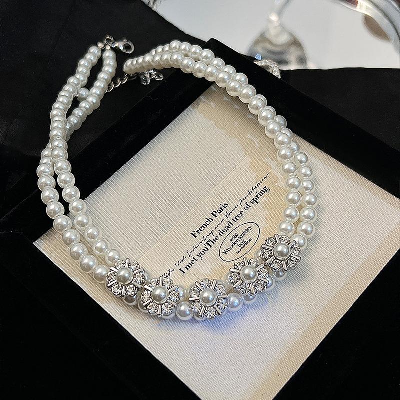 Collar de perlas y flores de diamantes estilo palacio 2024, cadena de clavícula de lujo con nicho ligero, gargantilla de alta gama para mujer