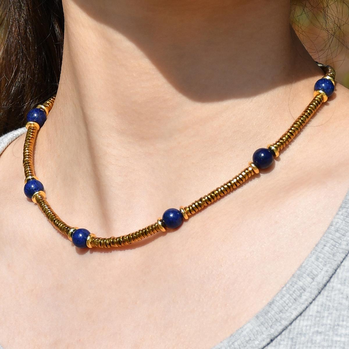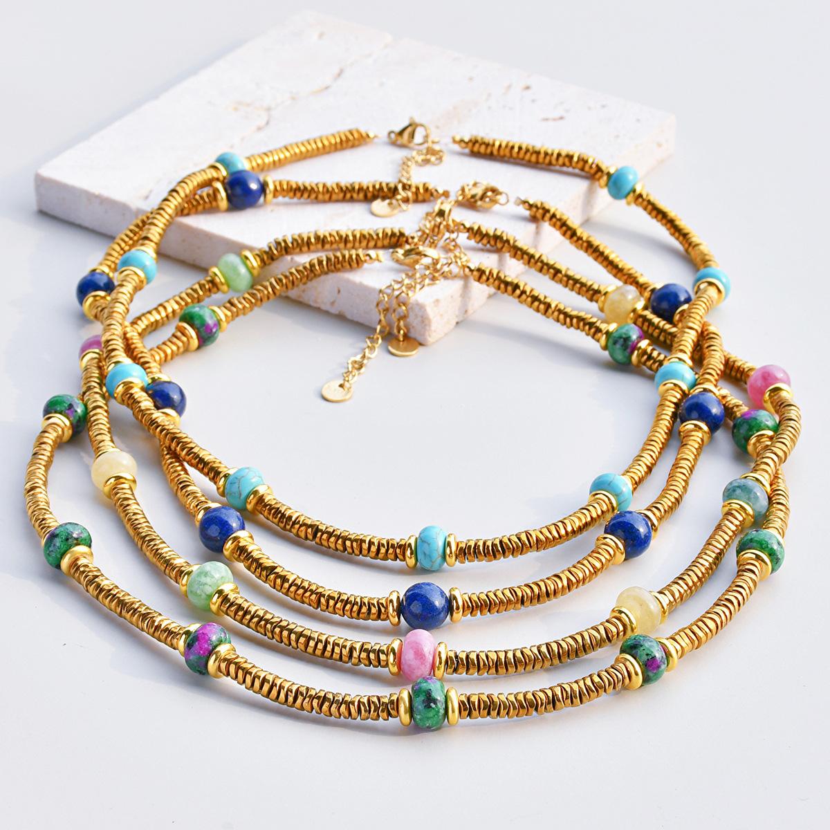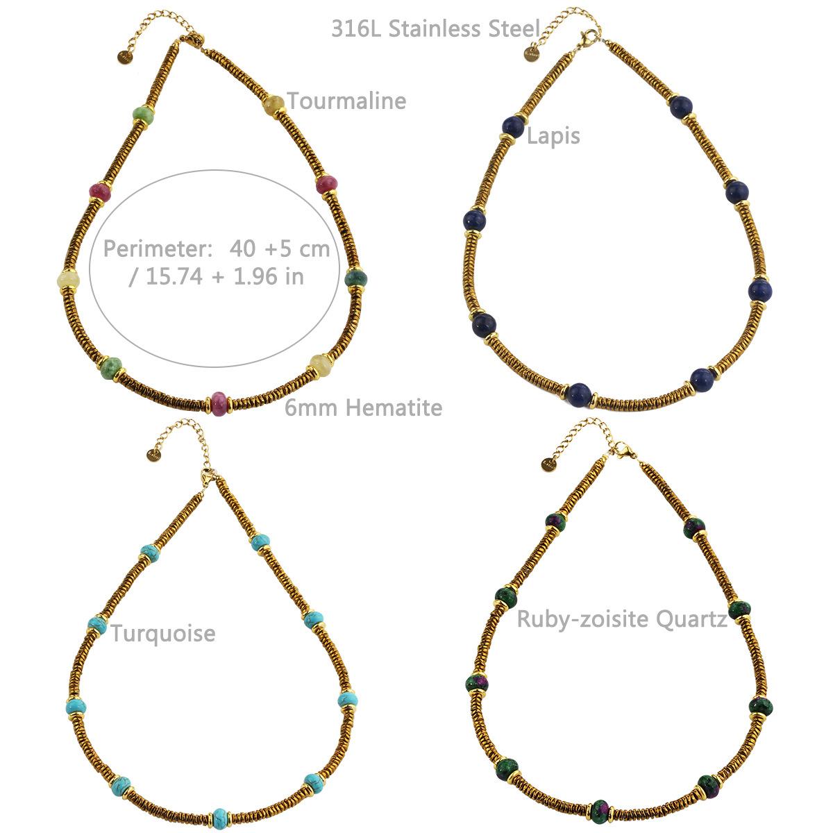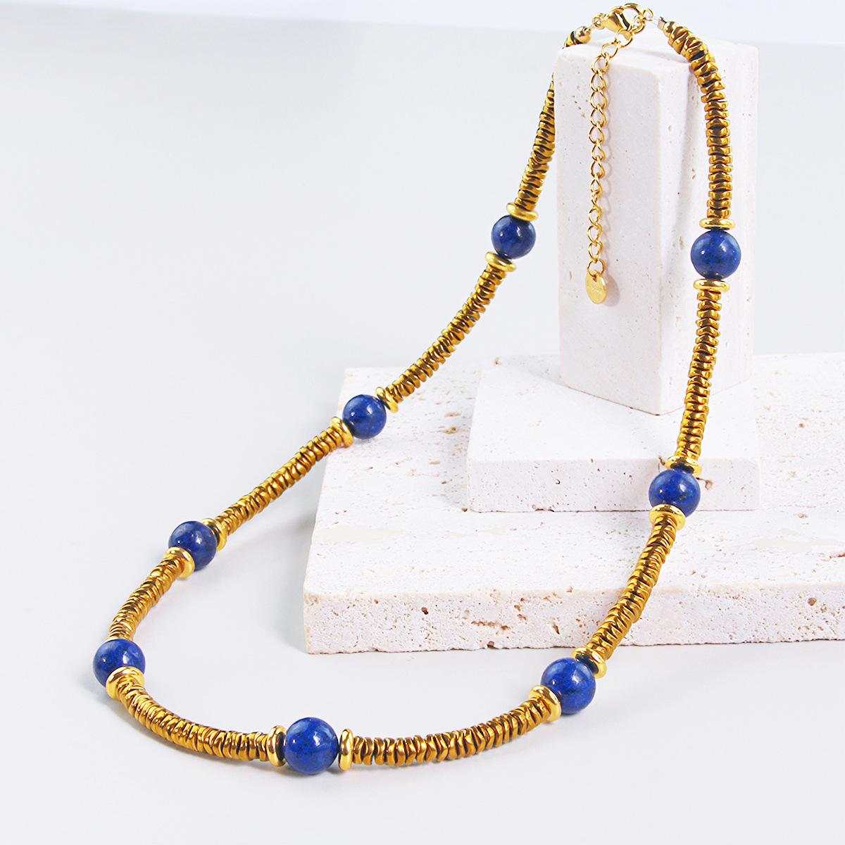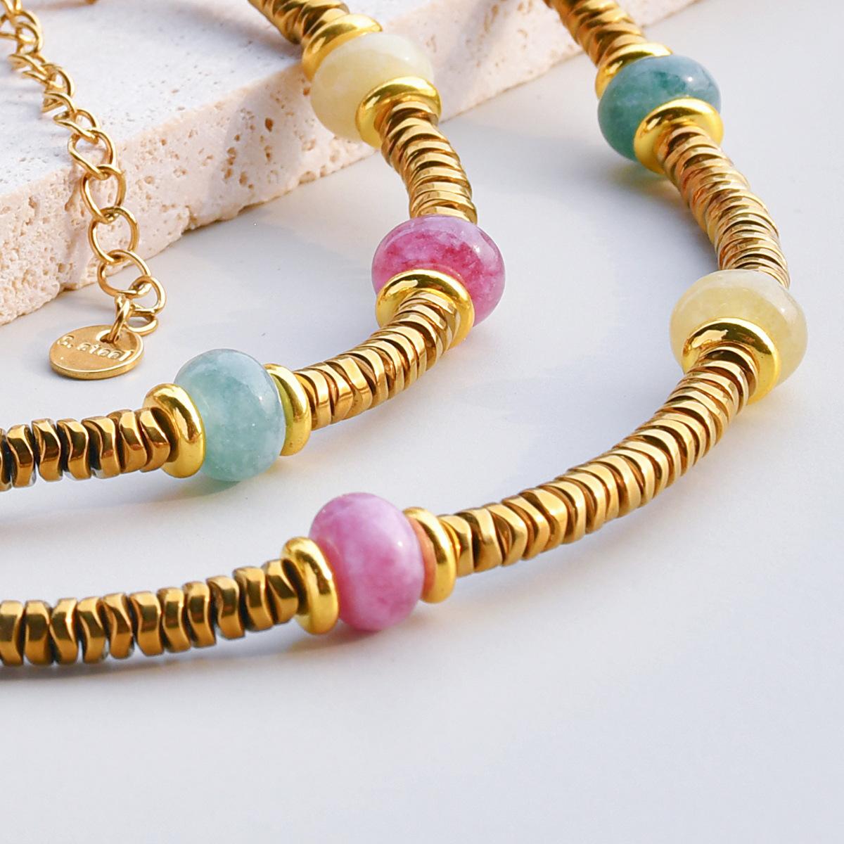 Collar de cuentas de piedra natural de acero inoxidable de alta gama de lujo ligero estilo europeo y americano