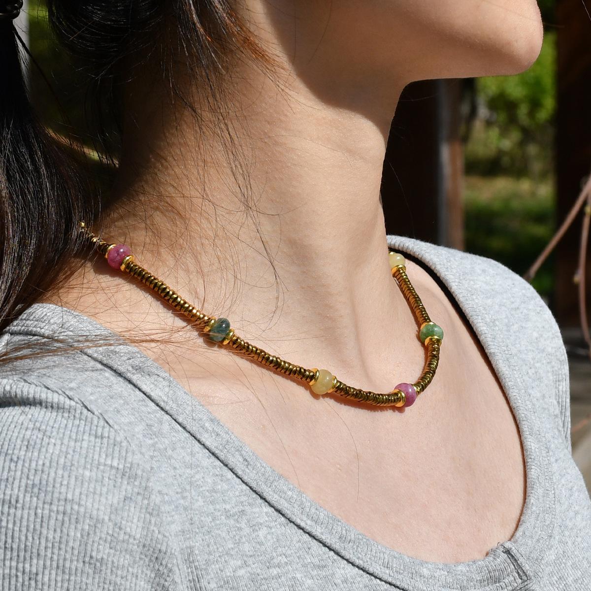 Collar de Turmalina de Color Más Vendido de Amazon para Mujer, Collar Nicho de Lujo Ligero Anti-Decoloración de Acero al Titanio Dorado, Joyería Transfronteriza
