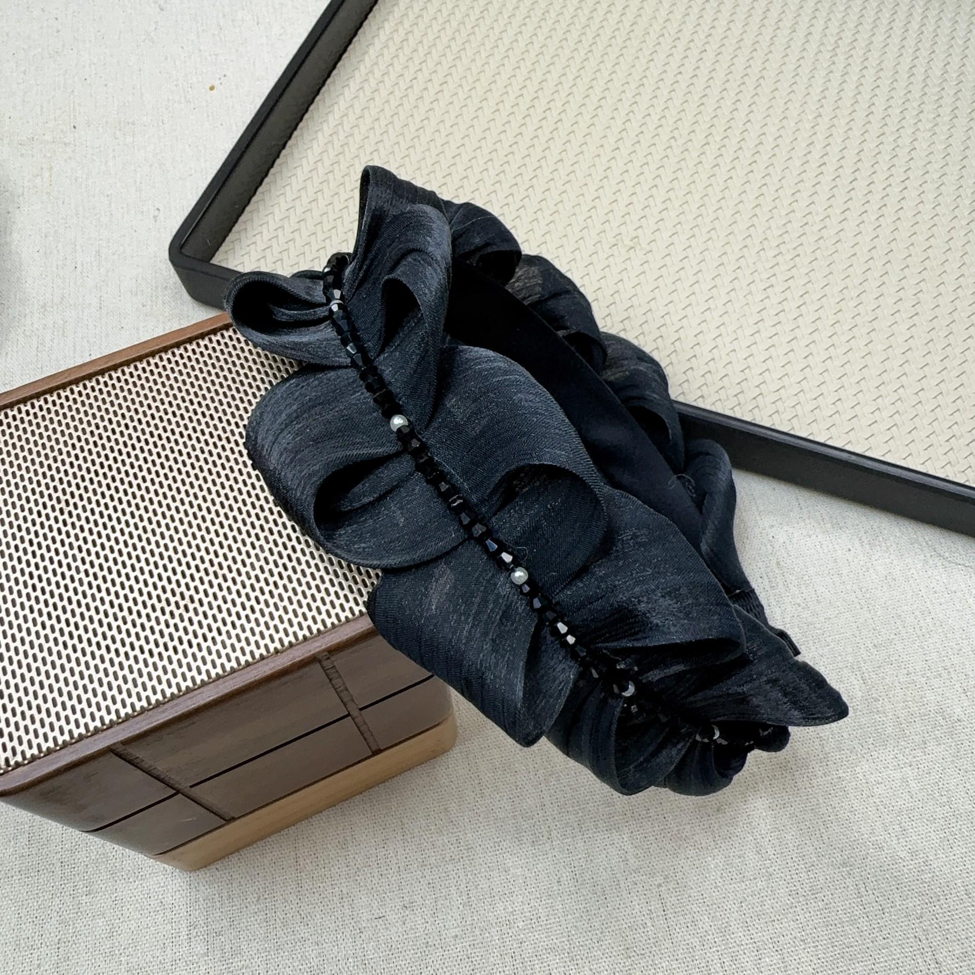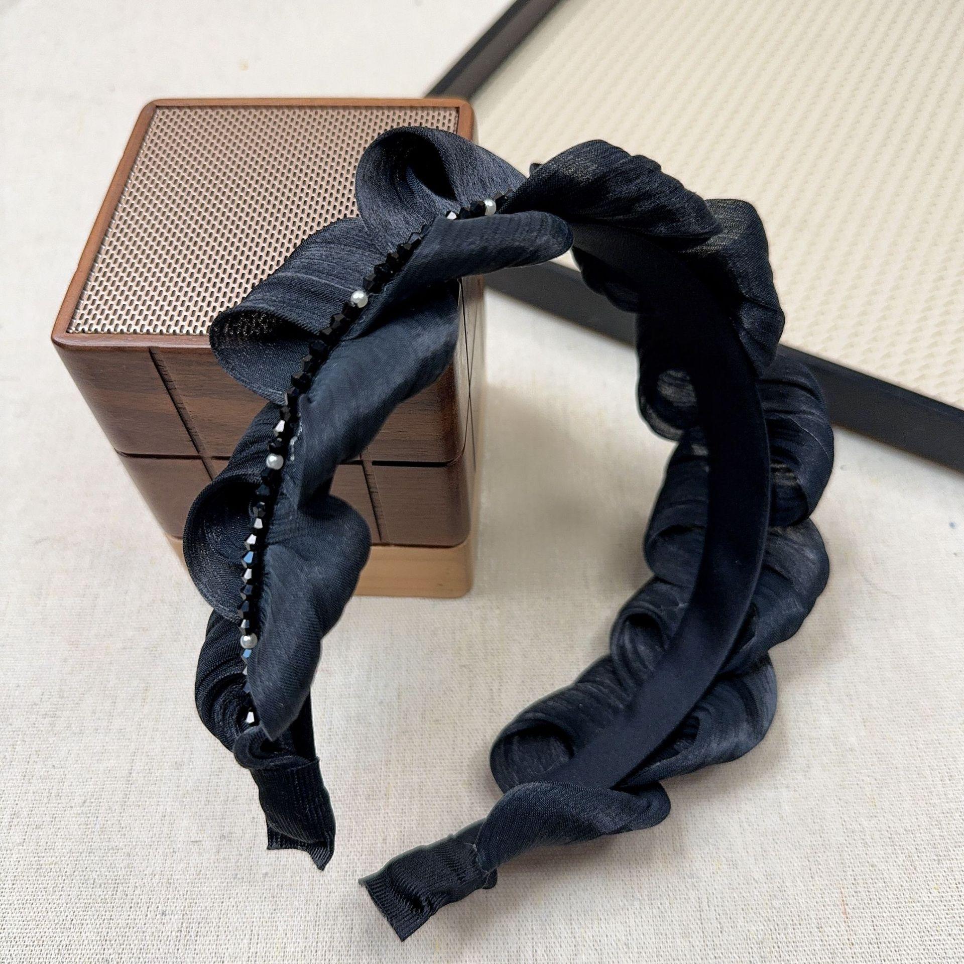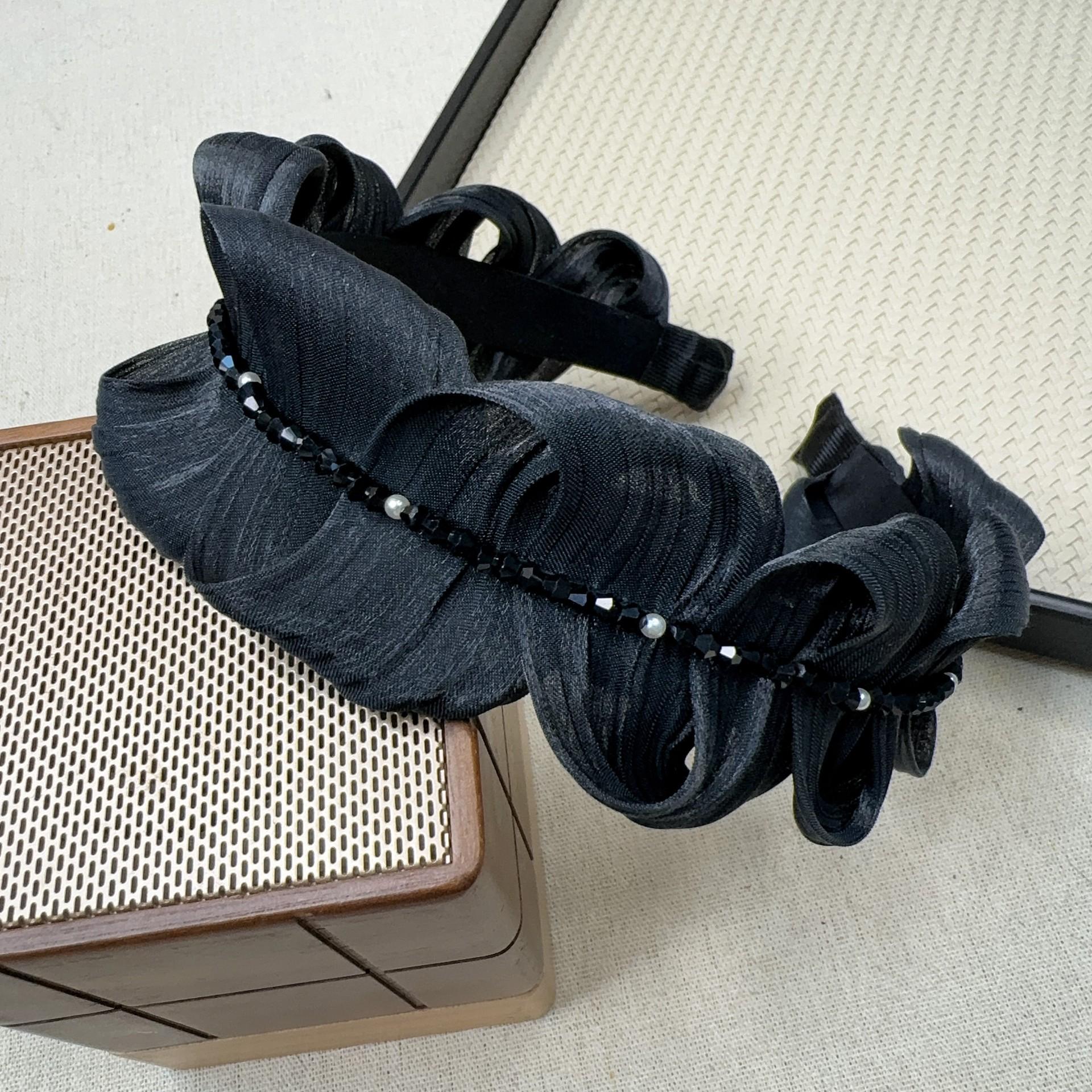 Aro para el pelo de satén perlado de alta calidad con plisado de perlas para mujer, pequeño, de alta presión craneal, estilo coreano, combina con todo.