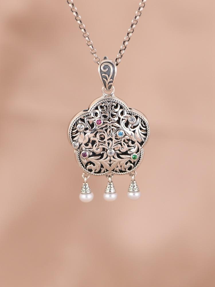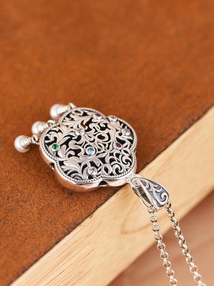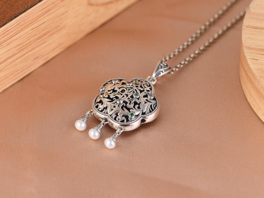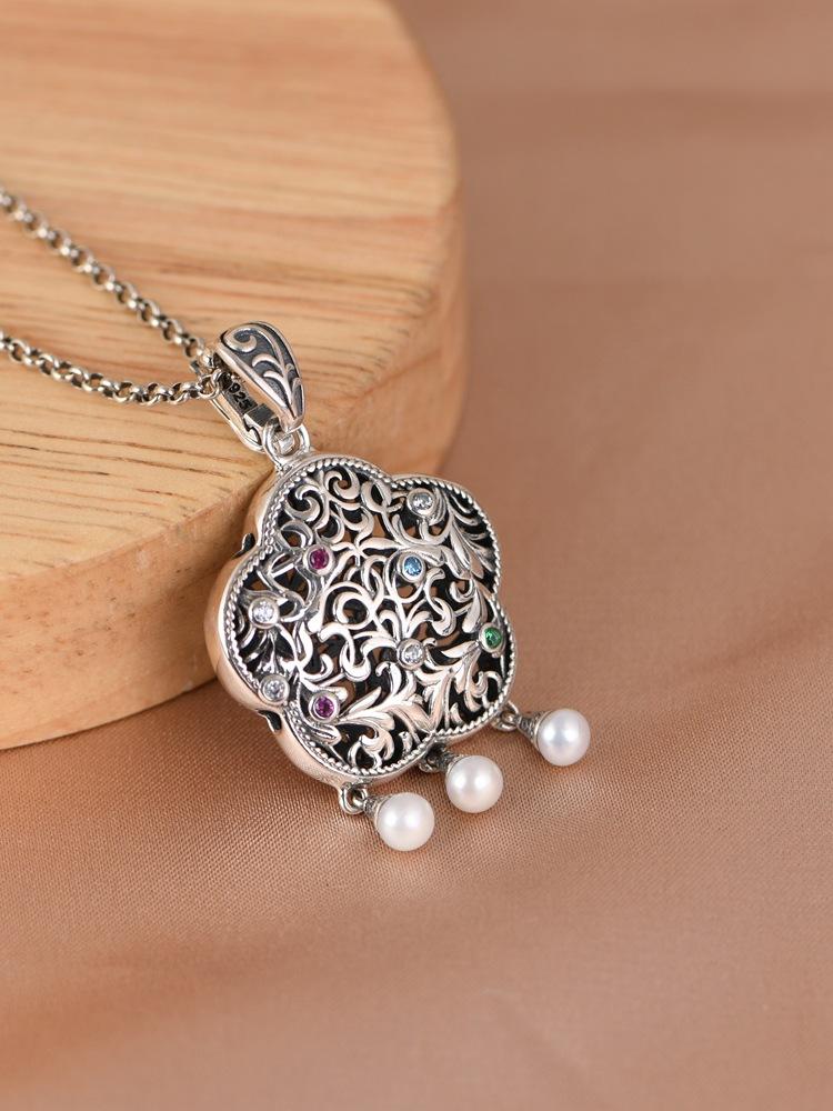 Colgante de plata S925 con diseño de ciervo dorado, estilo retro, con borlas de perlas y cierre de plata, con diseño de hierba Tang hueca, accesorios para collar de mujer