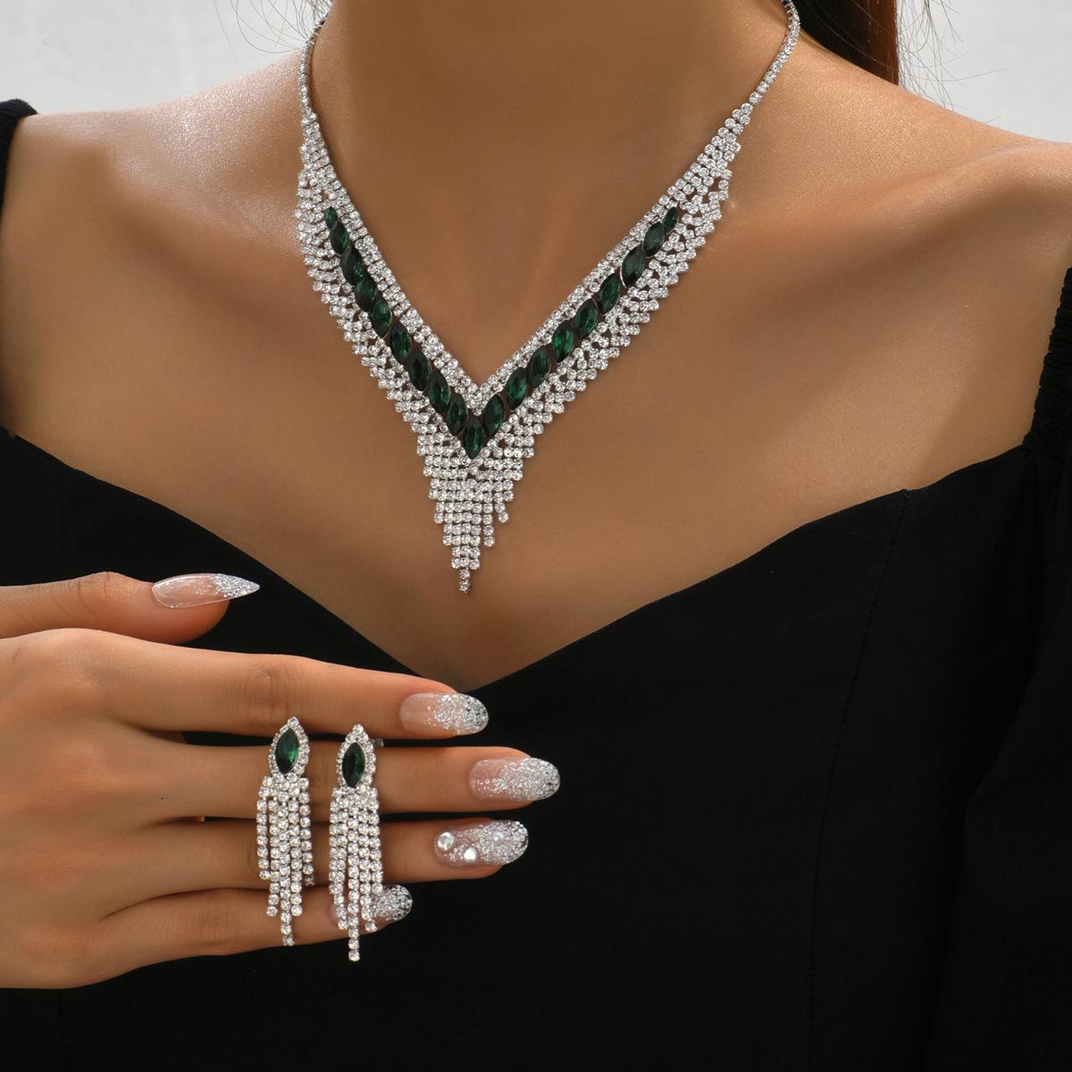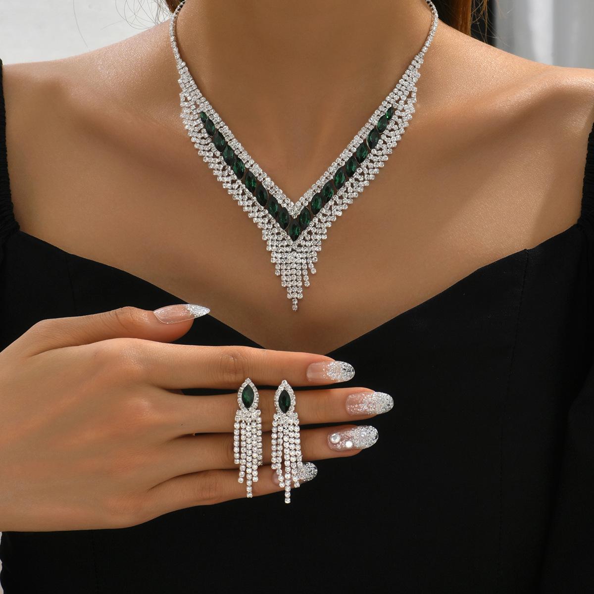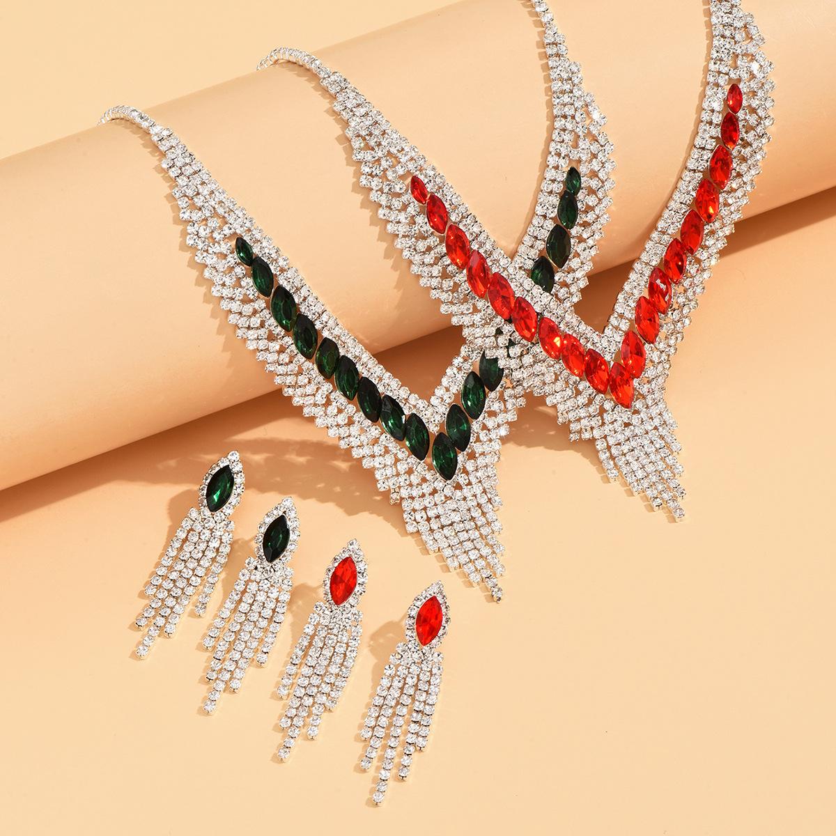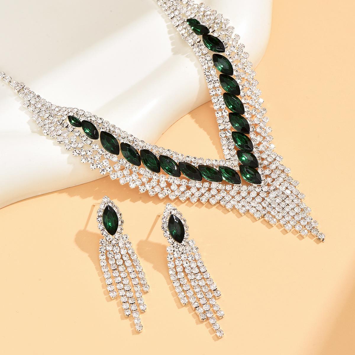Joyería al por mayor transfronteriza Lujo Boda Cena Fiesta para Mujer Collar Aretes Dos Piezas Corte Diamante de Agua