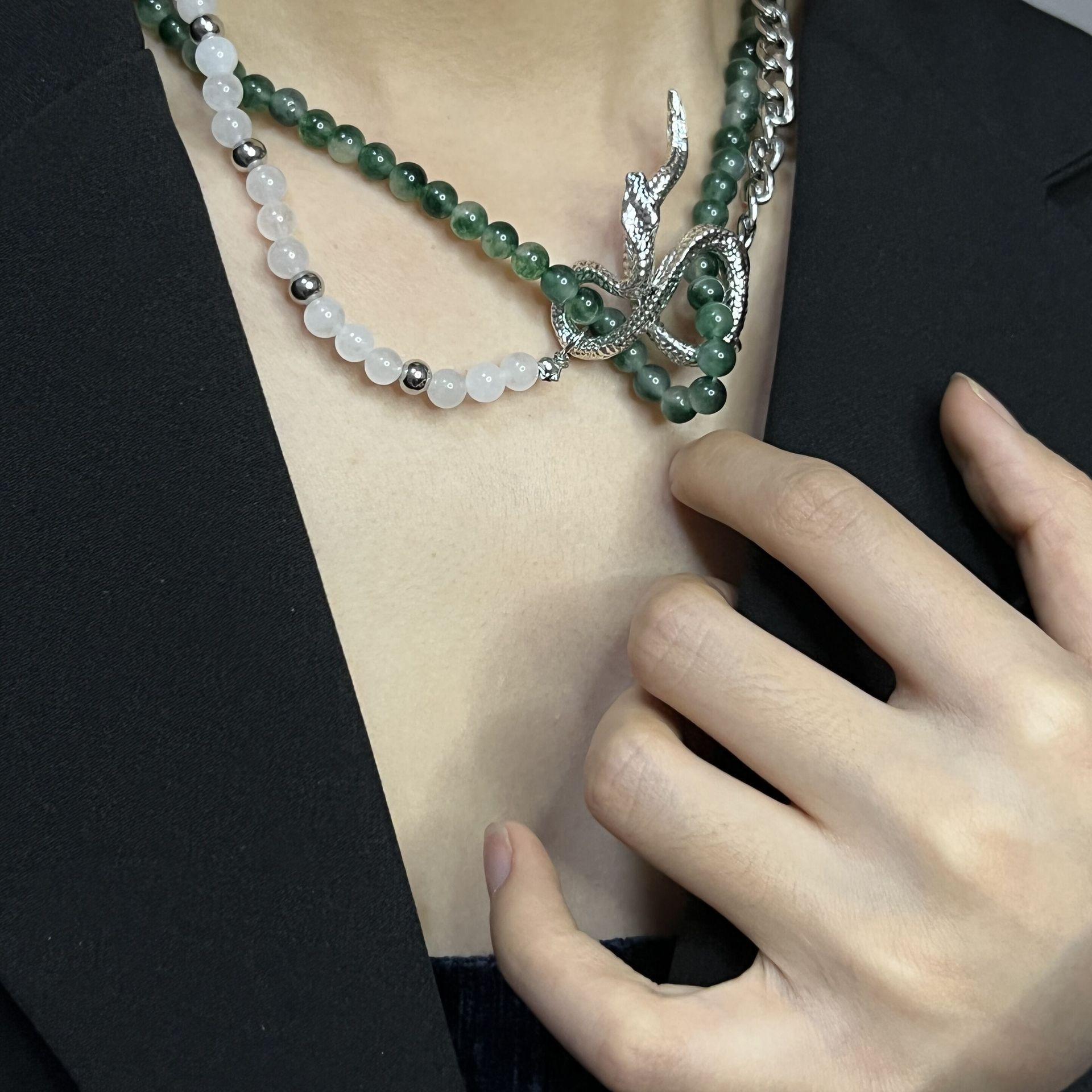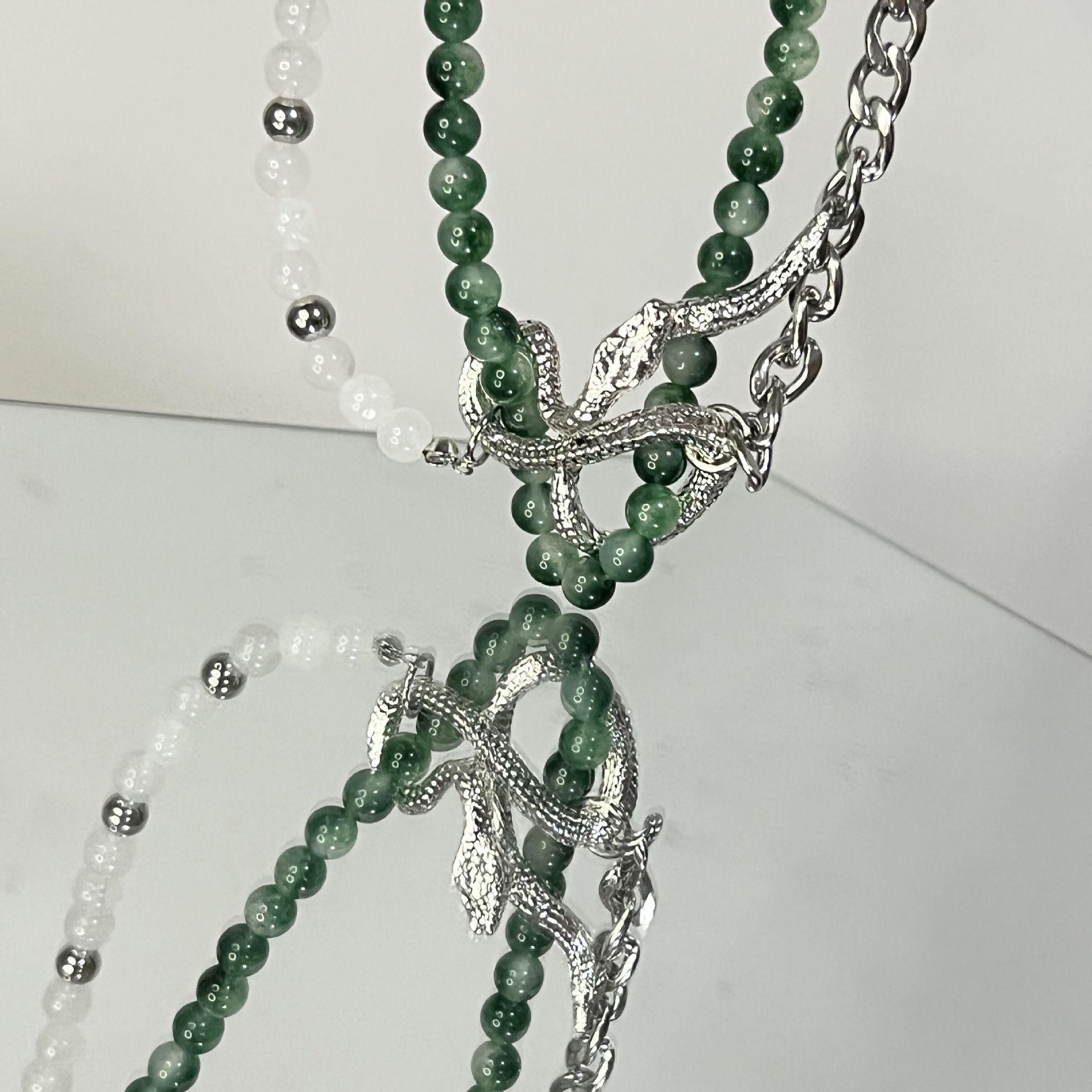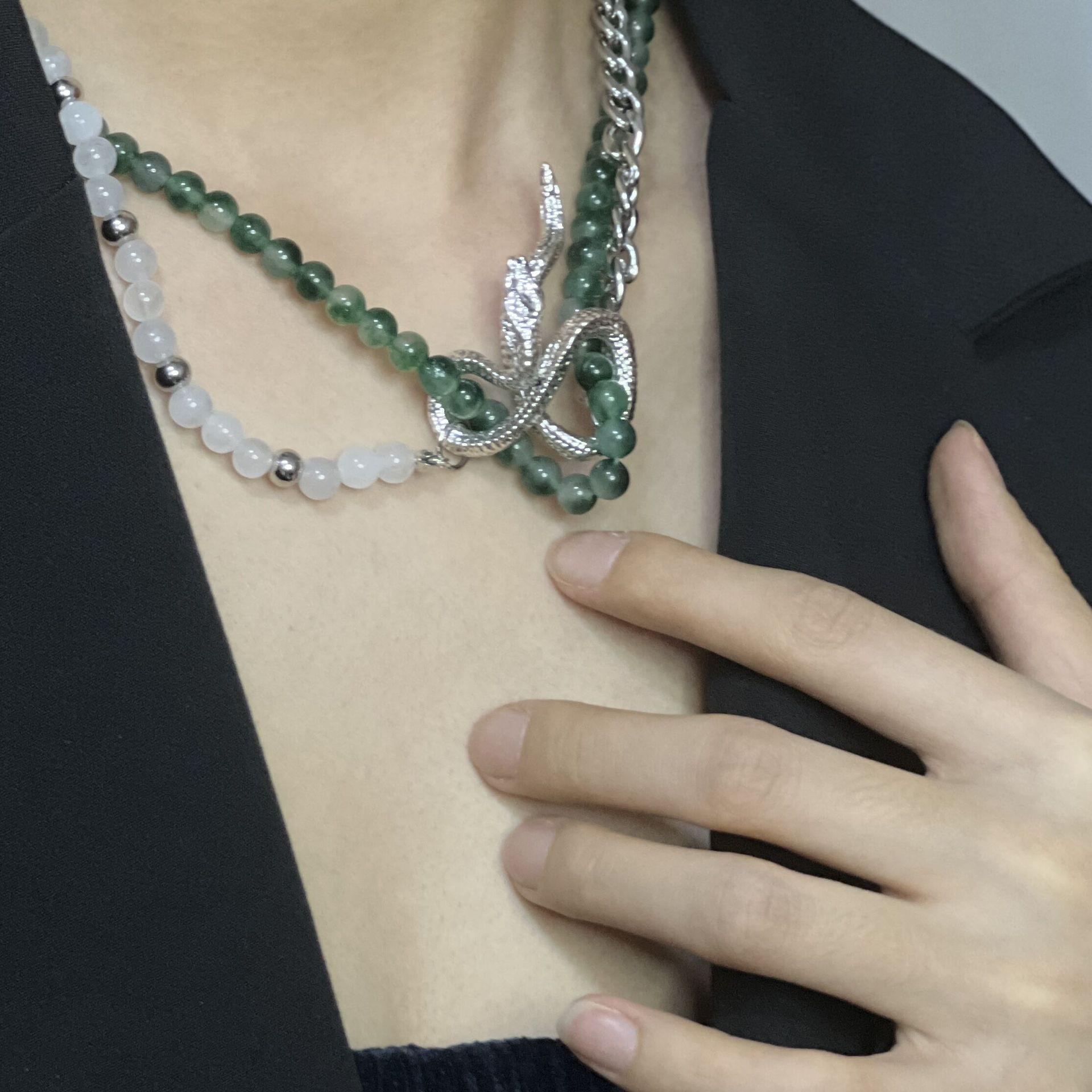 Nicho Spice Girls Piedra Verde Cadena de Vidrio Metal Serpiente Enrollada Moda Nacional Corto Personalidad Collar Cadena Clavícula Explosiones