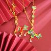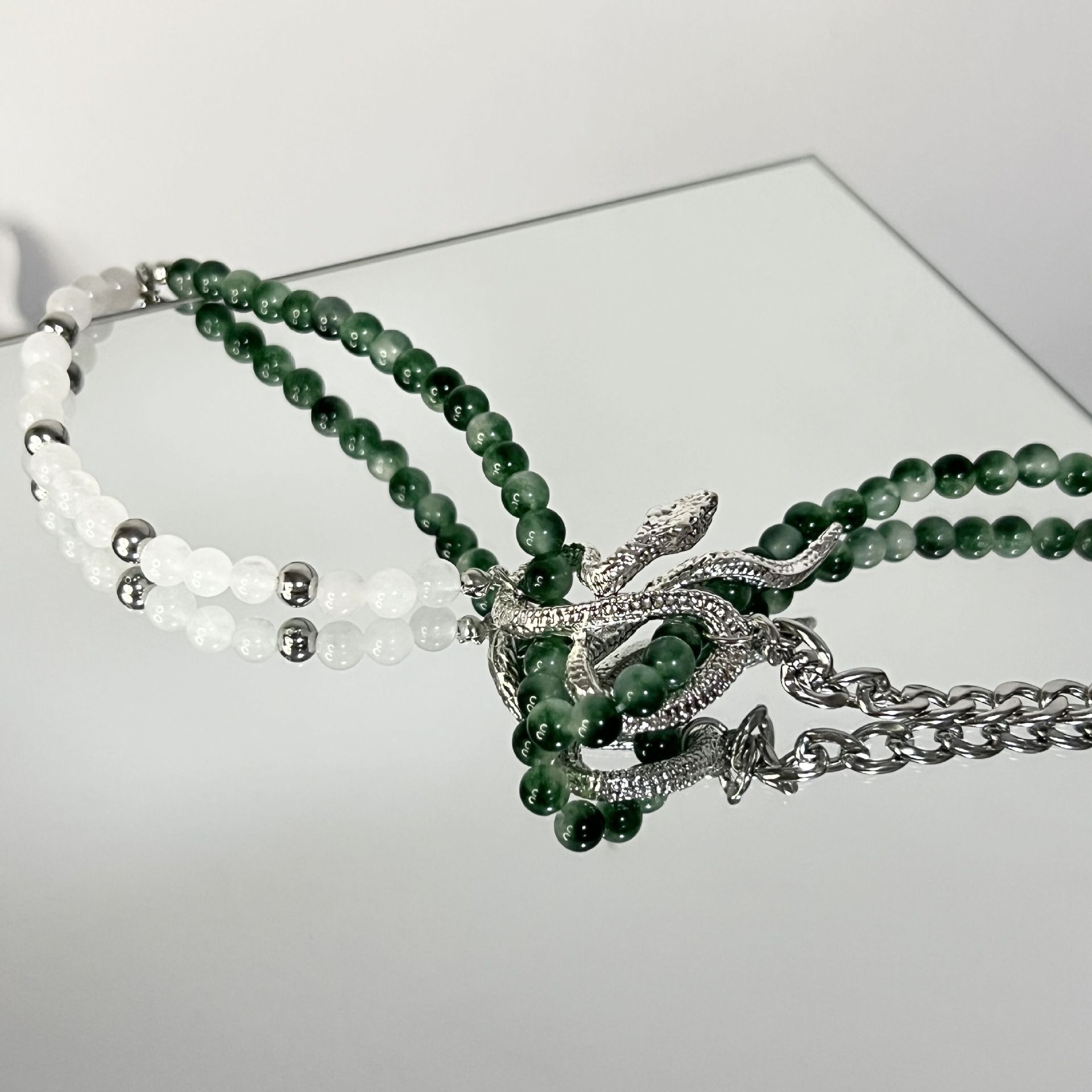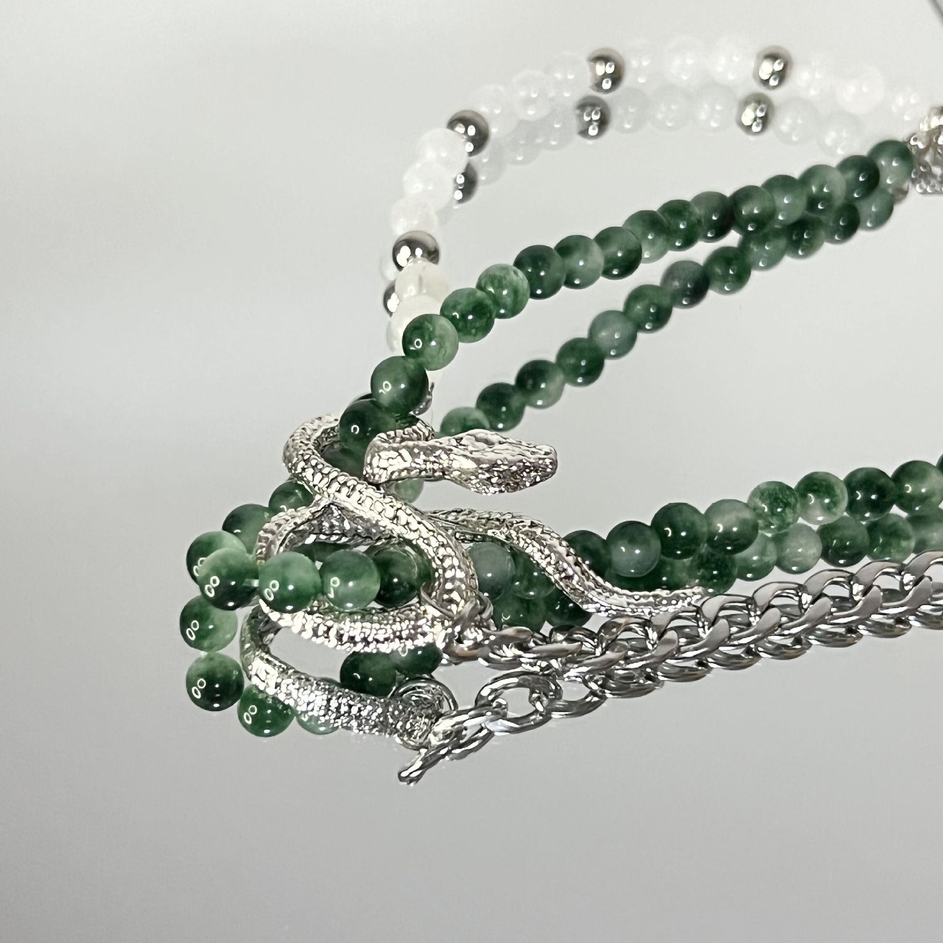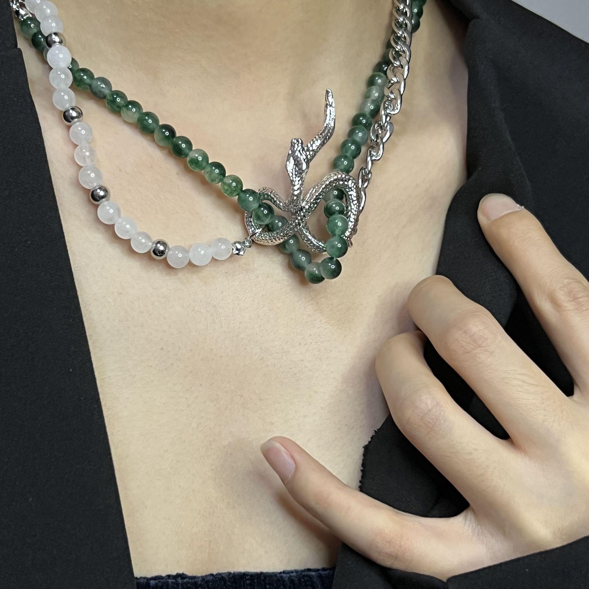 Nicho Spice Girls Piedra Verde Cadena de Vidrio Metal Serpiente Enrollada Moda Nacional Corto Personalidad Collar Cadena Clavícula Explosiones